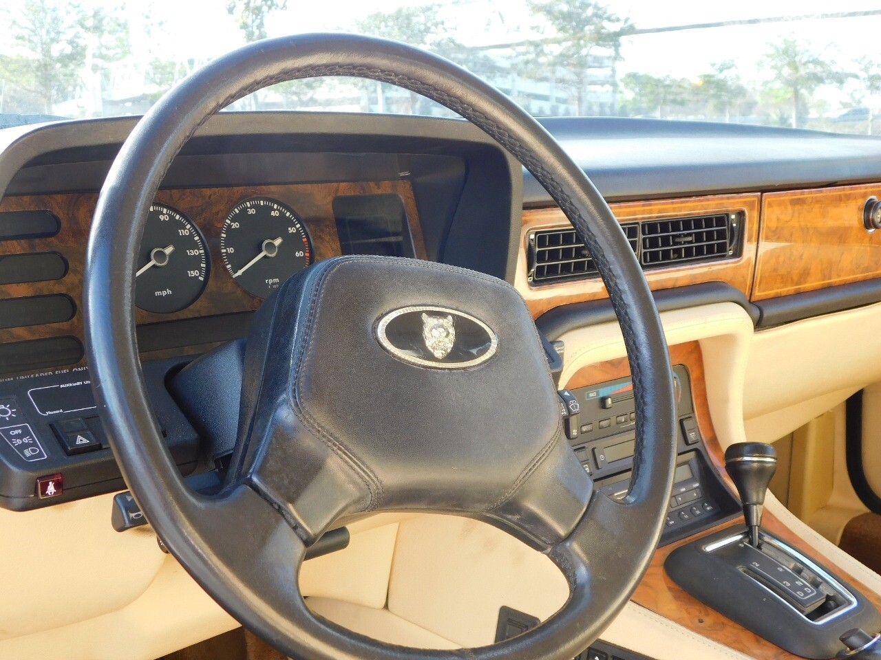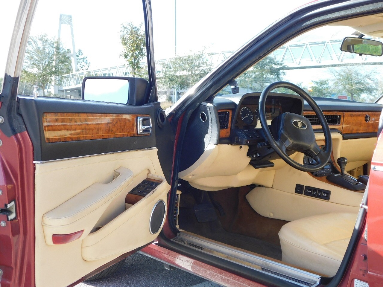 Gateway Classic Cars of Orlando is proud to present this 1989 Jaguar XJ6. The XJ6 was Jaguar's primary vehicle for decades and have gained a cult following thanks to it's sexy body lines and rewarding driving characteristics. This 89 example is a sight to behold in it's dark red paint job draped over it's stately body lines. Take a seat inside and you're greeted by a beautiful tan leather interior. A center console is set between the bucket seats which give you a commanding view of the road. Under the hood is a inline 6 cylinder engine that is paired with a 4 speed automatic. Imagine how this Jag can get up and go! If you're looking for an elegant sedan for double date night this is the one you want to own! Options include AC, AM/FM radio, power steering, power brakes, power windows, power locks, power sunroof, leather interior, seat belts and alloy wheels wrapped in radial tires..