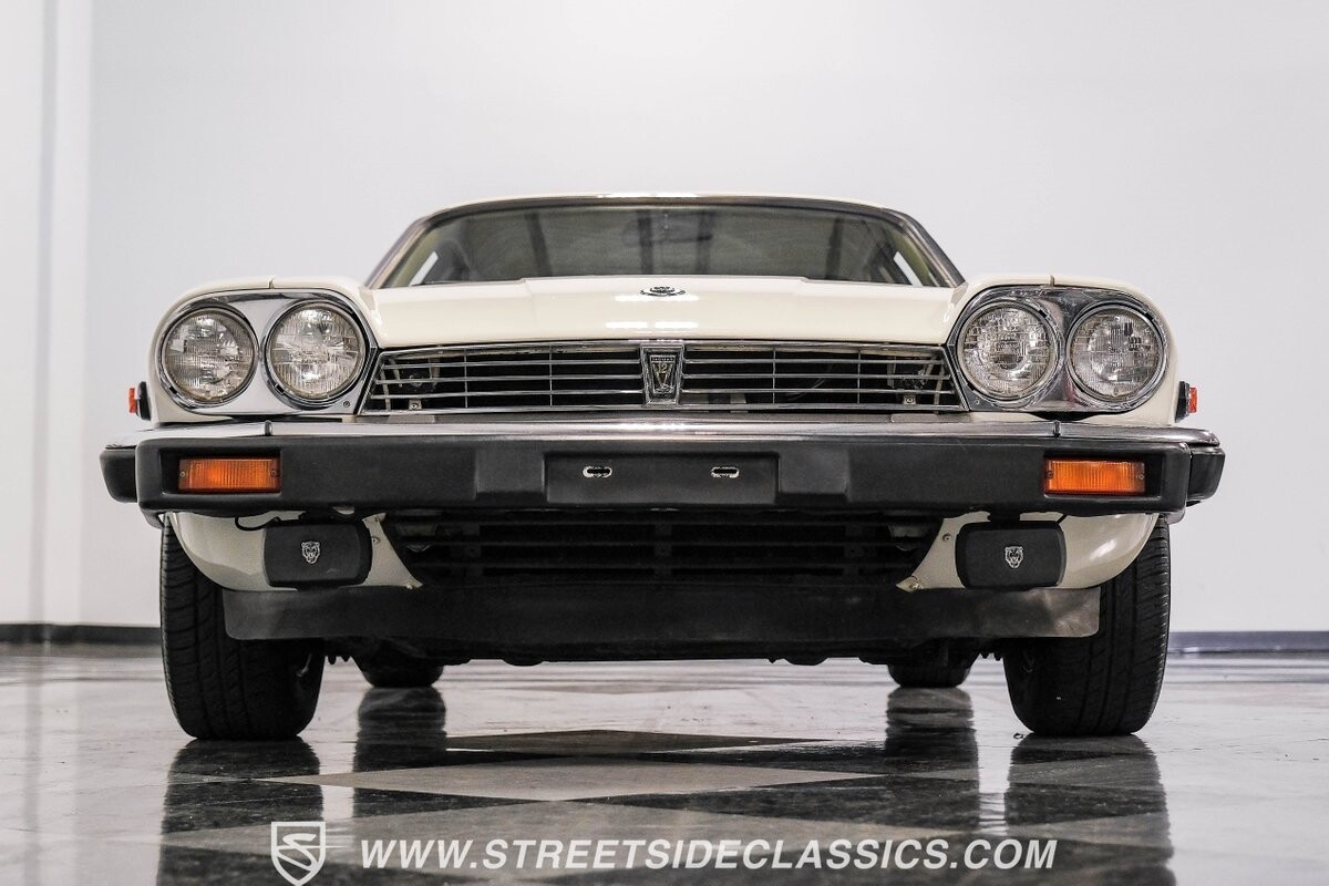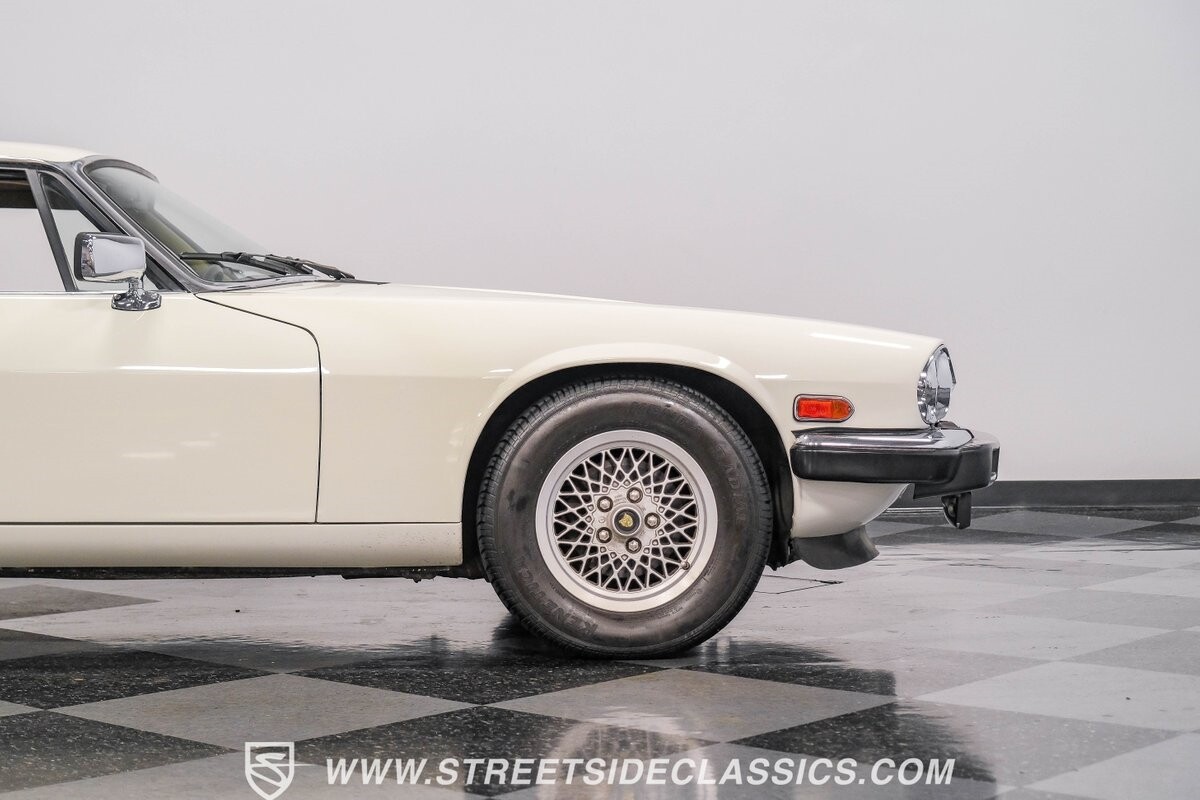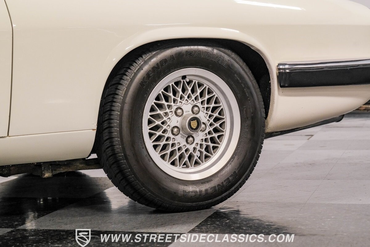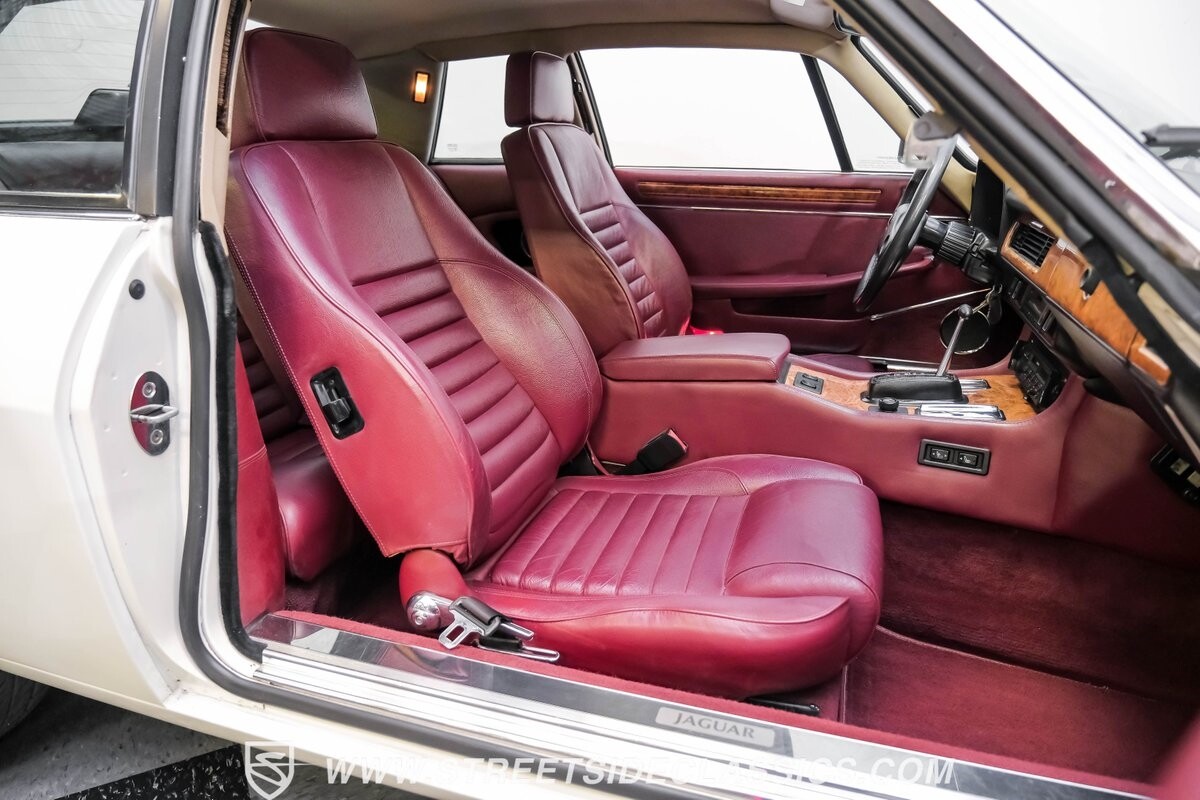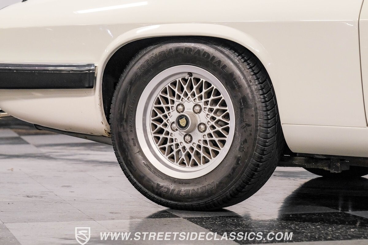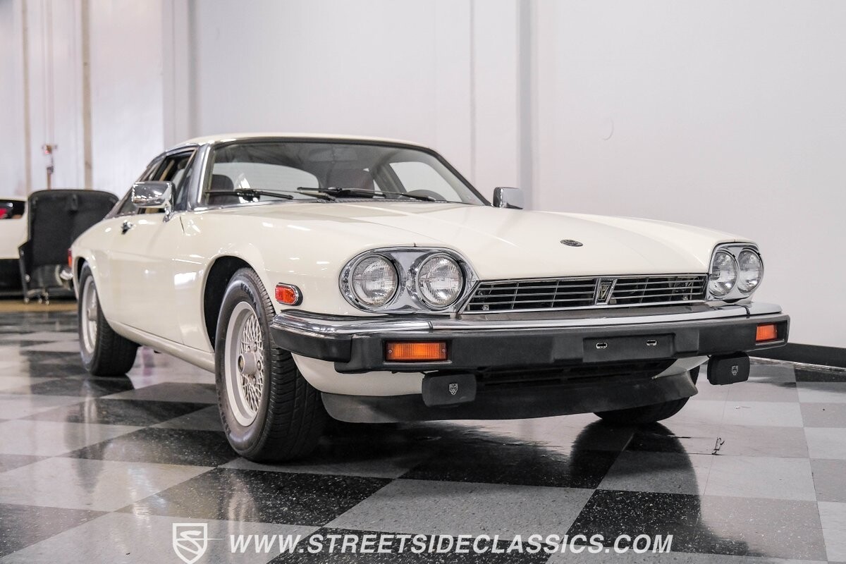 This 1989 Jaguar XJS V12, with its striking white exterior and sleek coupe design, embodies a timeless elegance. The car's distinguished profile is complemented by its 15-inch alloy wheels wrapped in 215/70R15 tires, providing a solid grip on the road. The clean lines of the body, paired with the sophisticated white paint, make this vehicle a standout. Every detail, from the dual exhaust to the meticulously designed exterior, speaks to the careful craftsmanship and attention to detail that Jaguar is known for.