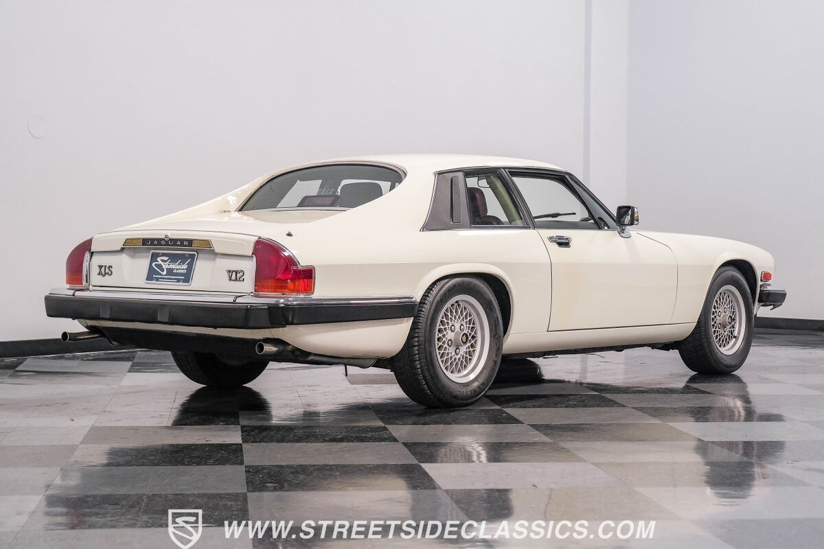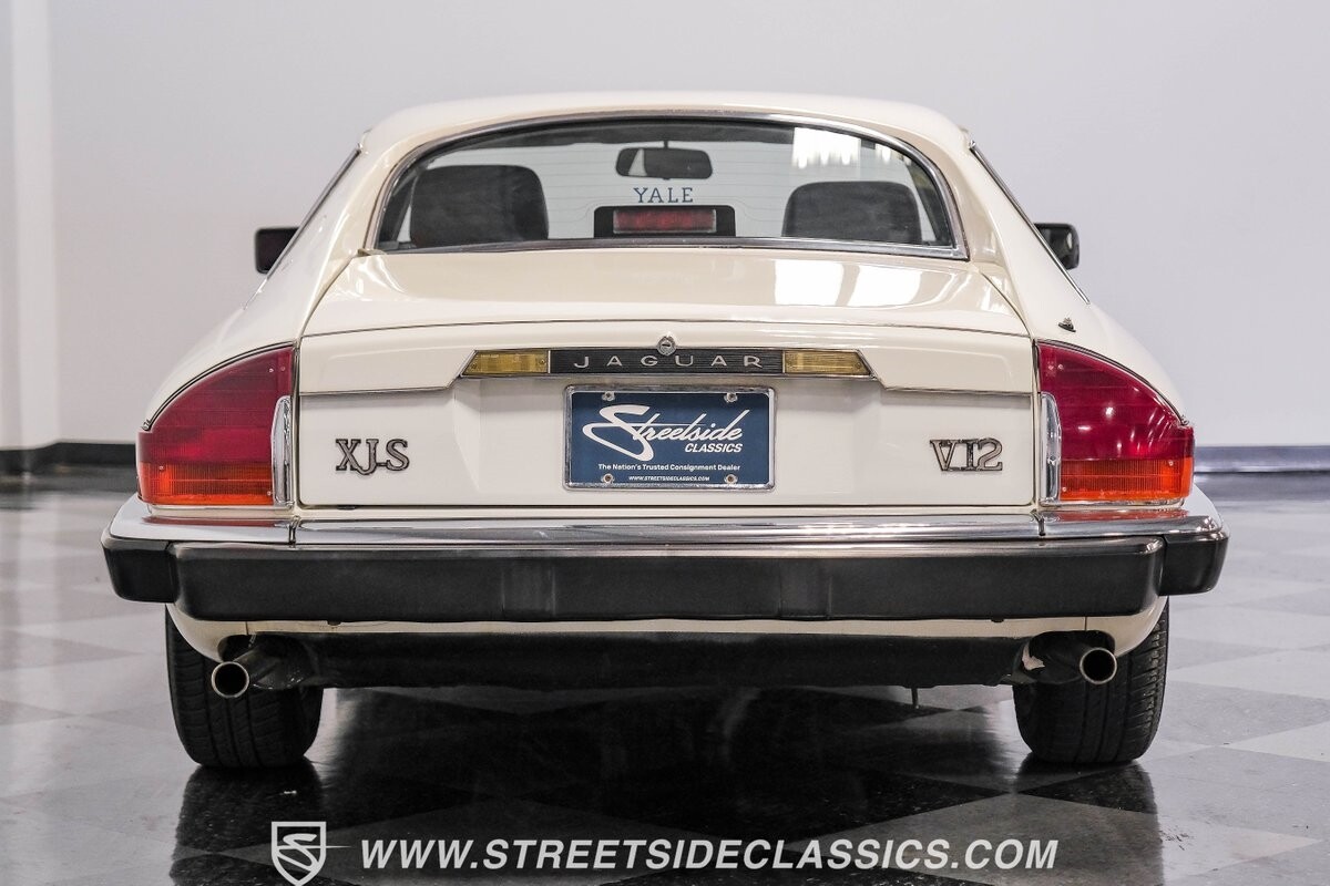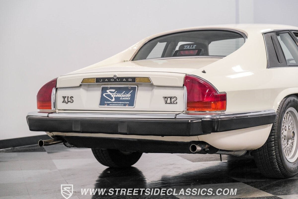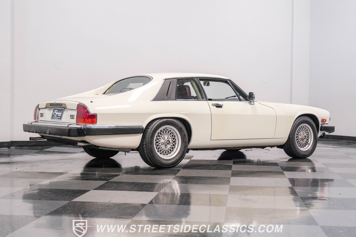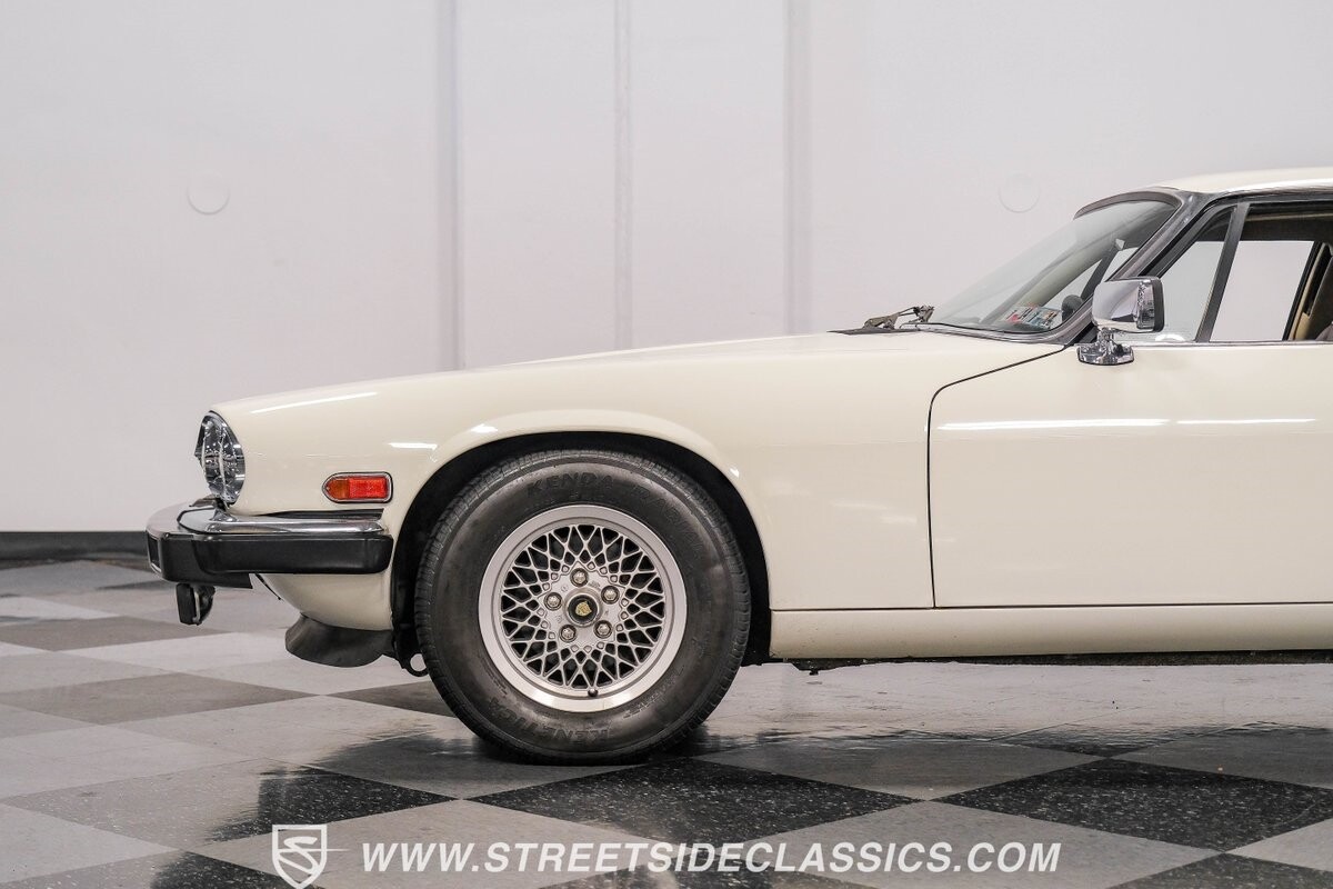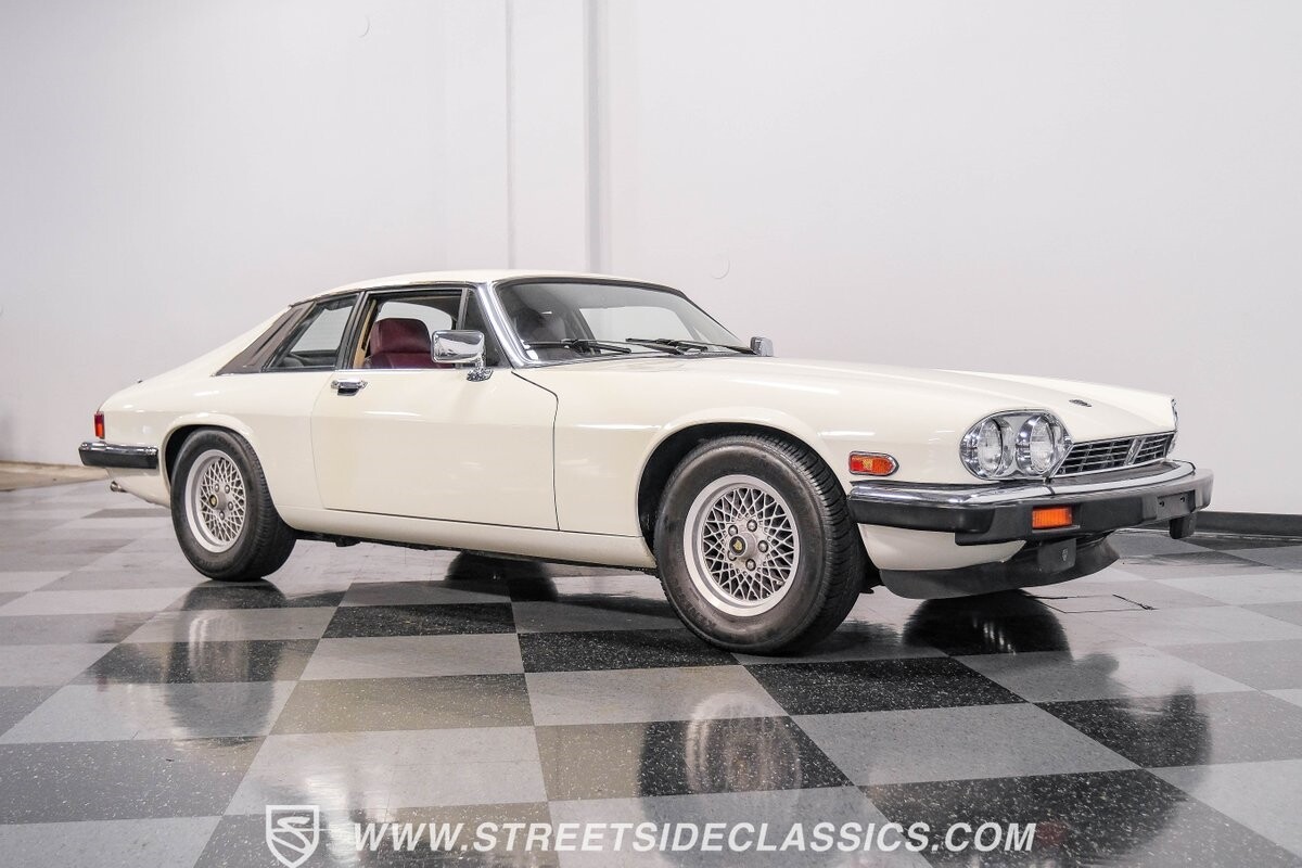 This 1989 Jaguar XJS V12, with its striking white exterior and sleek coupe design, embodies a timeless elegance. The car's distinguished profile is complemented by its 15-inch alloy wheels wrapped in 215/70R15 tires, providing a solid grip on the road. The clean lines of the body, paired with the sophisticated white paint, make this vehicle a standout. Every detail, from the dual exhaust to the meticulously designed exterior, speaks to the careful craftsmanship and attention to detail that Jaguar is known for.