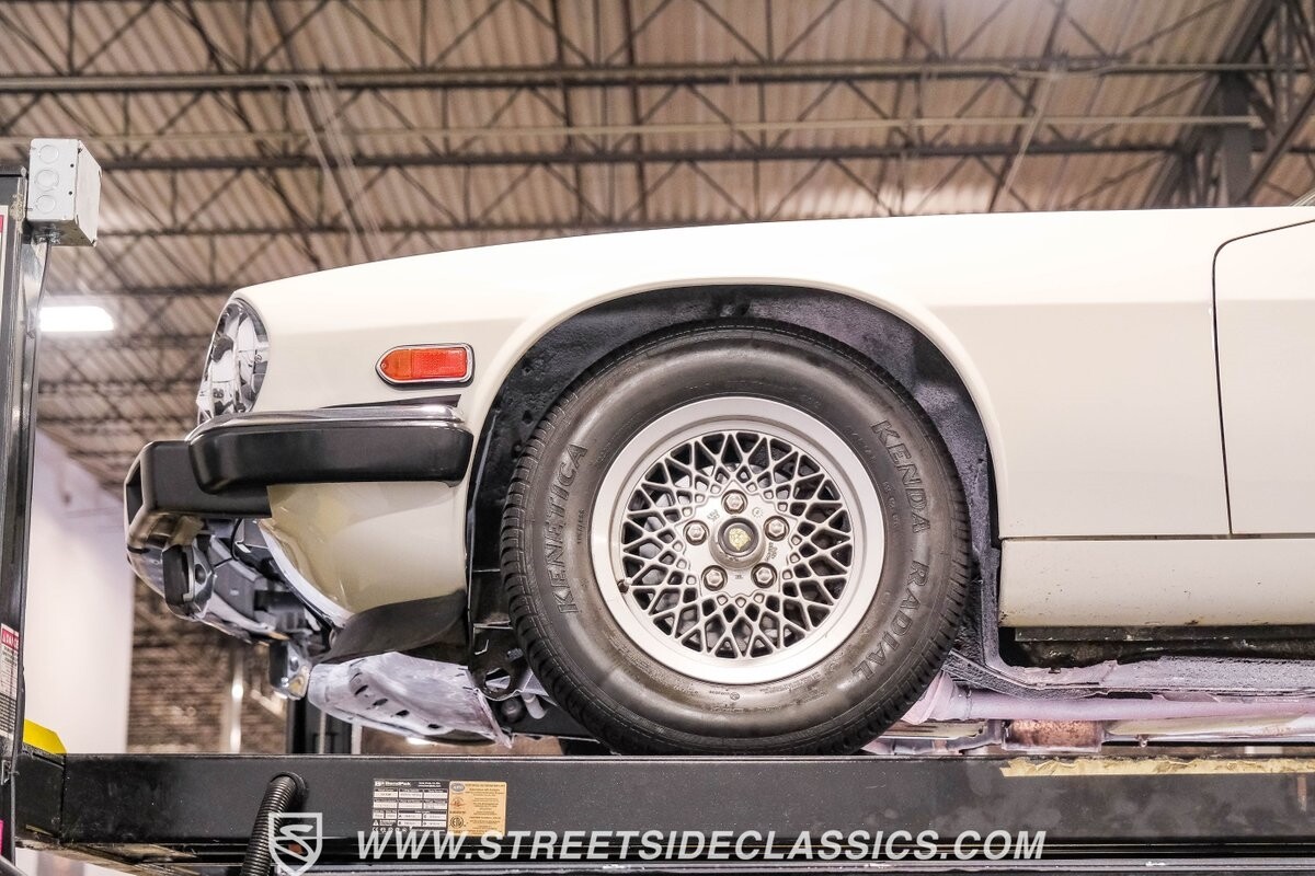 Underneath, the mechanical prowess of this Jaguar is undeniable. The 5.3-liter V12 engine paired with a 3-speed automatic transmission delivers smooth and responsive performance. The engine bay, equipped with an electronic fuel injection system, showcases the power and precision of this iconic car. The Jaguar IRS rear suspension and coil spring front suspension with shock and sway bar ensure a comfortable and stable ride. Additionally, the power disc brakes provide excellent stopping power, enhancing the driving experience and ensuring safety.
