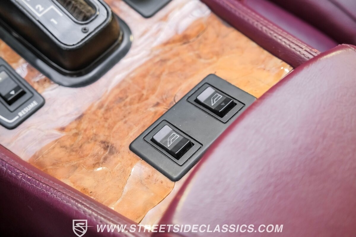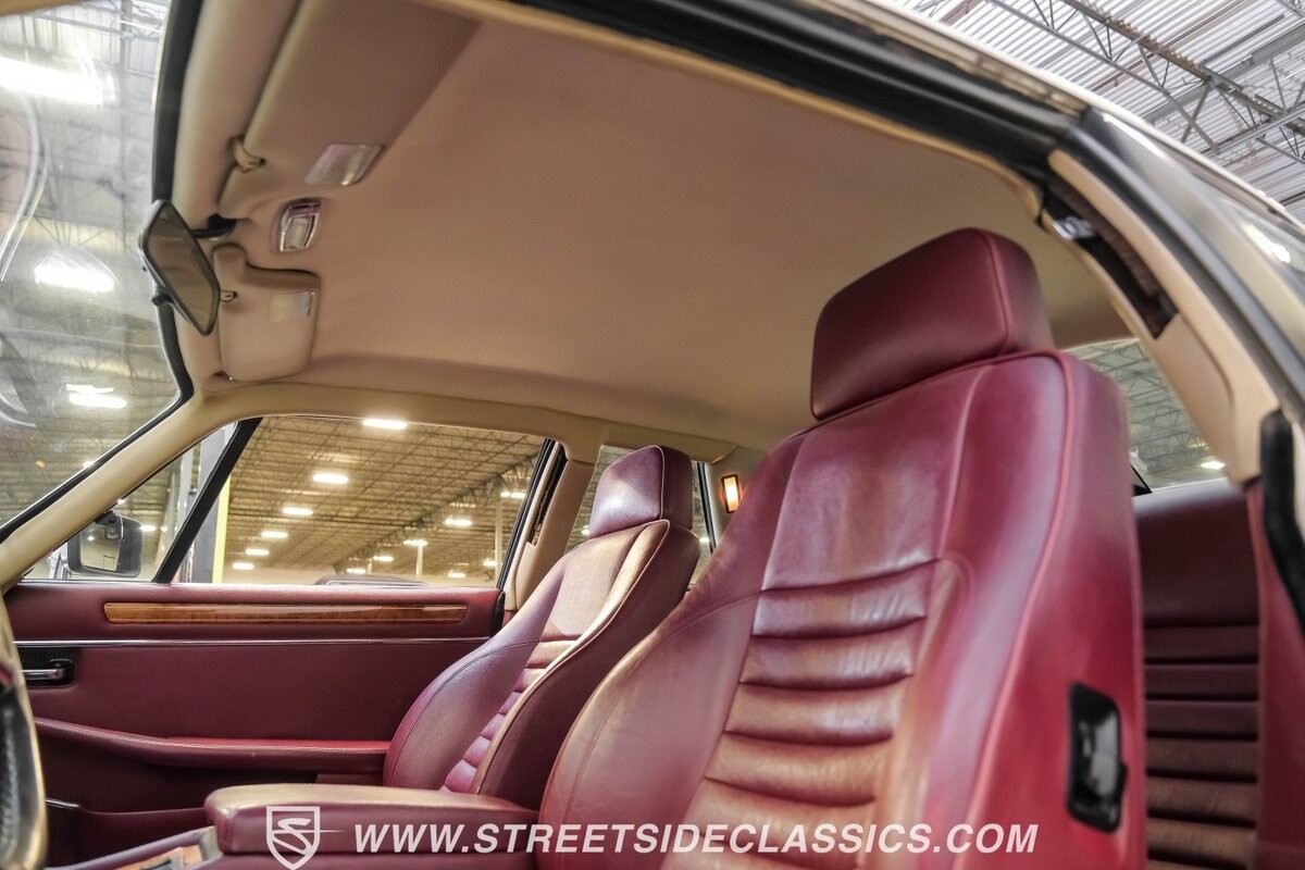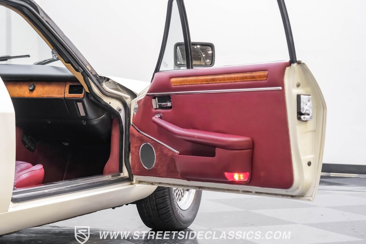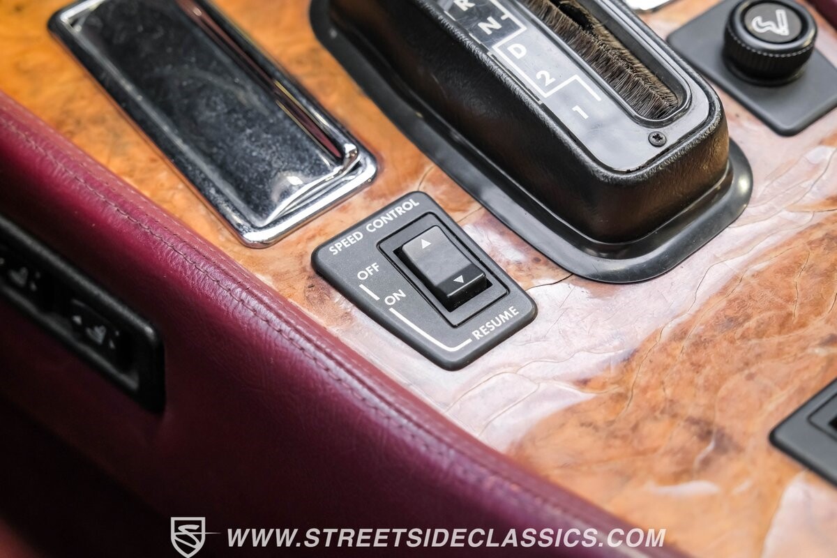 Inside, the Jaguar XJS offers a luxurious driving experience. The interior, adorned in rich red leather, exudes sophistication. The bucket seats provide comfort and support, while the shifter adds a sporty touch. The air conditioning ensures a pleasant ride in any weather, and the power steering makes handling effortless. The cabin, with its original dash and console, maintains the classic Jaguar aesthetic, offering both style and functionality.