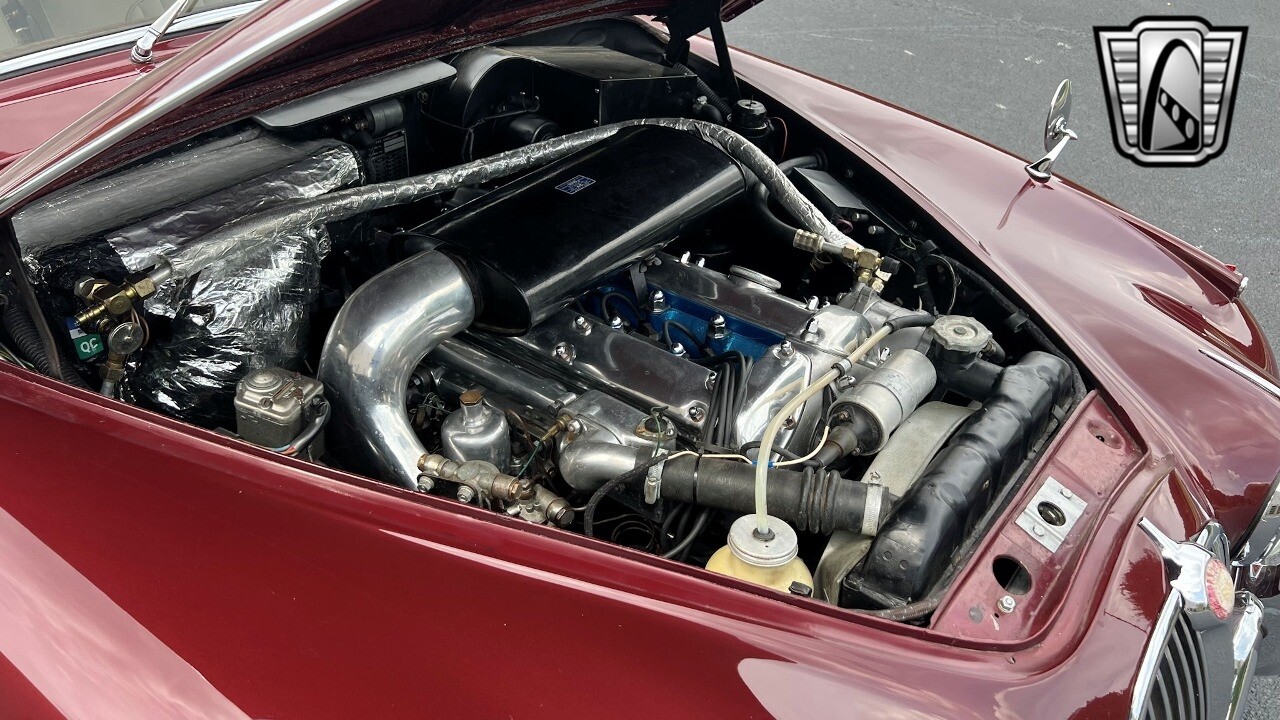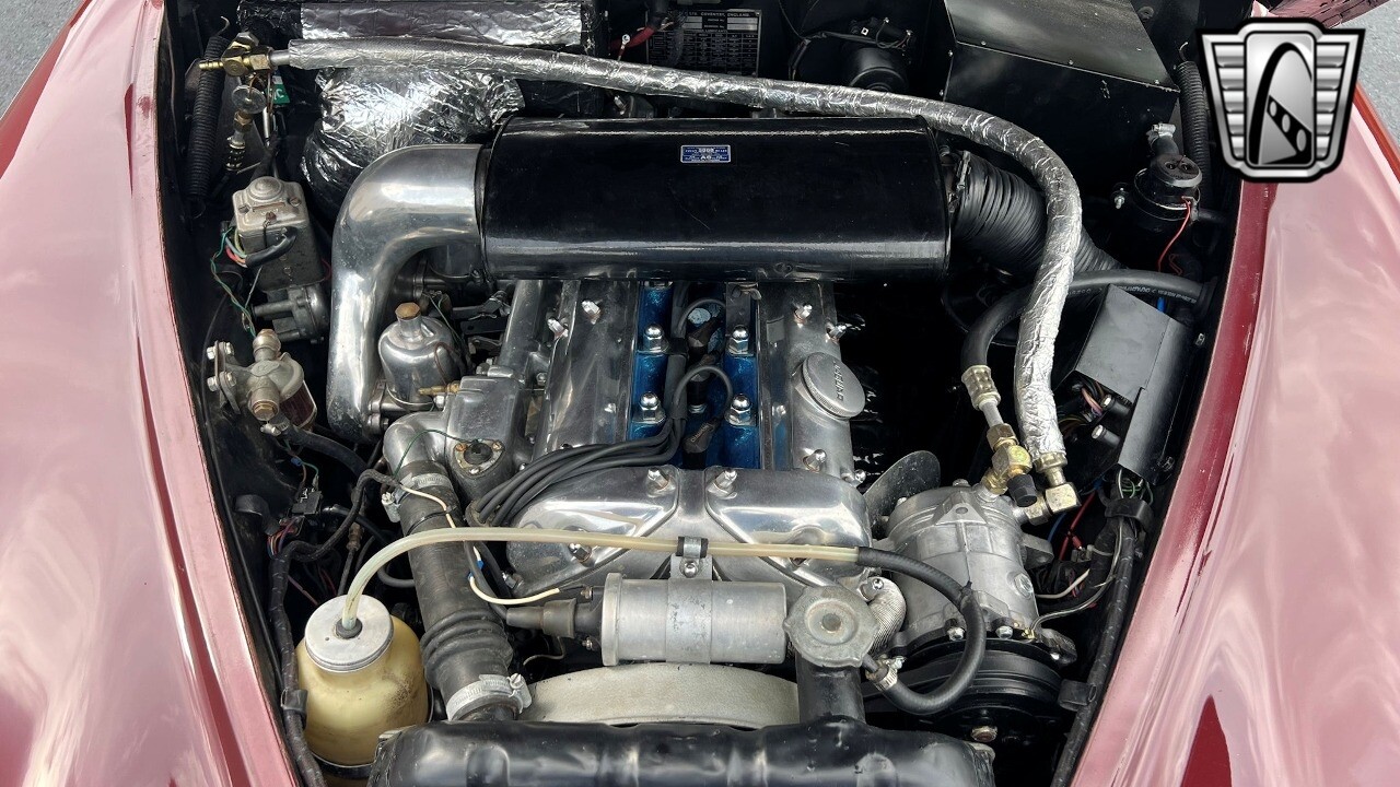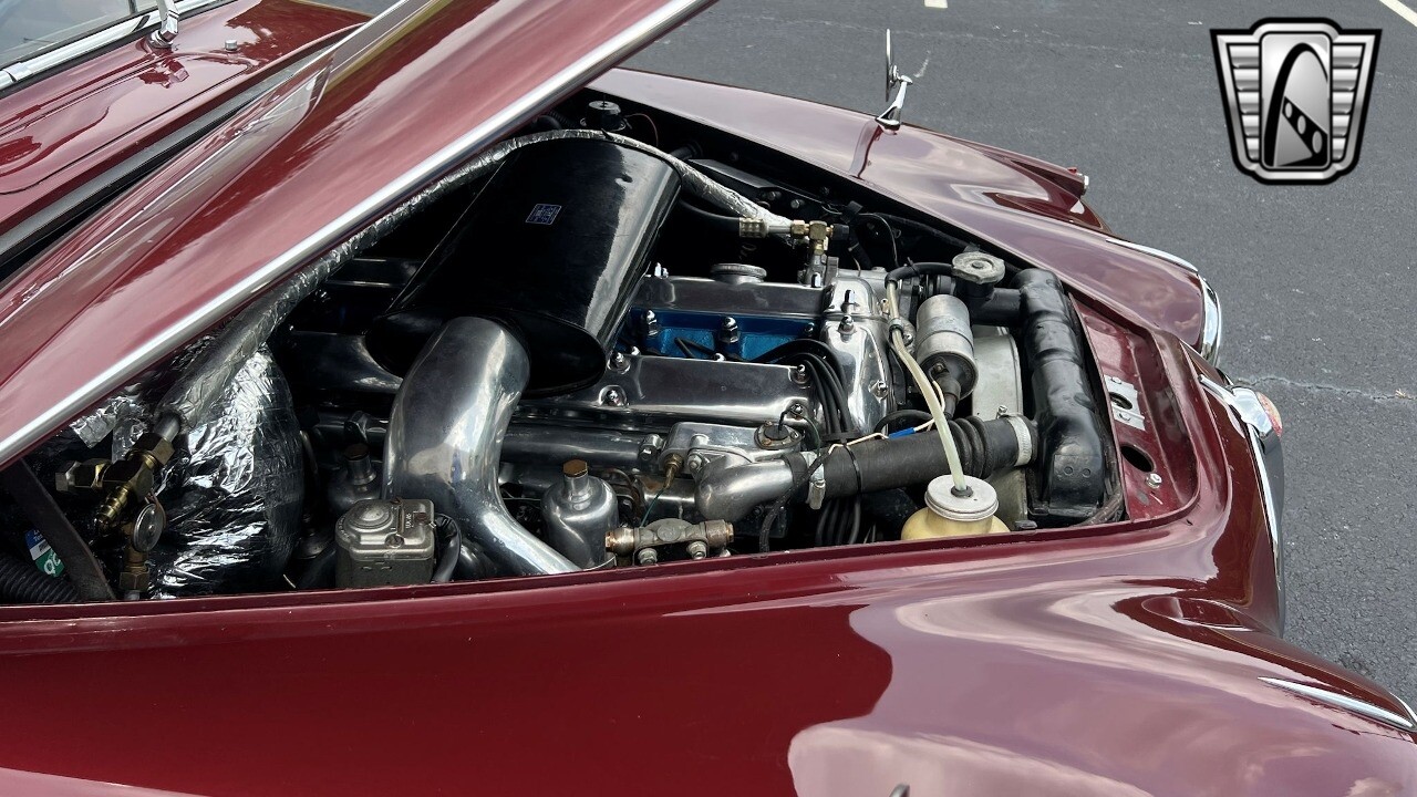 Make a grand entrance with the car's eye-pleasing color scheme, as the tan leather interior creates a strikingly luxurious contrast against the vivid red exterior. Take a seat inside, and you'll be greeted by a tasteful showcase of 60s British luxury, with design clearly inspired by refinement and sophistication.