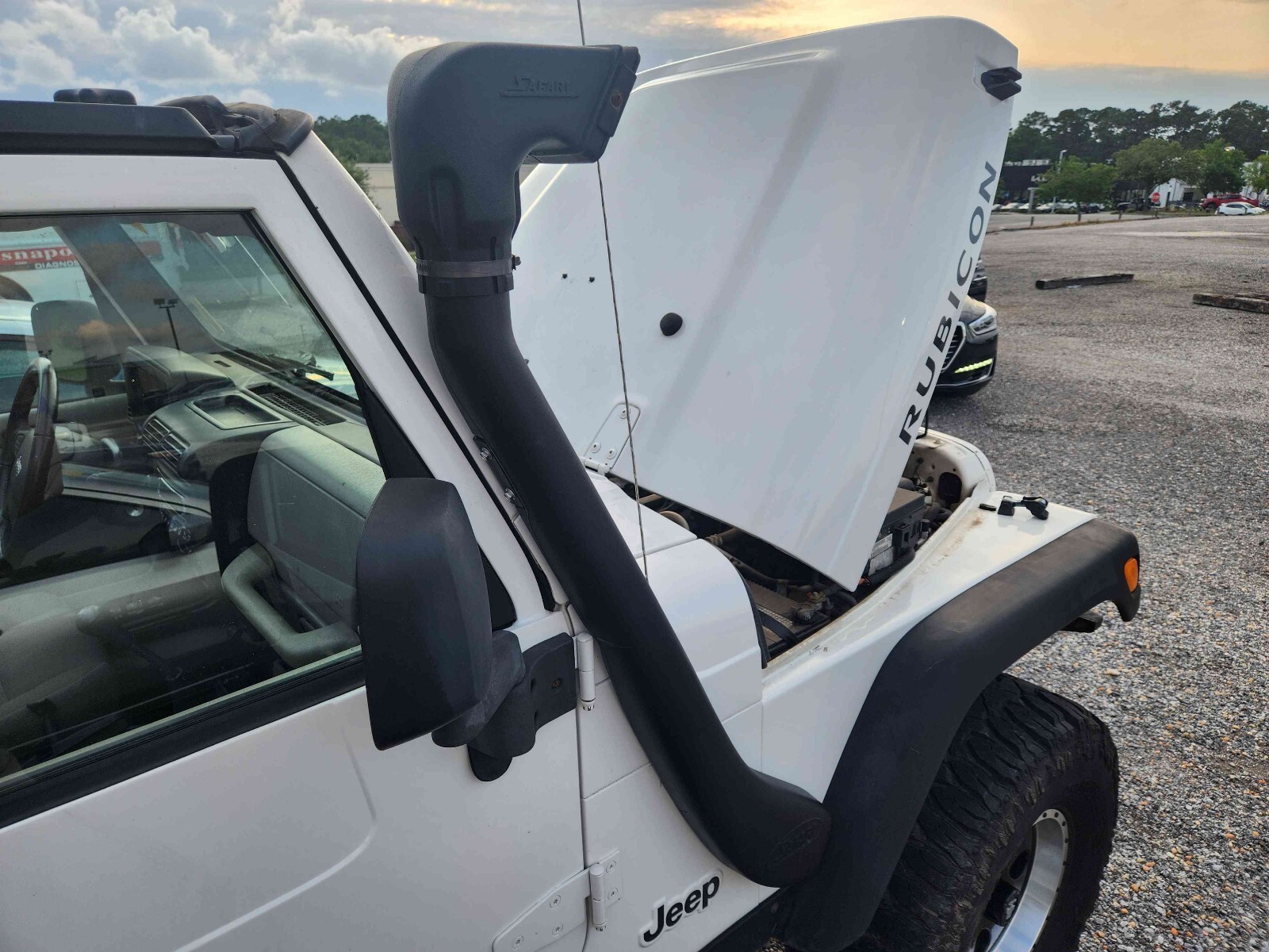 06 Wrangler Rubicon - White on Beige Cloth w/Soft Top - 4L 6Cylinder Snorkle Intake w/6 Speed Manual Transmission - 4WD Warn Zeon 10 Winch 6 inch Fog Lights RV Tow Bar Rough Country Suspension Tow Hitch - 6 Disk Premium Sound A/C