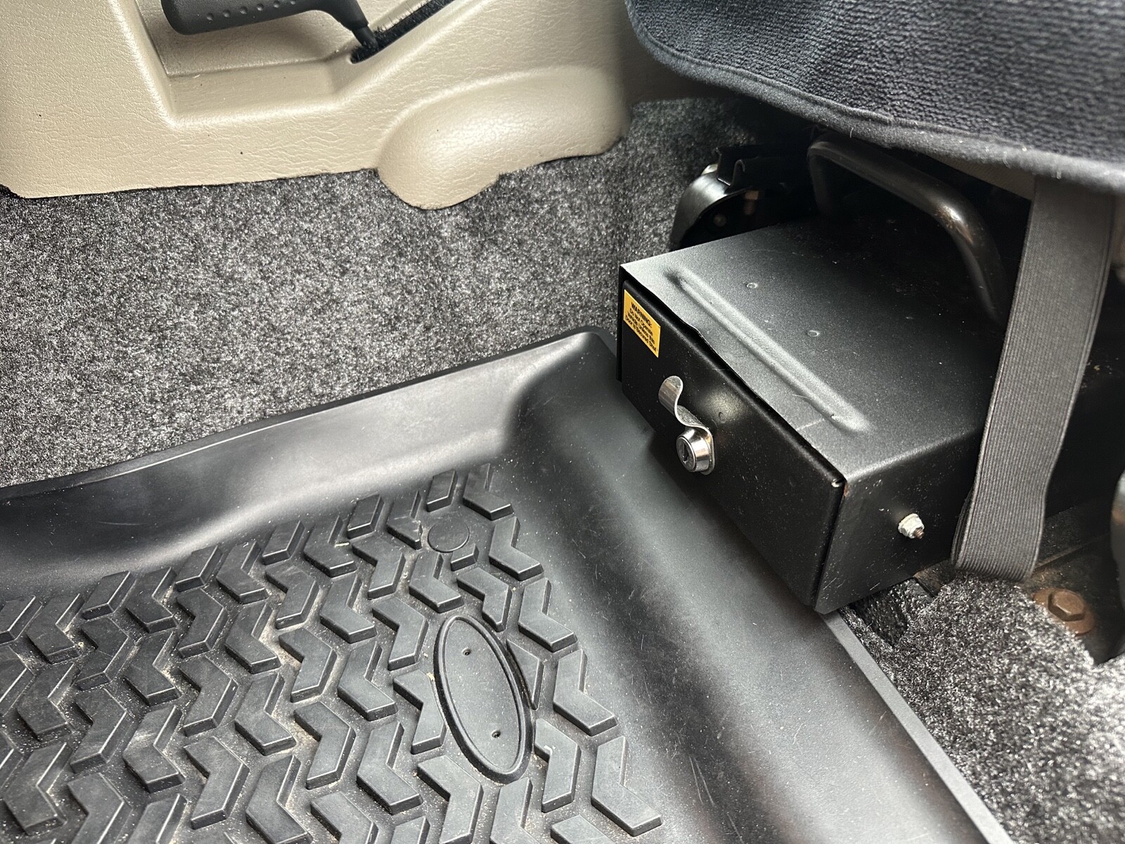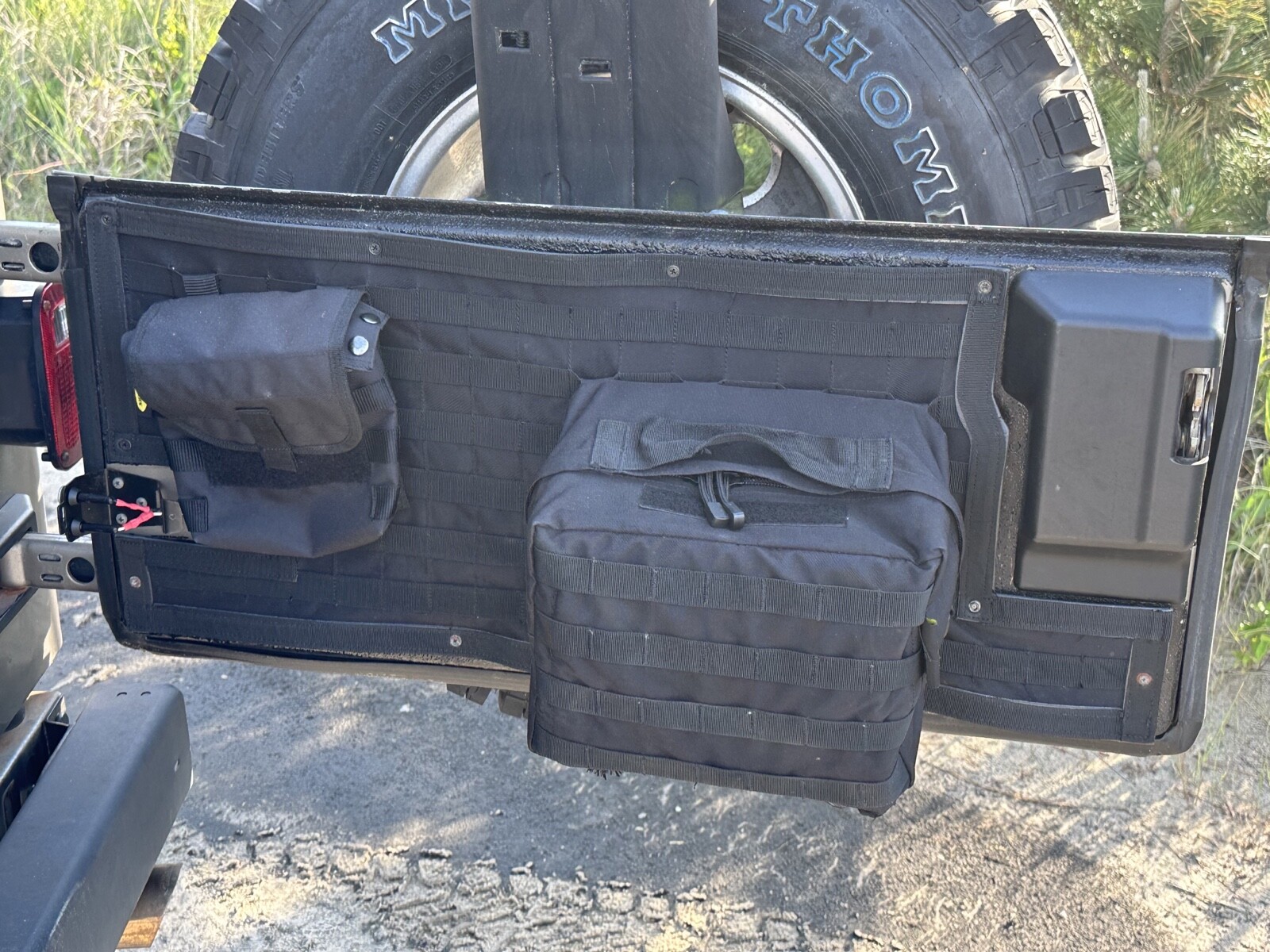 Still has stock radio w/ an aux cord spliced in. MOLLE system installed overhead and on trunk door for unlimited customization. Steel lockbox installed under driver seat for safe storage while the top is down.