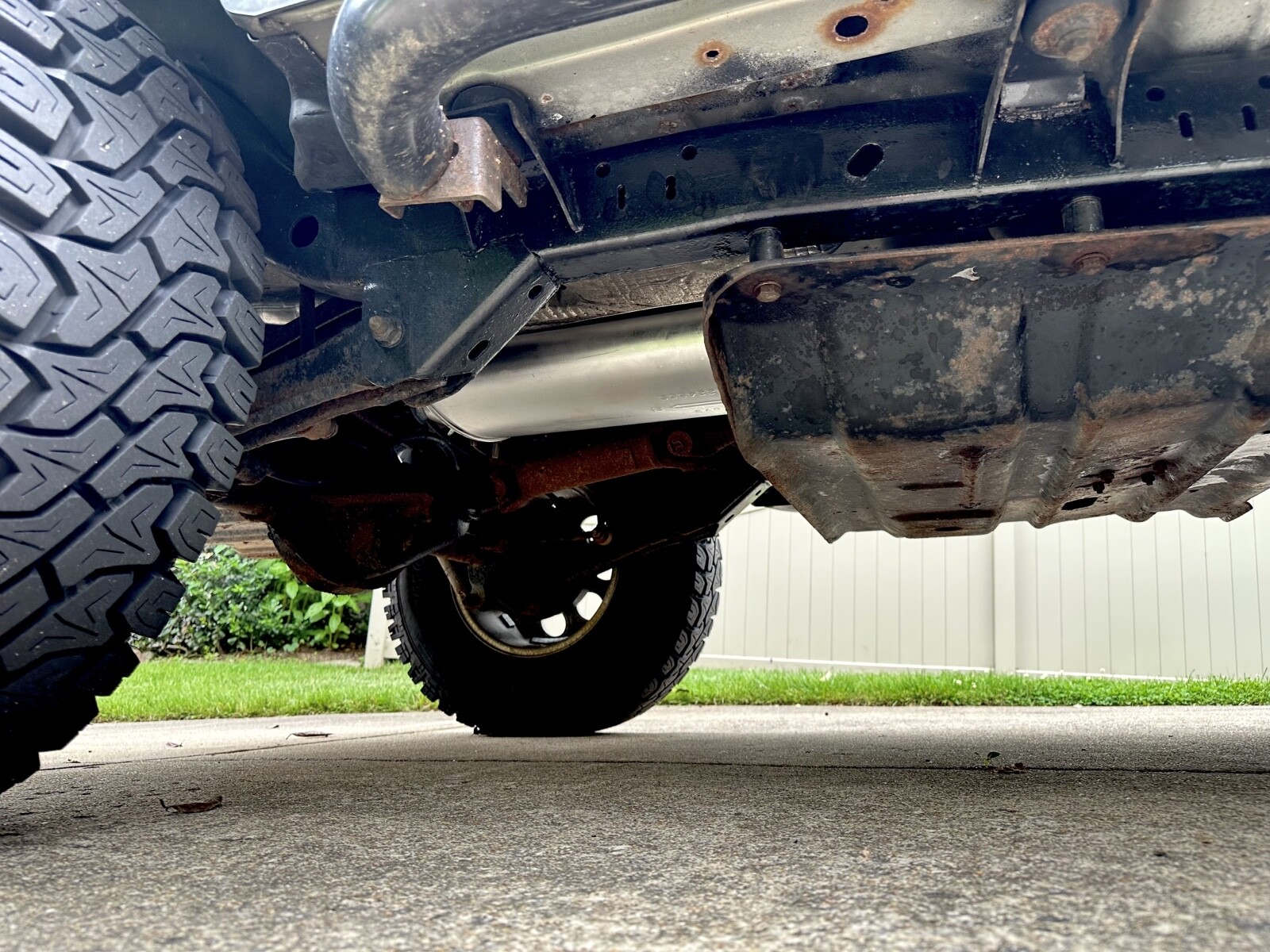 Minimal surface rust on the undercarriage, and the frame has been rust-prevented with petroleum based coating. Brand new muffler and cat-back system installed at 58,250 miles. Lifted and riding on 33” Micky Thompson Mud Tires with MT aluminum wheels.