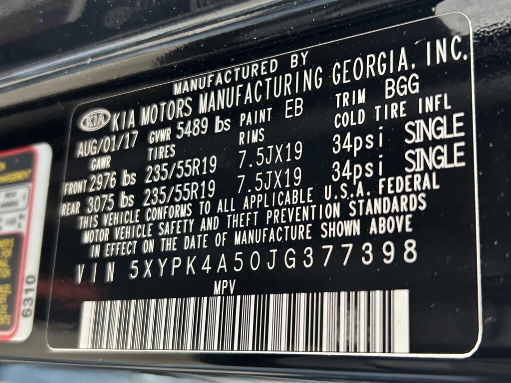 Ebony Black 2018 Kia Sorento SX FWD 6-Speed Automatic with Sportmatic 3.3L DOHC
