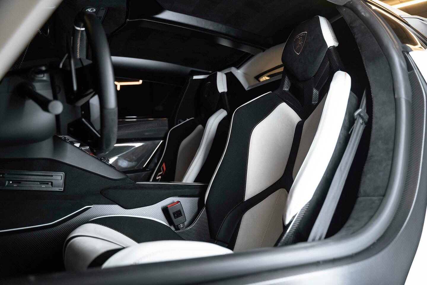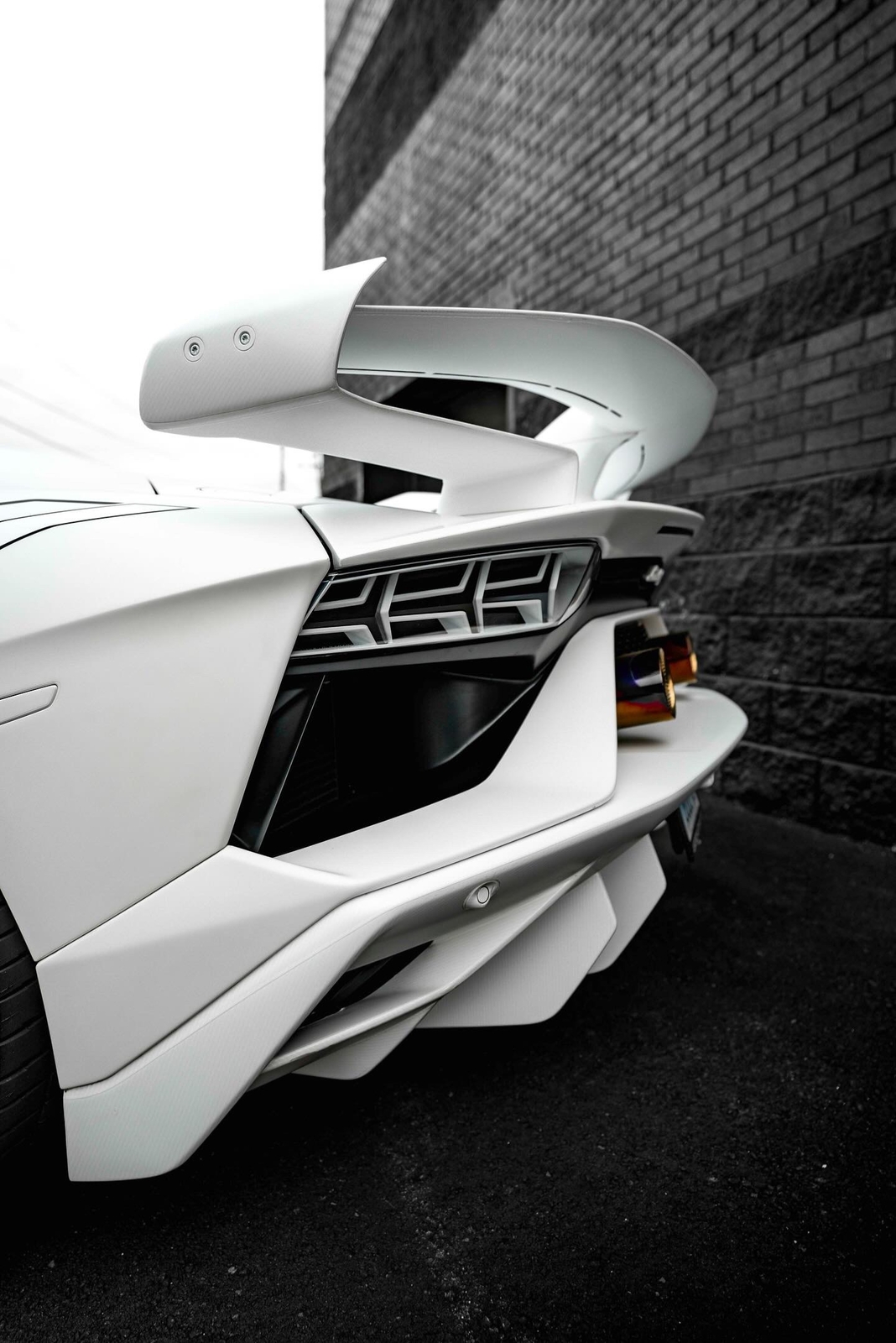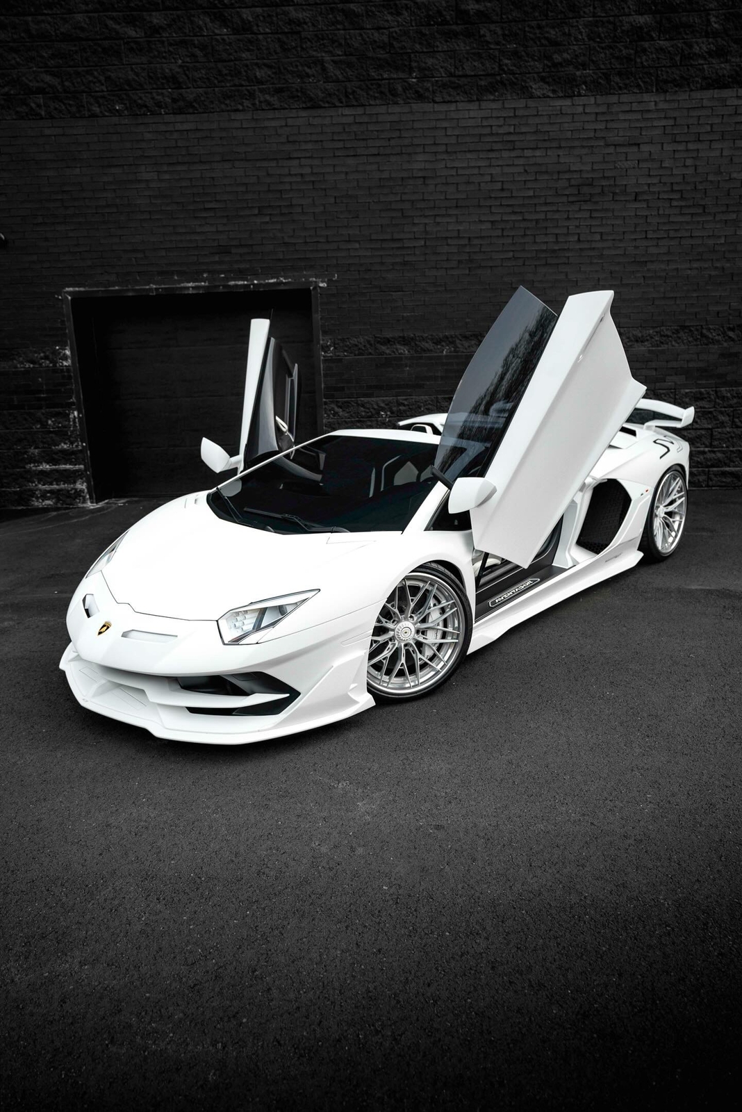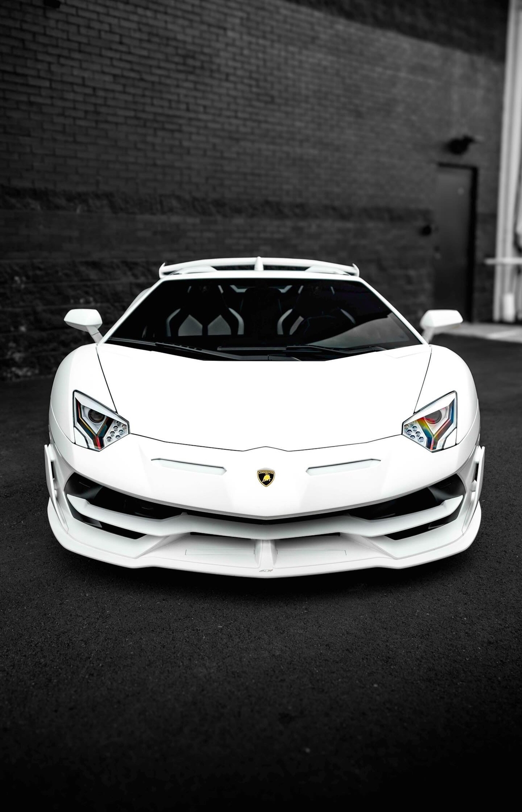 Modifications:FULL Body Satin PPFAny body components that were factory PAINTED black are now PAINTED to match Factory WhiteAny body components that were factory CARBON FIBER are now wrapped in a matte white vinyl that matches the factory paint and then STEK CARBON PPF was laid over all these pieces matching the factory weave directionHeadlights opened up and painted factory matte white with RGB Lights behind the DRL LensesTaillights were opened up and painted factory matte white, the drl lenses were tintedNOVITEC Lowering springs powder coated whiteCenterlocks powder coated matte whiteAVENTADOR SVJ side badges hand painted letters in matte whiteOEM Hub caps painted all matte white in and outside of the BULL logo, the outside of the logo emblem has STEK Carbon ppf overlaid on the paint to resemble the factory finish with carbon outside of the logoBrake calipers painted to match Gloss WhiteVossen 3-Piece wheels in Polished Lip/Brushed Spokes/Matte black barrel on Michelin Pilot Sport 4s tiresValvetronic Test pipes and full exhaust without valves or muffler (loudest SVJ Ive ever heard, yes louder than Gintani svjs)GINTANI ECU tune