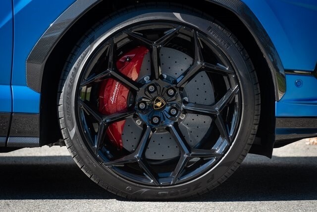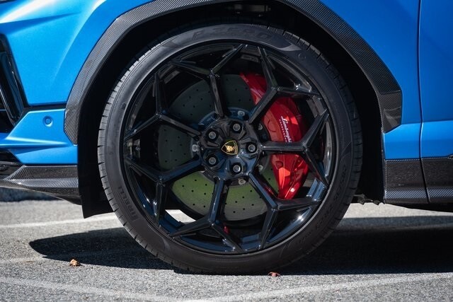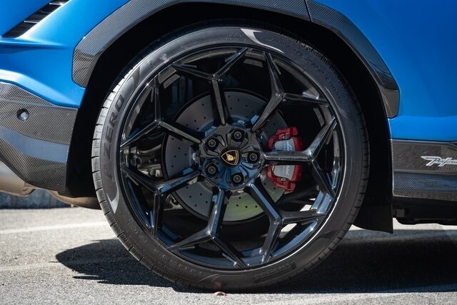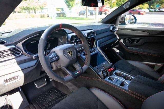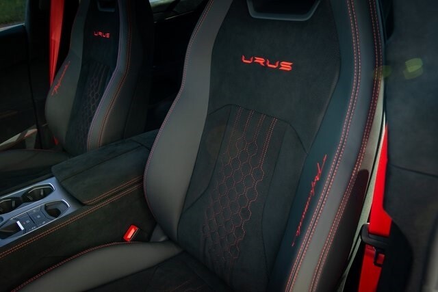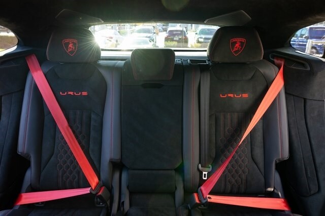 Inside, the Rosso Alala seat belts add a bold and contrasting touch to the interior. The 23-inch Pelope shiny black wheels enhance the Urus's presence on the road, while the 21-inch spare wheel ensures you're always prepared for any situation.