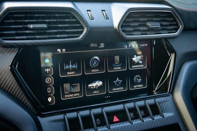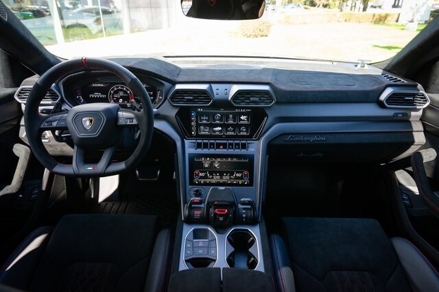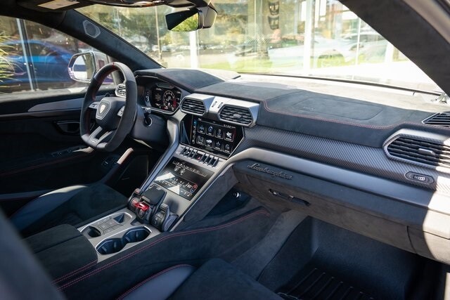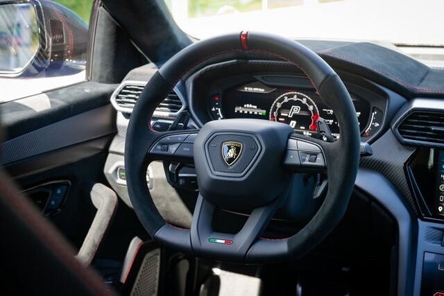 Entertainment reaches new heights with the Advanced 3D Bang and Olufsen Surround Sound system, ensuring an immersive audio experience. The Full Exterior Carbon Fiber package enhances aerodynamics and visual appeal, making the Urus Performante stand out even more.