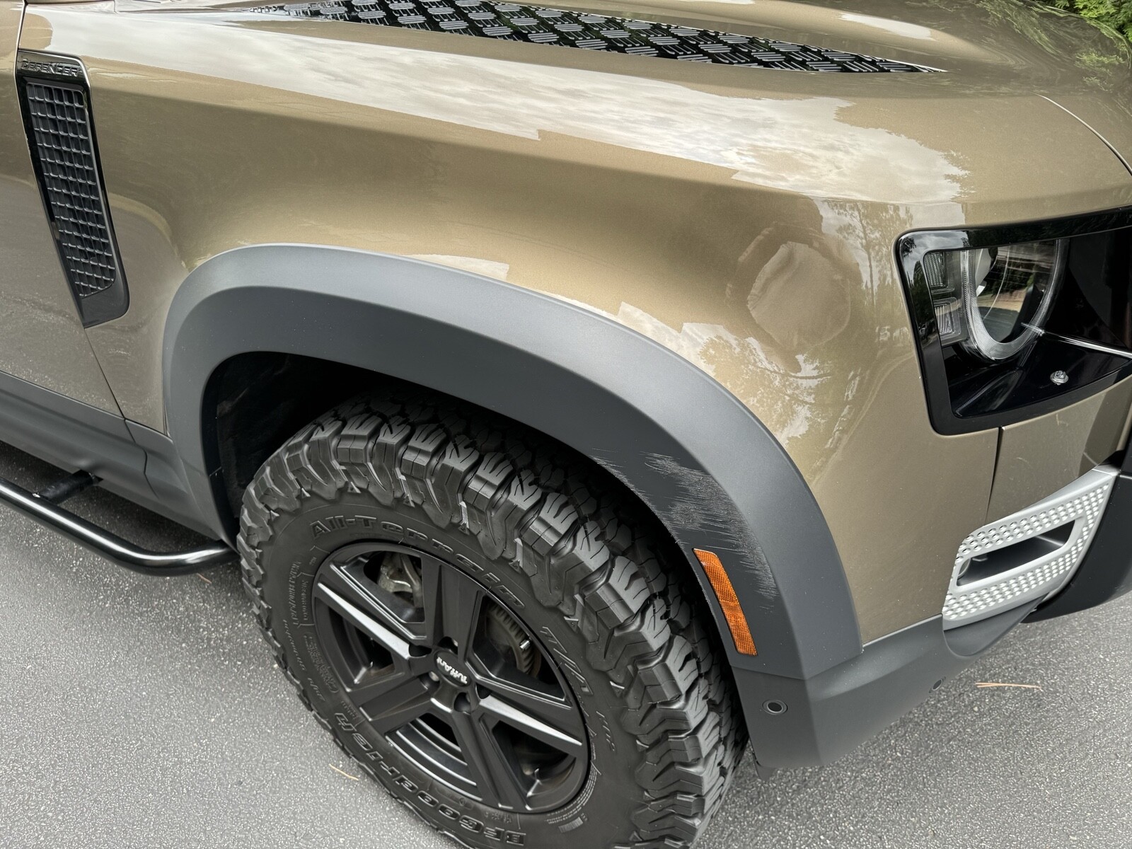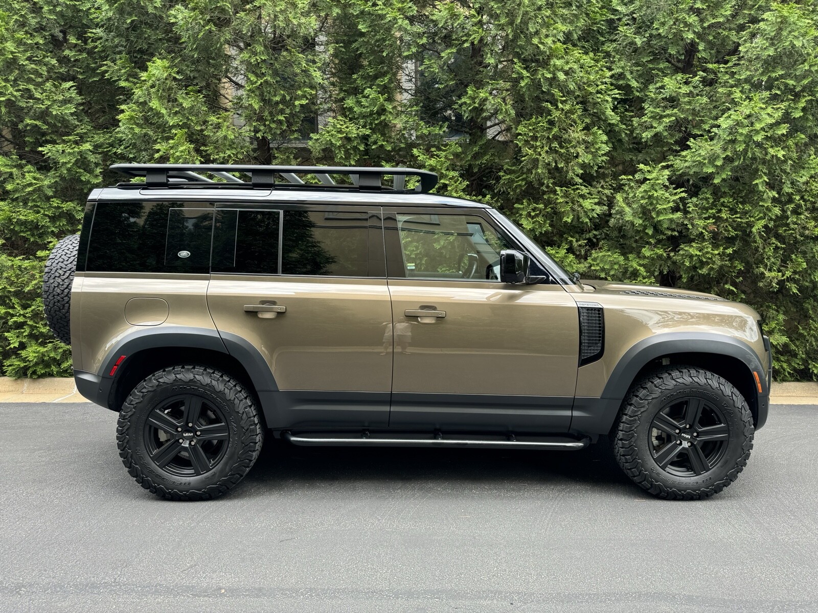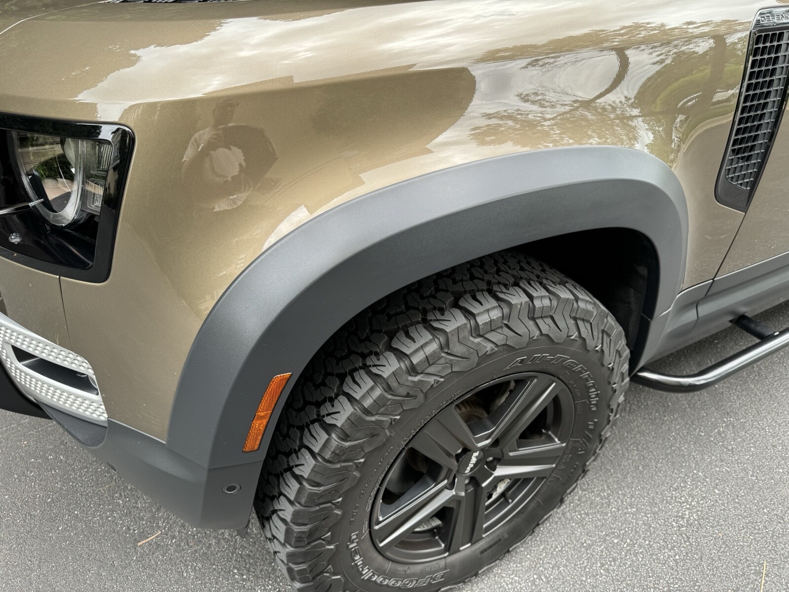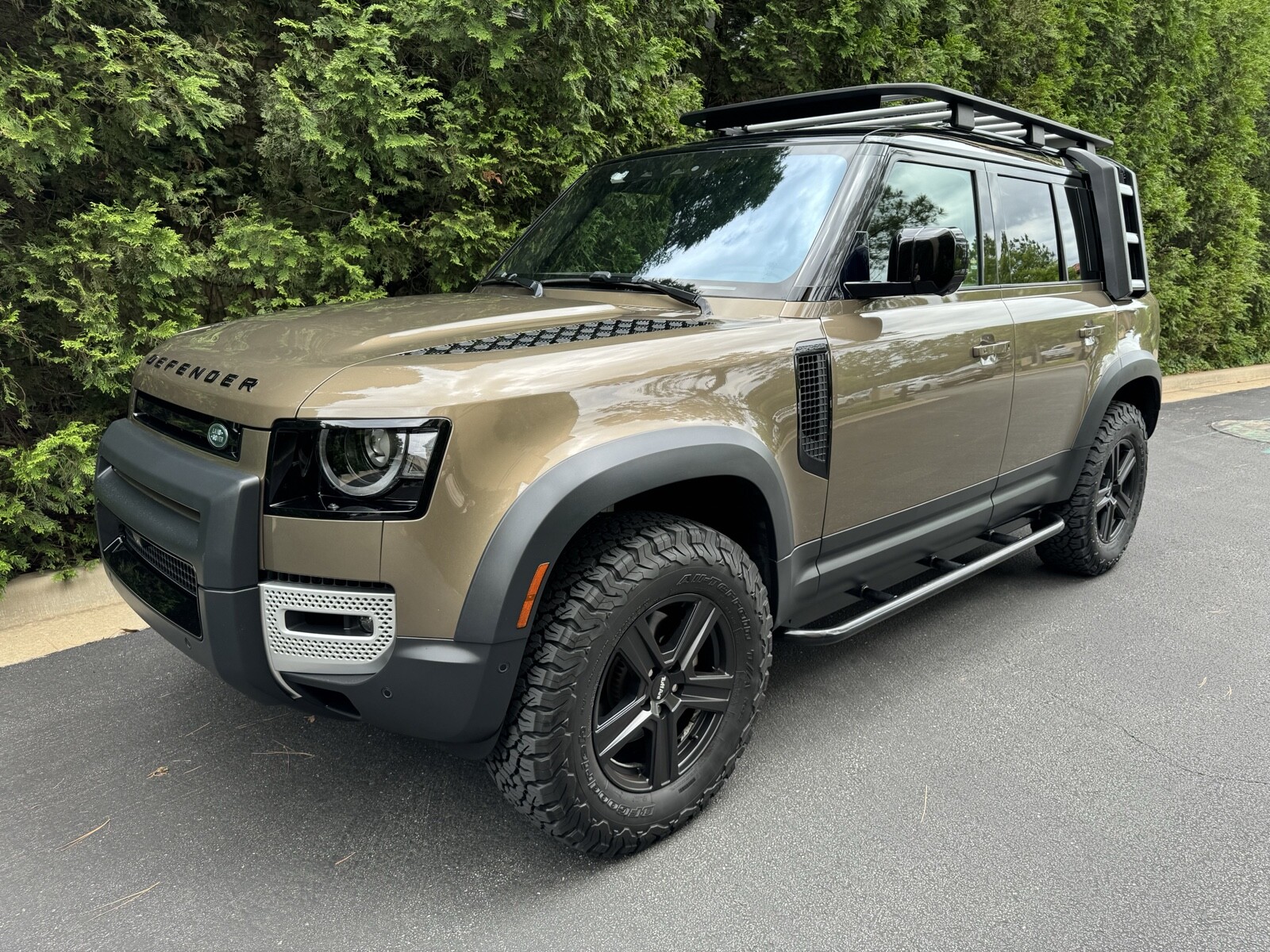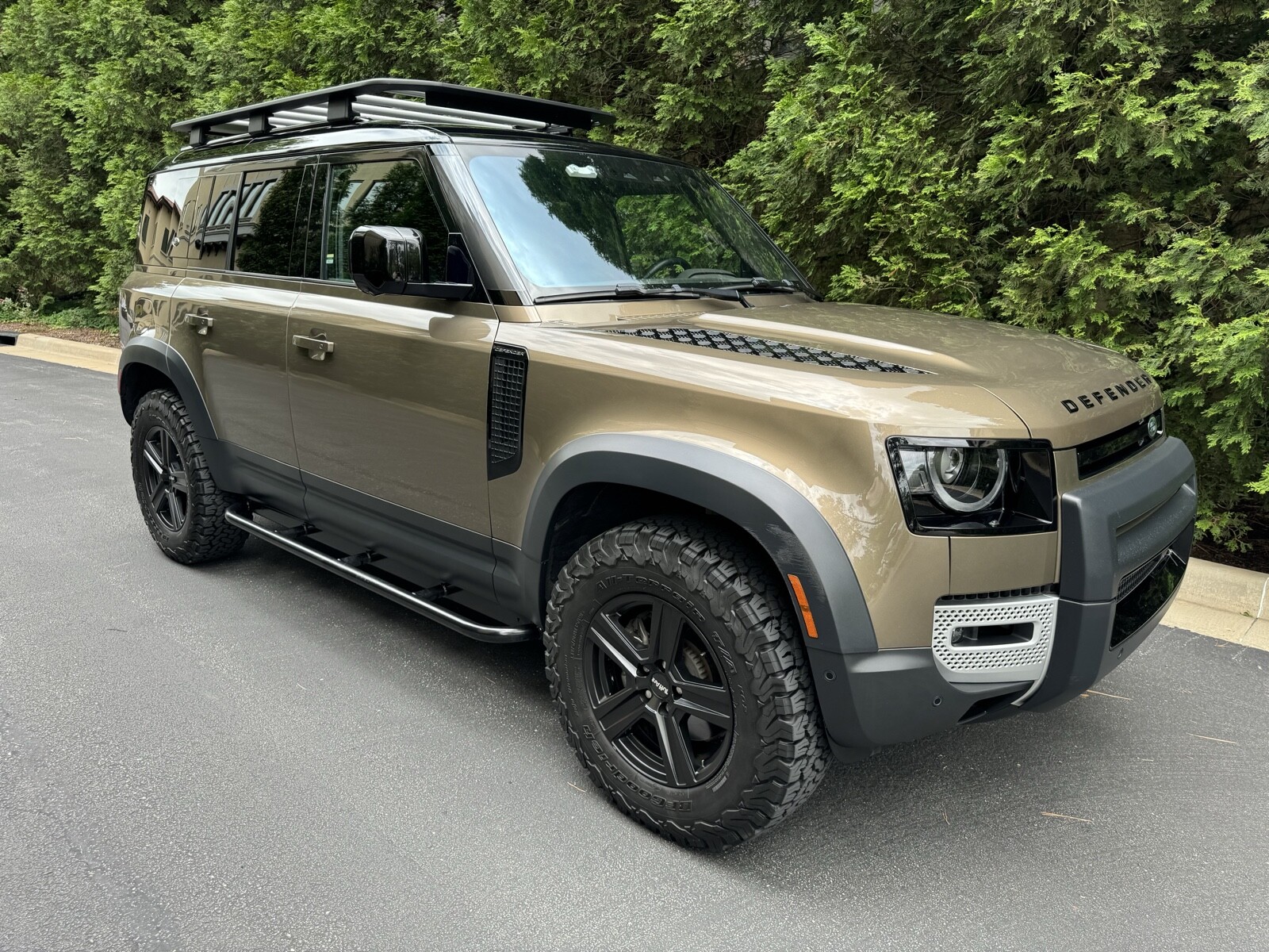 Premium LED Headlights with Signature DRL, Ebony Morzine Headlining, Cabin Air lonization with PM2.5 filter, Front Fog Lights, Air Quality Sensor, Expedition Roof Rack, Integrated Air Compressor, Wheel Arch Extensions, 11.4in Touchscreen, Handover Package. Tuffant Wheels with BFG All Terrain K02 Tires (2K miles). Proud Rhino 1” Suspension Lift + Rock Sliders. And the following options were programmed: Adaptive Cruise Control. Last user mode. Turns off auto stop start and leaves it off. Fog lights with high beams. Global window close from key fob plus Free WiFi.