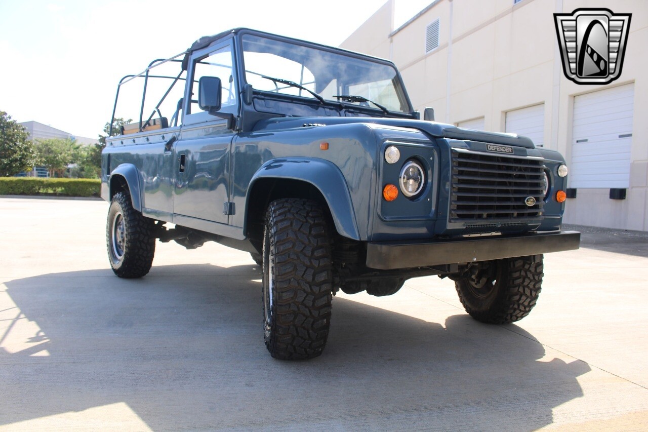 Gateway Classic Cars Houston Showroom is excited to offer this 1996 Land Rover Defender 110 for sale. This Defender was imported from the Middle East, and has a clean Texas title, so it has cleared all import requirements. It also comes with a new full-length canvas top, ready to be installed by its new owner. The exterior is of this one finished in a sophisticated gray that pairs beautifully with the black vinyl interior, creating a look that is both understated and distinctive. Under the hood, you'll find a 4-cylinder gasoline engine, which is backed by a 4-speed manual transmission. This combination ensures a driving experience that is both engaging and responsive, providing you with the control you need to tackle any terrain with confidence. This Defender is equipped with a range of features designed to enhance your driving experience. The aluminum wheels are not only stylish but also lightweight, contributing to the vehicle's overall performance and fuel efficiency. Power brakes offer superior stopping power, giving you the peace of mind that comes with knowing you can rely on your vehicle in any situation. The vehicle also comes with radial tires, known for their durability and ability to provide a smooth, comfortable ride. The inclusion of seatbelts is a testament to Land Rover's commitment to safety, ensuring that you and your passengers are protected at all times. Inside, the black vinyl interior is both practical and stylish. It's easy to clean and maintain, making it ideal for those who lead an active lifestyle and need a vehicle that can keep up. In conclusion, this 1996 Land Rover Defender offers a blend of style, performance, and practicality that is hard to match. Whether you're navigating city streets or exploring off the beaten path, this SUV is ready to take you wherever you need to go. [ omitted ].