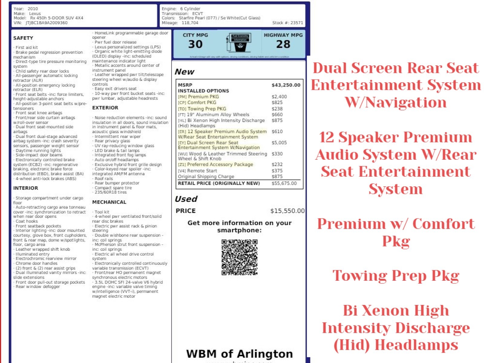 * Thank you for visiting another one of W B M of Arlington's exclusive listings! W B M of Arlington is a small family operated business established in 1988. * Our competitive pricing primarily stems from our lean operational costs, not compromised quality. We prioritize customer value over higher profit margins. * We welcome pre-buy inspections. * We offer extended service warranties for this vehicle. * We exclusively source our vehicles from non-auction channels. * Every car in our inventory undergoes meticulous inspection and comes with a verified CARFAX history report. * To view more pictures, please visit our website at . * A few vehicles may exhibit slightly higher mileage than initially advertised, primarily attributed to test drives, inspections, and servicing. * We kindly request you to verify the precision of vehicle options with your designated sales representative. In very rare instances, discrepancies may arise in the transmission of electronic data feeds, potentially affecting the accurate representation of certain options.