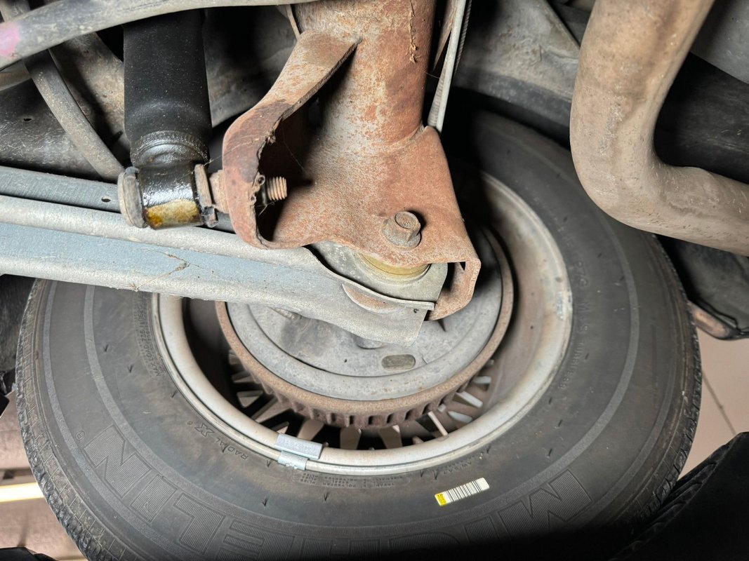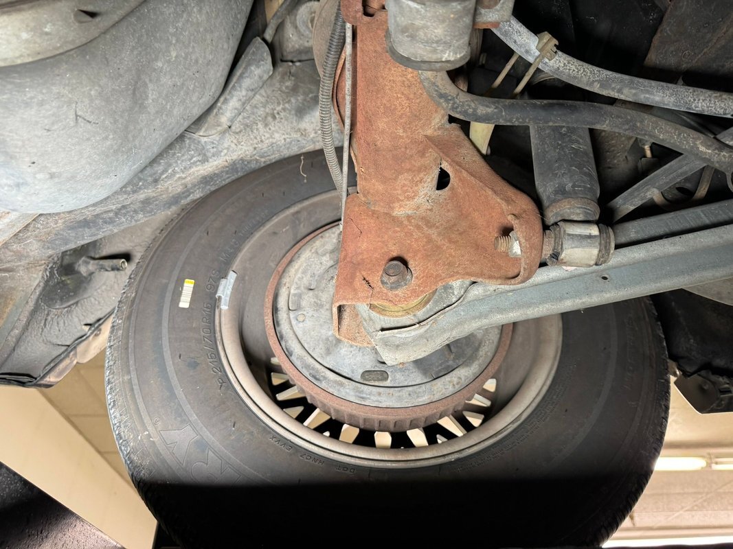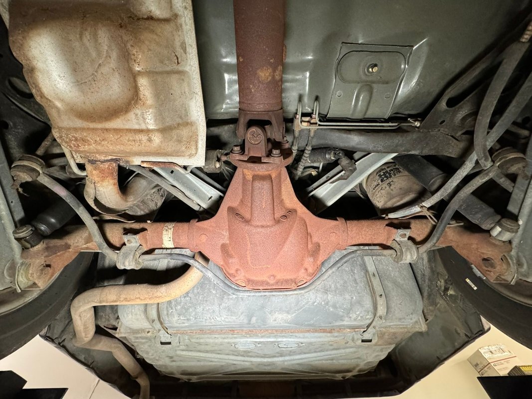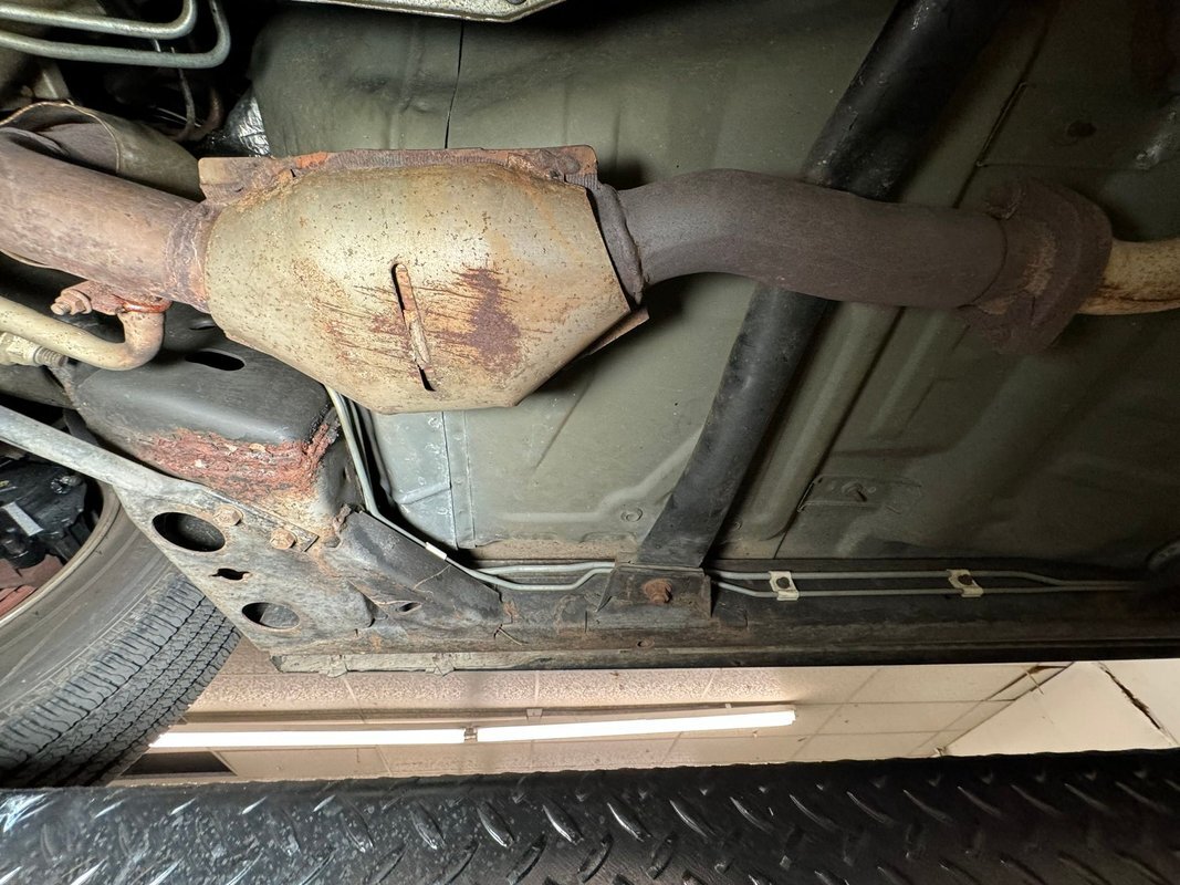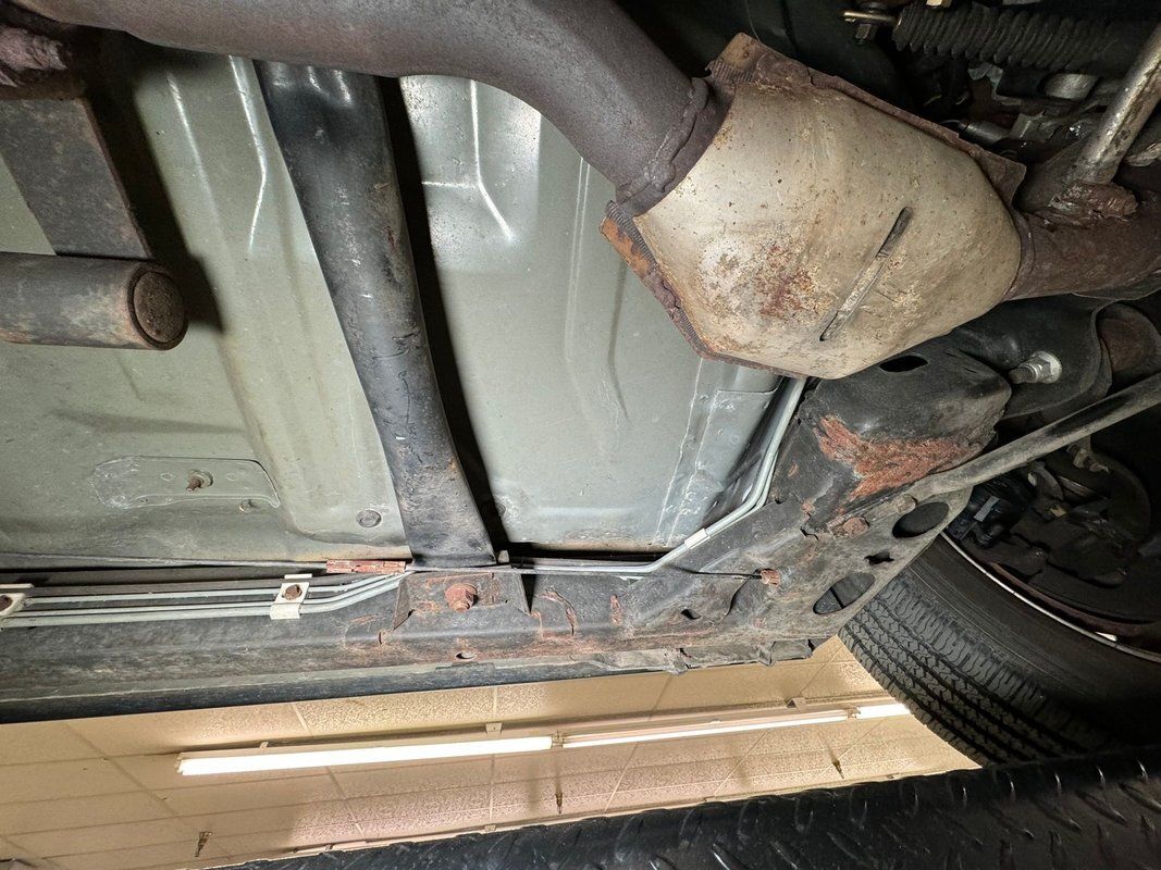 All very clean underneath and indicative of an 18,000 mile vehicle that's been well maintained. There is surface rust in typical areas; rear axle, driveshaft, and metal suspension components all normal for the miles, age and single owner care. The Signature Series received dual exhaust from the manifolds which have separate catalytic converters, then join into one pipe where it enters the original equipment muffler before exiting to the back on the right side. Independent front suspension with coil springs soften the ride up front while 4-link suspension equipped with air bags ensure a comfortable ride in the back. The undercarriage overall is clean and dry.