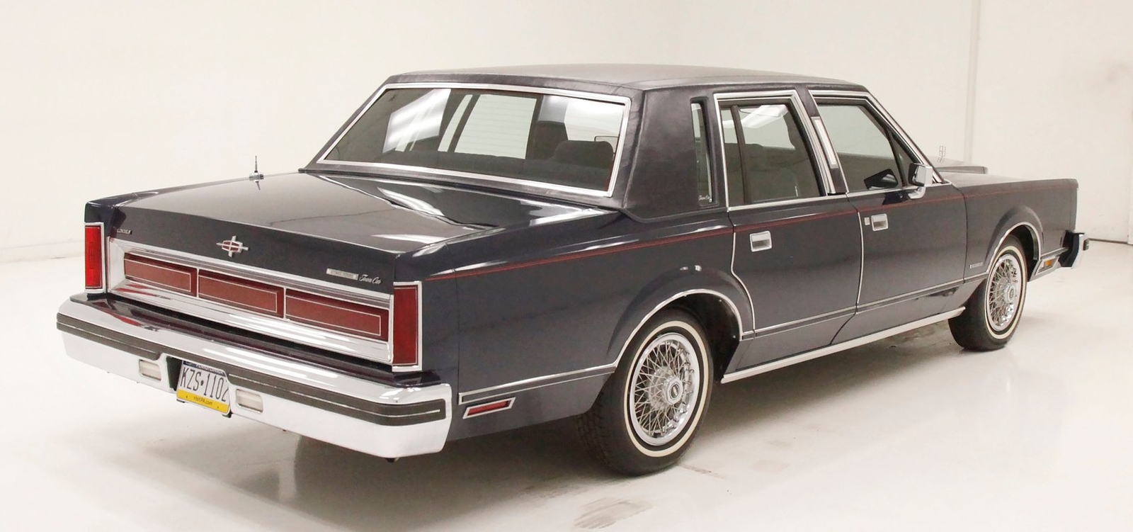 For consignment, a Lincoln Town Car in total square and rectangle design, landau top, chromed trimmings and plenty of passenger and storage space. All bathed in classy dark blue, this 4 door sedan has a consignor stated mere 46,324 miles however, the title reads mileage exempt, runs swimmingly, is a 2 owner car and has always been garage kept. Why not add a little luxury from the Blue Oval corner into your life?
