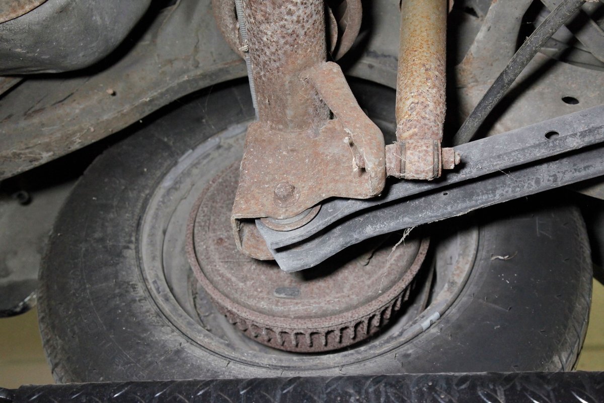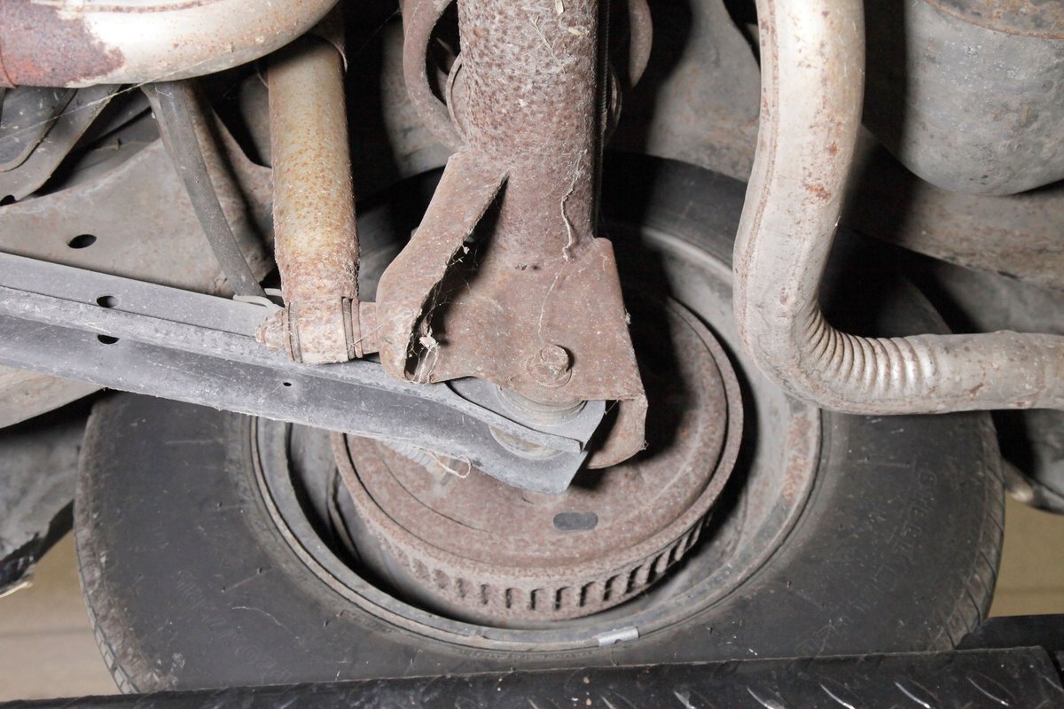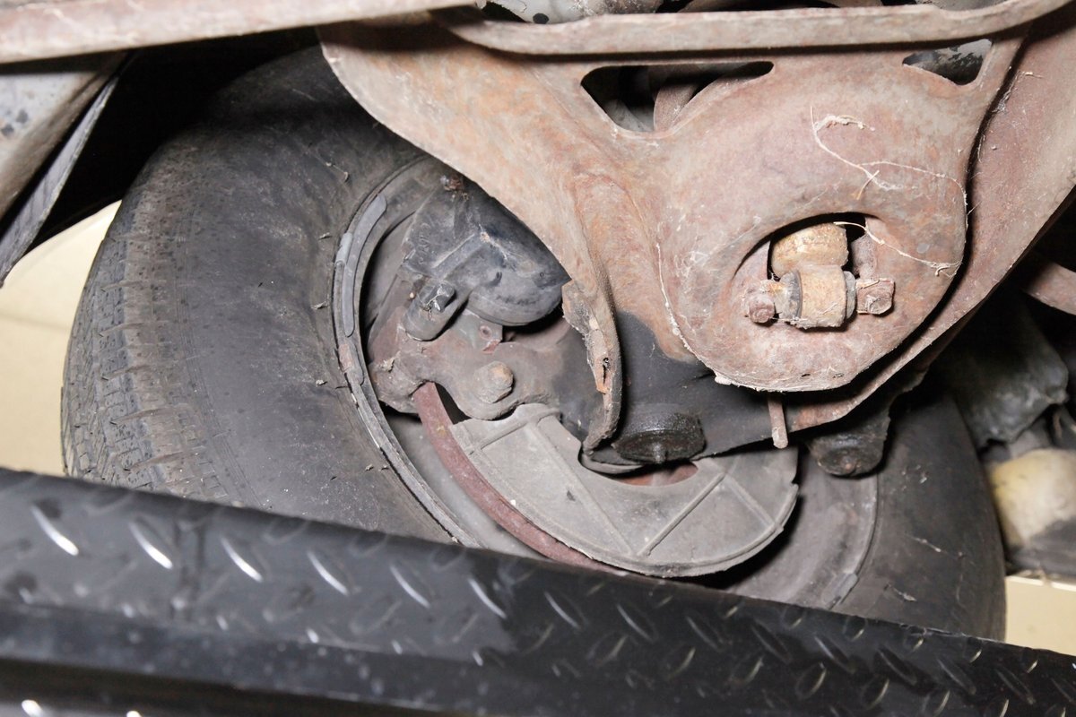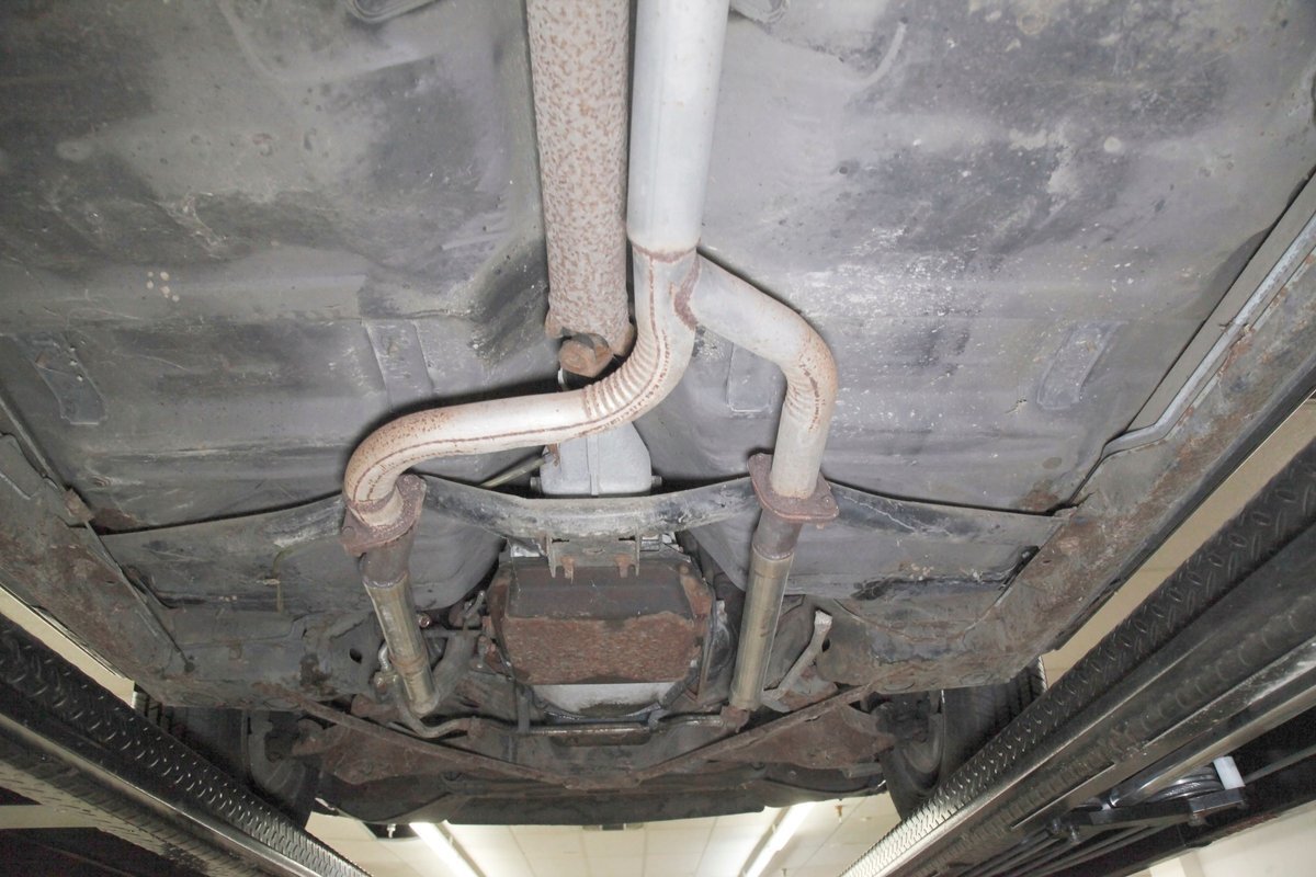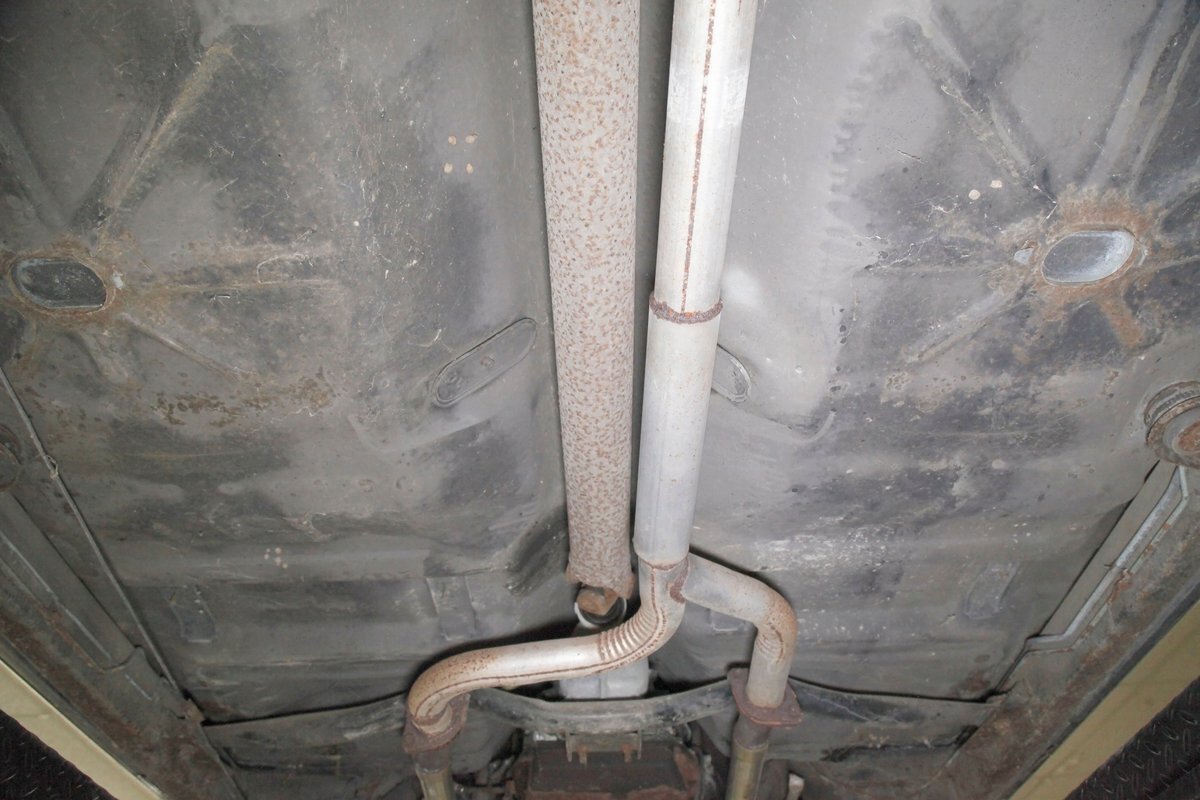 Some slight surface rust on the usual suspects, with no invasive rust to note on the floor pans, rockers and full perimeter frame. Independent coil springs provide the ride up front and, on the back, a 4 link with coil springs do the same for the rear. Power disc brakes in front, and power drums for the rear and we note a stock style single exhaust for the exhale.