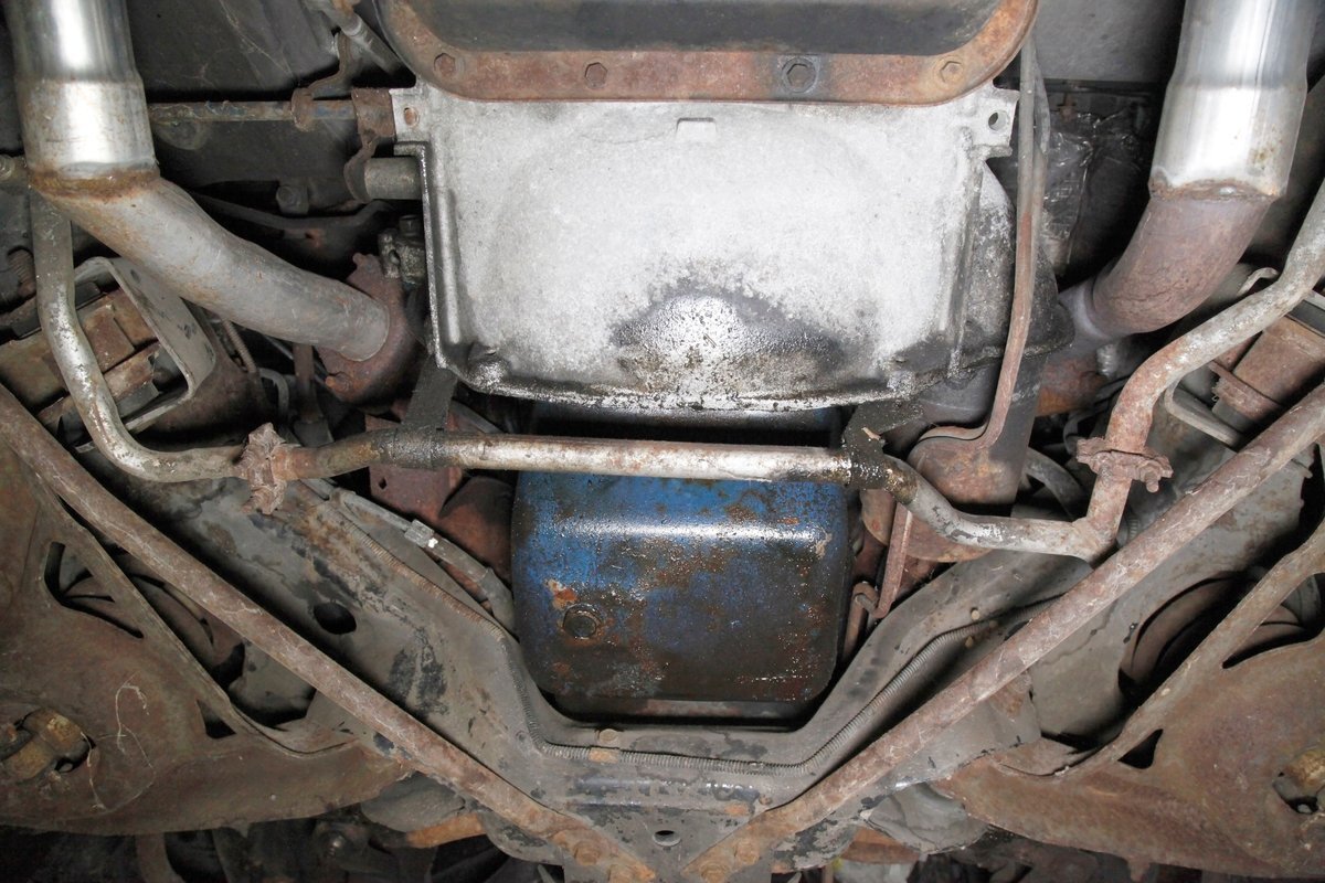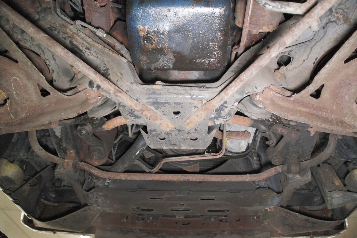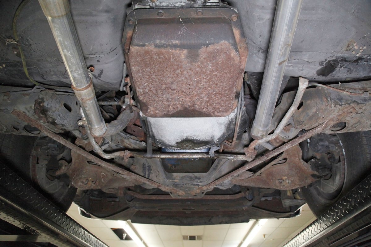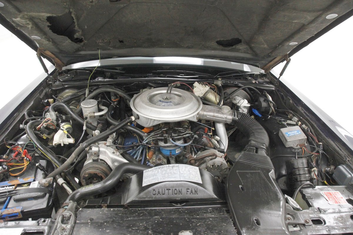 Lifting the hood we see the original unrestored drivetrain in the patina engine bay. This is in the form of a 302ci V8. CFI electronic fuel injection adds to efficiency and an AOD 4-speed automatic transmission is attached to the back. The rear axle is a Ford 8.8-inch rear which has a 3.08 gear ratio. The engine bay has some rust and corrosion, typical of an unrestored car of this age.