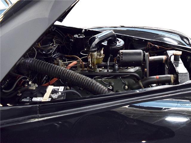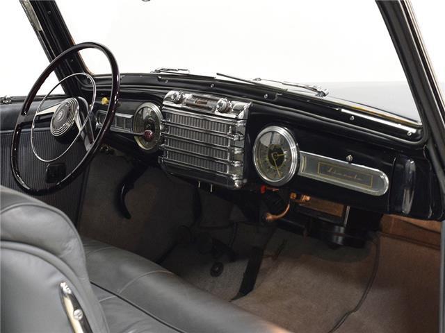 The gray leather interior was restored at the same time and shows quite well today. There are obviously some comfort marks on the driver’s seat, inevitable when a car is used as intended, but there are no splits or tears in the hides. The beautifully fitted door panels highlight the Continental’s unique pushbutton door releases and power windows, both fairly advanced features for 1948. The gauges are familiar 1940s fare, with a big, round speedometer ahead of the driver and secondary gauges to the immediate left, plus a big center stack that houses secondary switches. All the gauges appear operational and their ornate gold lettering still looks elegant today. The burgundy plastic steering wheel is in excellent condition with no major cracks or breaks. The toggle switches under the center stack control the headlights (the original switch also seems to work—curious) and the auxiliary electric fuel pump, which is a useful addition for cold starts and hot days when vapor lock can become an issue. This car is also equipped with factory overdrive, which makes the Continental a comfortable cruiser at modern highway speeds. Even though this is a coupe, the back seat is spacious enough for adults and with quarter windows, it doesn’t have the same claustrophobic feel as the convertible. And for touring, there’s a rather large trunk out back that’s fully upholstered to match.