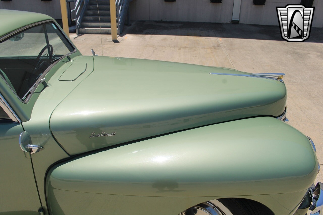 Gateway Classic Cars Houston Showroom is pleased to offer this classic 1948 Lincoln Continental. This vintage gem, with its striking green exterior and matching green leather-trimmed cloth interior, is a testament to the timeless elegance of Lincoln's design. Under its hood, you'll find a V12 engine, a rarity in today's market. This engine is paired with a 3-Speed manual transmission, offering you an authentic driving experience that harks back to the golden age of motoring. The Lincoln Continental is not just about looks and power. It also boasts several features that add to its charm and functionality. Tune into your favorite AM radio stations as you cruise down the road, enjoying the nostalgia of simpler times, and activate the overdrive for longer cruises. The car is fitted with Coker Classic bias ply tires, known for their durability and performance. The wide white walls add a touch of class and sophistication to the vehicle's overall appearance. Inside, the green cloth interior is trimmed with leather, creating a comfortable and stylish environment. The car is equipped with power windows, a luxury feature in its time, offering convenience at your fingertips. Safety has not been overlooked in this classic car. It comes with seatbelts, a feature not always found in vehicles of this era. This 1948 Lincoln Continental is more than just a car; it's a piece of automotive history. With its unique color scheme, silky smooth V12 engine, manual transmission, and array of features, it offers a driving experience that is both nostalgic and enjoyable. Don't miss the opportunity to own this classic piece of Americana..