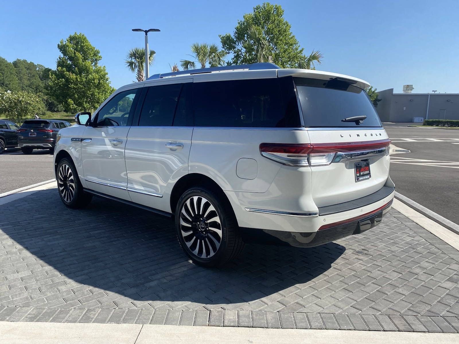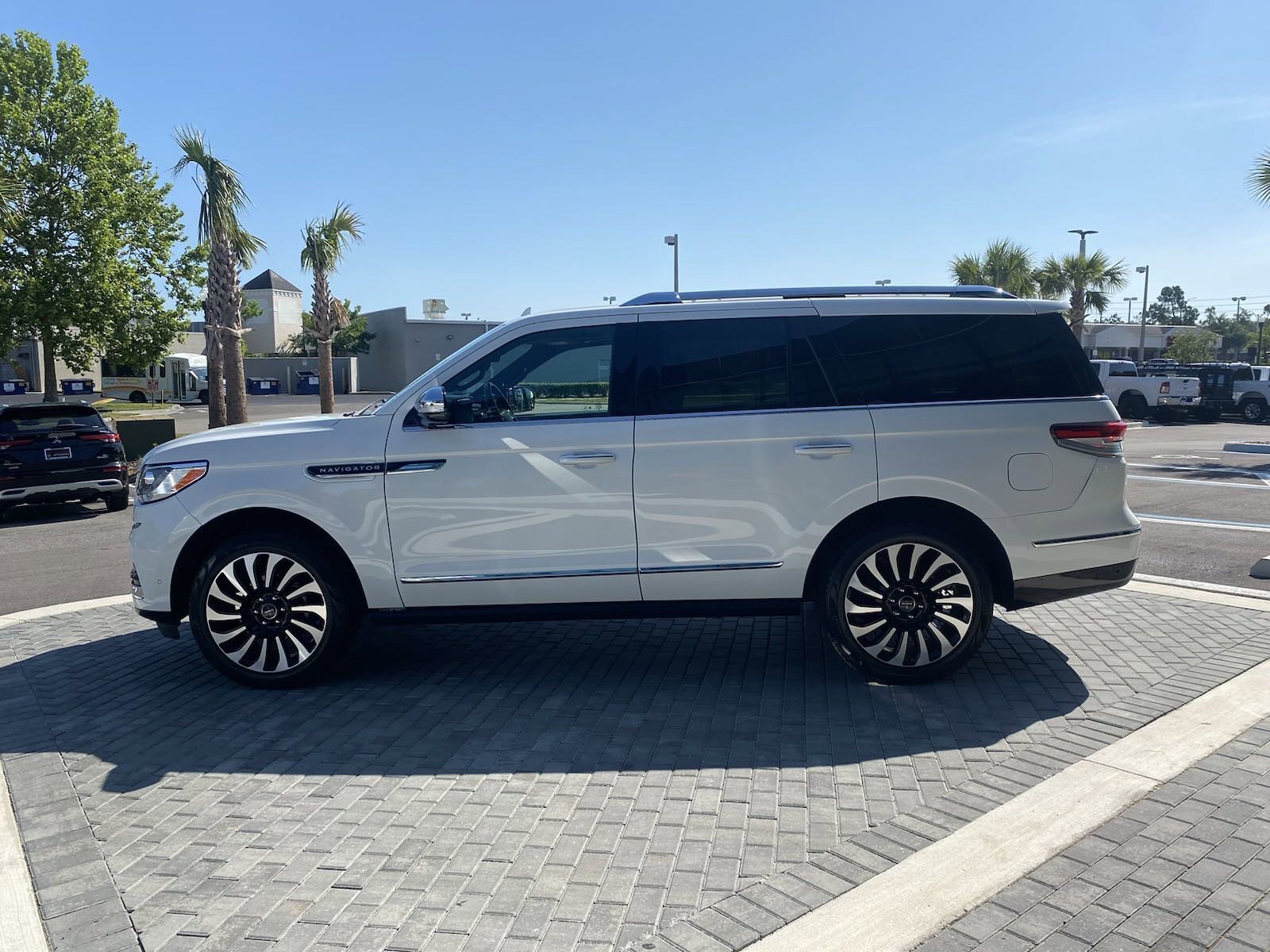 Navigator Black Label, 4D Sport Utility, V6, 10-Speed Automatic, 4WD, Pristine White Metallic Tri-Coat, Black Onyx w/Lincoln Soft Touch Auto Htd/Ventiltd Comfort Seats, 28 Speakers, 3.73 Axle Ratio, 3rd row seats: split-bench, 4-Wheel Disc Brakes, ABS brakes, Adaptive suspension, Adjustable pedals, Air Conditioning, Alloy wheels, AM/FM radio: SiriusXM with 360L, Audio memory, Auto High-beam Headlights, Auto Start-Stop Technology, Auto tilt-away steering wheel, Auto-dimming door mirrors, Auto-dimming Rear-View mirror, Auto-leveling suspension, Automatic temperature control, Bodyside moldings, Brake assist, Bumpers: body-color, Compass, Delay-off headlights, Driver door bin, Driver vanity mirror, Driver's Seat Mounted Armrest, Dual front impact airbags, Dual front side impact airbags, Electronic Stability Control, Emergency communication system: 911 Assist, Exterior Parking Camera Rear, Floor Carpet/Mats - Espresso w/Dinamica Suede, Four wheel independent suspension, Front anti-roll bar, Front Bucket Seats, Front dual zone A/C, Front fog lights, Front reading lights, Fully automatic headlights, Garage door transmitter, Genuine wood console insert, Genuine wood door panel insert, Head restraints memory, Headliner - Alpine Dinamica Suede, Heads-Up Display, Heated door mirrors, Heated front seats, Heated rear seats, Heated steering wheel, HVAC memory, Illuminated entry, Leather steering wheel, Leather-Wrapped Interior - Alpine w/Black Stitch, Low tire pressure warning, Memory seat, Navigation system: Connected Navigation (3-year trial), Occupant sensing airbag, Outside temperature display, Overhead airbag, Overhead console, Panic alarm, Passenger door bin, Passenger seat mounted armrest, Passenger vanity mirror, Pedal memory, Power adjustable front head restraints, Power adjustable rear head restraints, Power door mirrors, Power driver seat, Power Liftgate, Power moonroof: Panoramic Vista Roof, Power passenger seat, Power steering, Power windows, Radio data system, Radio: Revel Ultima 3D AM/FM/HD/MP3 Audio System, Rain sensing wipers, Rear air conditioning, Rear anti-roll bar, Rear audio controls, Rear reading lights, Rear window defroster, Rear window wiper, Reclining 3rd row seat, Remote keyless entry, Roof rack: rails only, Security system, Silverwood Recon Appliques, SiriusXM w/360L, Speed control, Speed-sensing steering, Speed-Sensitive Wipers, Split folding rear seat, Spoiler, Steering wheel memory, Steering wheel mounted audio controls, SYNC 4 Communications & Entertainment System, Tachometer, Telescoping steering wheel, Tilt steering wheel, Traction control, Trip computer, Turn signal indicator mirrors, Variably intermittent wipers, Venetian Lthr Auto Htd/Ventilatd Capt's Chairs (B), Ventilated front seats, Ventilated rear seats, Voice-Activated Touchscreen Navigation System, Wheels: 22" 14-Spoke Bright Machined Aluminum, Navigator Black Label, 4D Sport Utility, V6, 10-Speed Automatic, 4WD, Pristine White Metallic Tri-Coat, Black Onyx w/Lincoln Soft Touch Auto Htd/Ventiltd Comfort Seats, 28 Speakers, 3.73 Axle Ratio, 3rd row seats: split-bench, 4-Wheel Disc Brakes, ABS brakes, Adaptive suspension, Adjustable pedals, Air Conditioning, Alloy wheels, AM/FM radio: SiriusXM with 360L, Audio memory, Auto High-beam Headlights, Auto Start-Stop Technology, Auto tilt-away steering wheel, Auto-dimming door mirrors, Auto-dimming Rear-View mirror, Auto-leveling suspension, Automatic temperature control, Bodyside moldings, Brake assist, Bumpers: body-color, Compass, Delay-off headlights, Driver door bin, Driver vanity mirror, Driver's Seat Mounted Armrest, Dual front impact airbags, Dual front side impact airbags, Electronic Stability Control, Emergency communication system: 911 Assist, Exterior Parking Camera Rear, Floor Carpet/Mats - Espresso w/Dinamica Suede, Four wheel independent suspension, Front anti-roll bar, Front Bucket Seats, Front dual zone A/C, Front fog lights, Front reading lights, Fully automatic headlights, Garage do