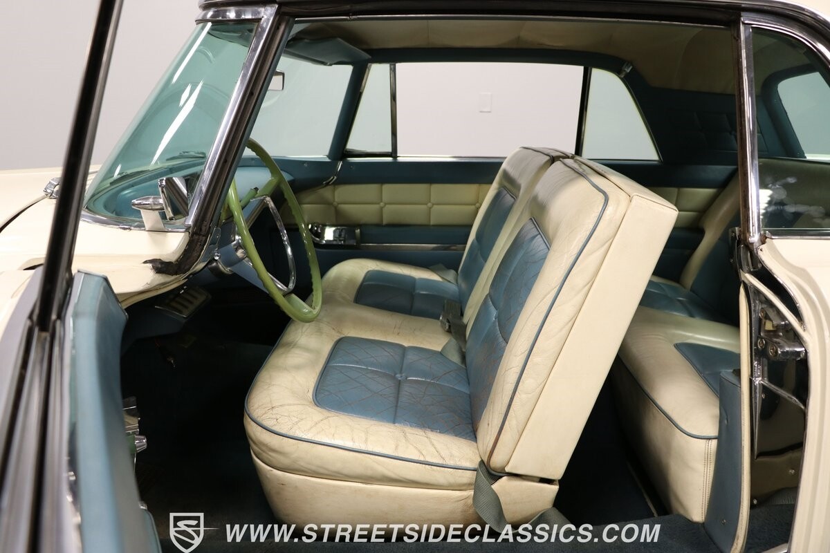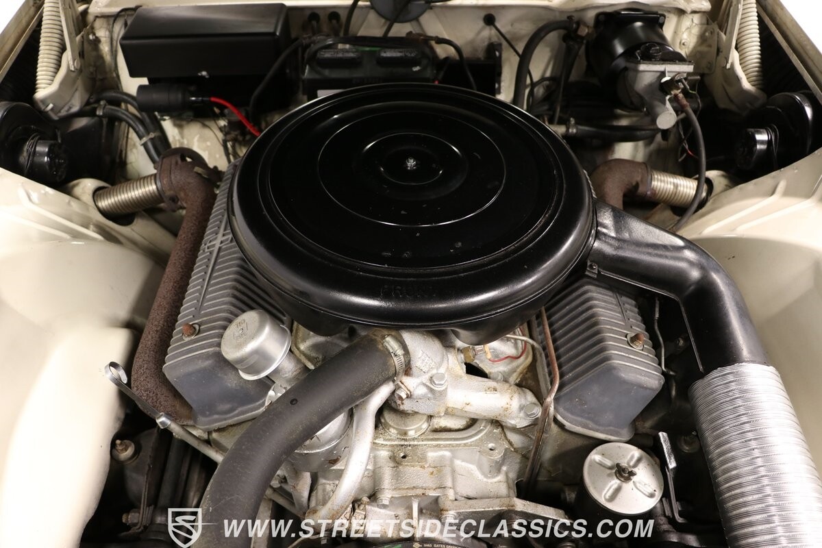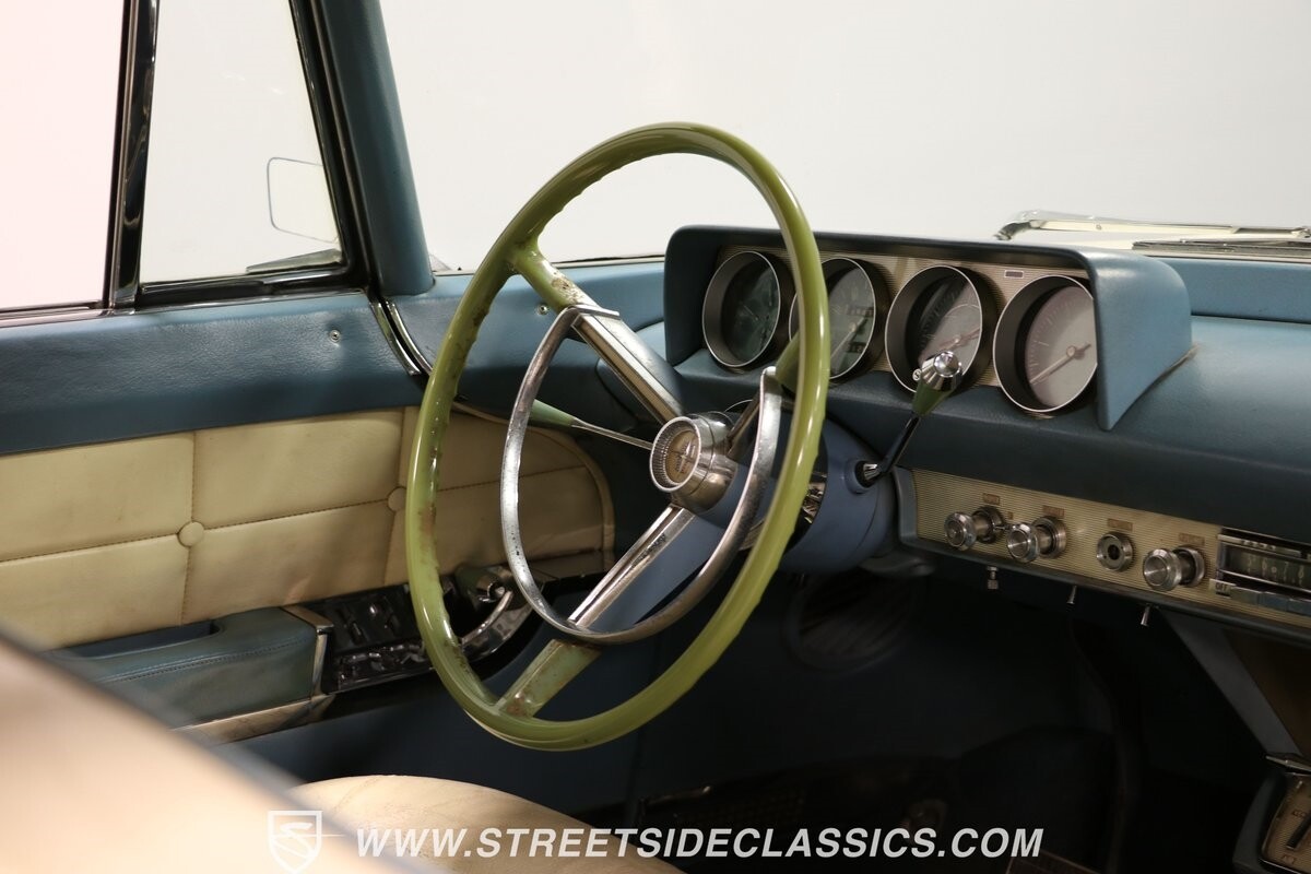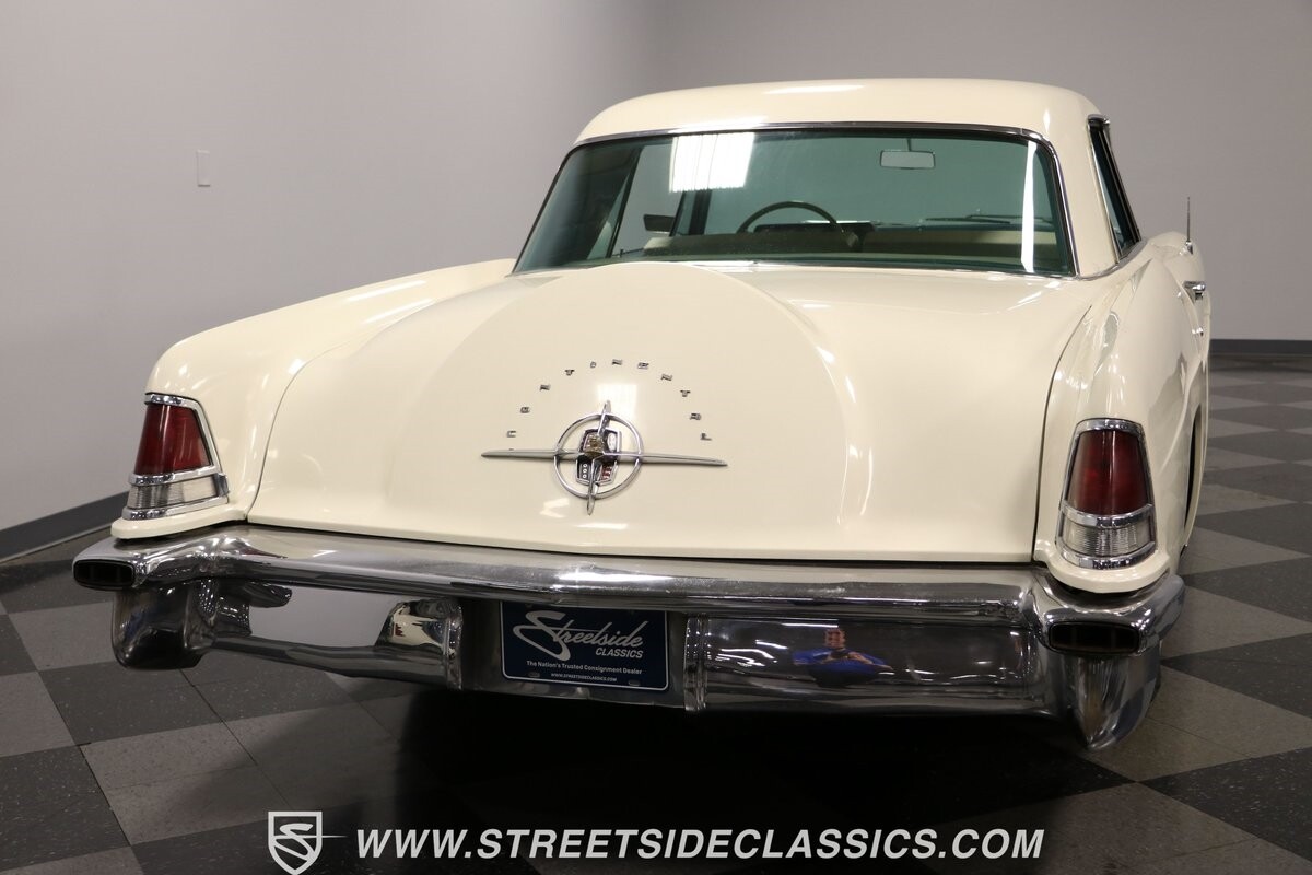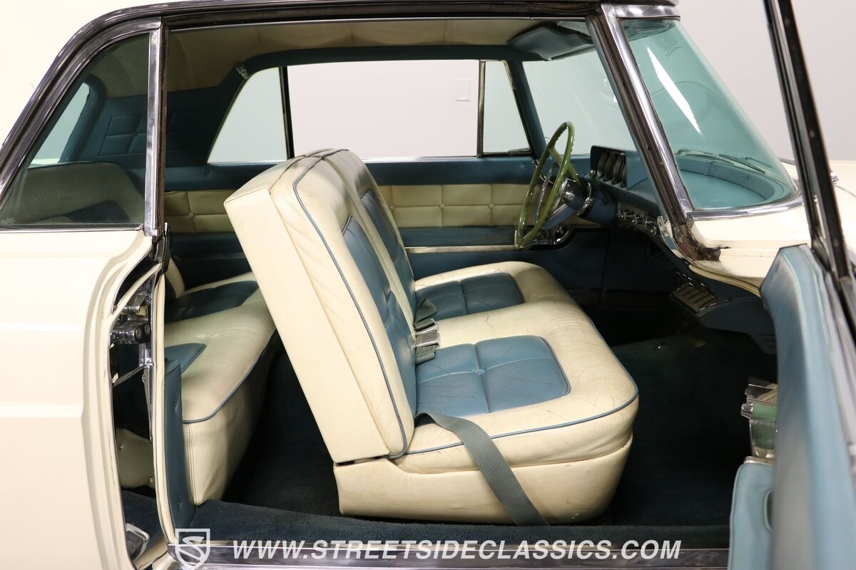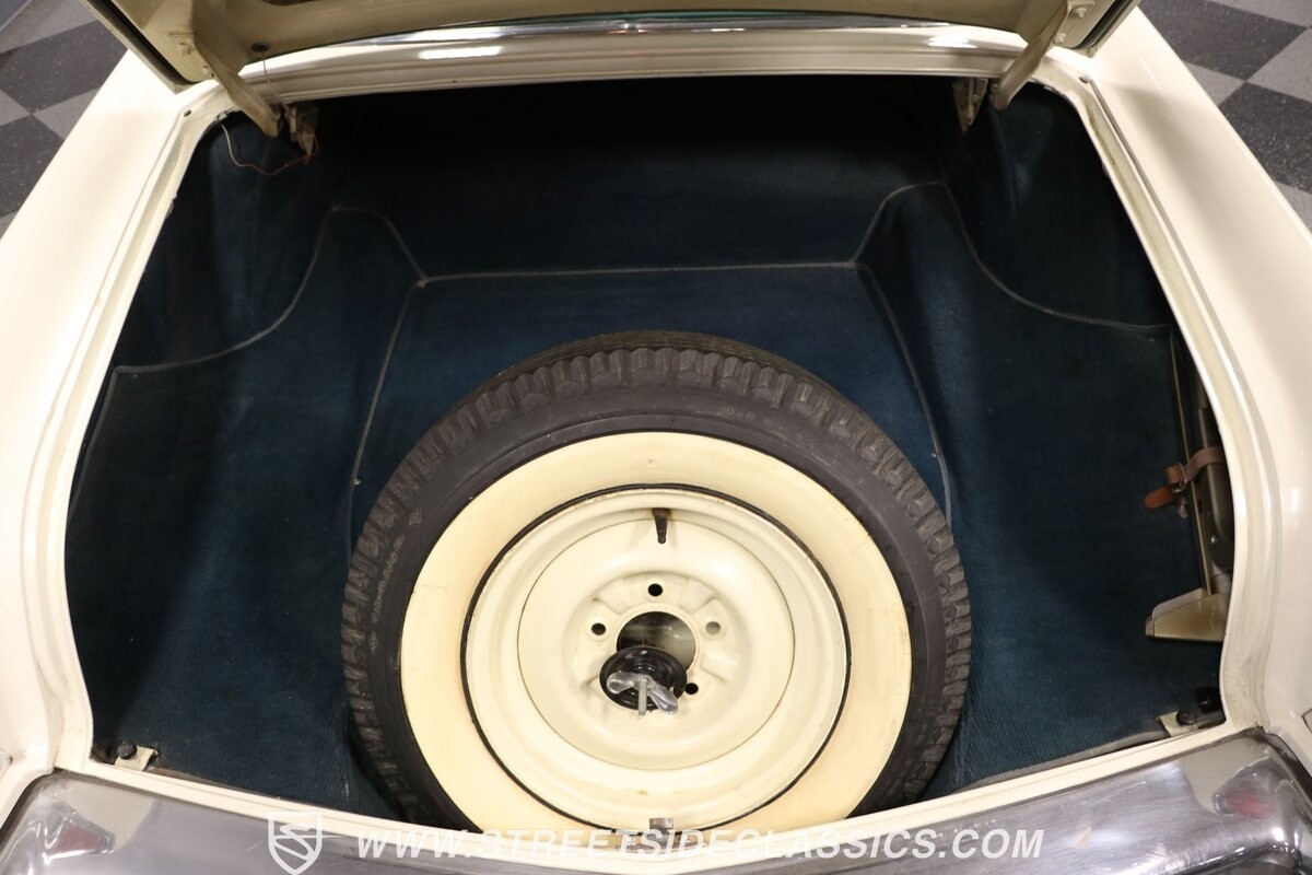 The light blue and white interior is a unique and beautiful combination that nicely coordinates with the seats, carpeting, door panels, and headliner to create a beautifully uniform appearance. It's hard to find anything of note that has been replaced over the decades, and we think that's a good thing. So while you may decide to update elements of this car, we like having plenty of originality here so you can choose what should be updated and what should represent the Eisenhower administration. The instrument panel was influenced by both aircraft and clocks. It has wonderfully detailed dials and levers for the heater controls, making for a unique driving experience. Beyond the intricate factory wheel is a full gauge panel with a tachometer. It's a highly original presentation with terrific luxuries for its era, like the AM radio and a power seat.