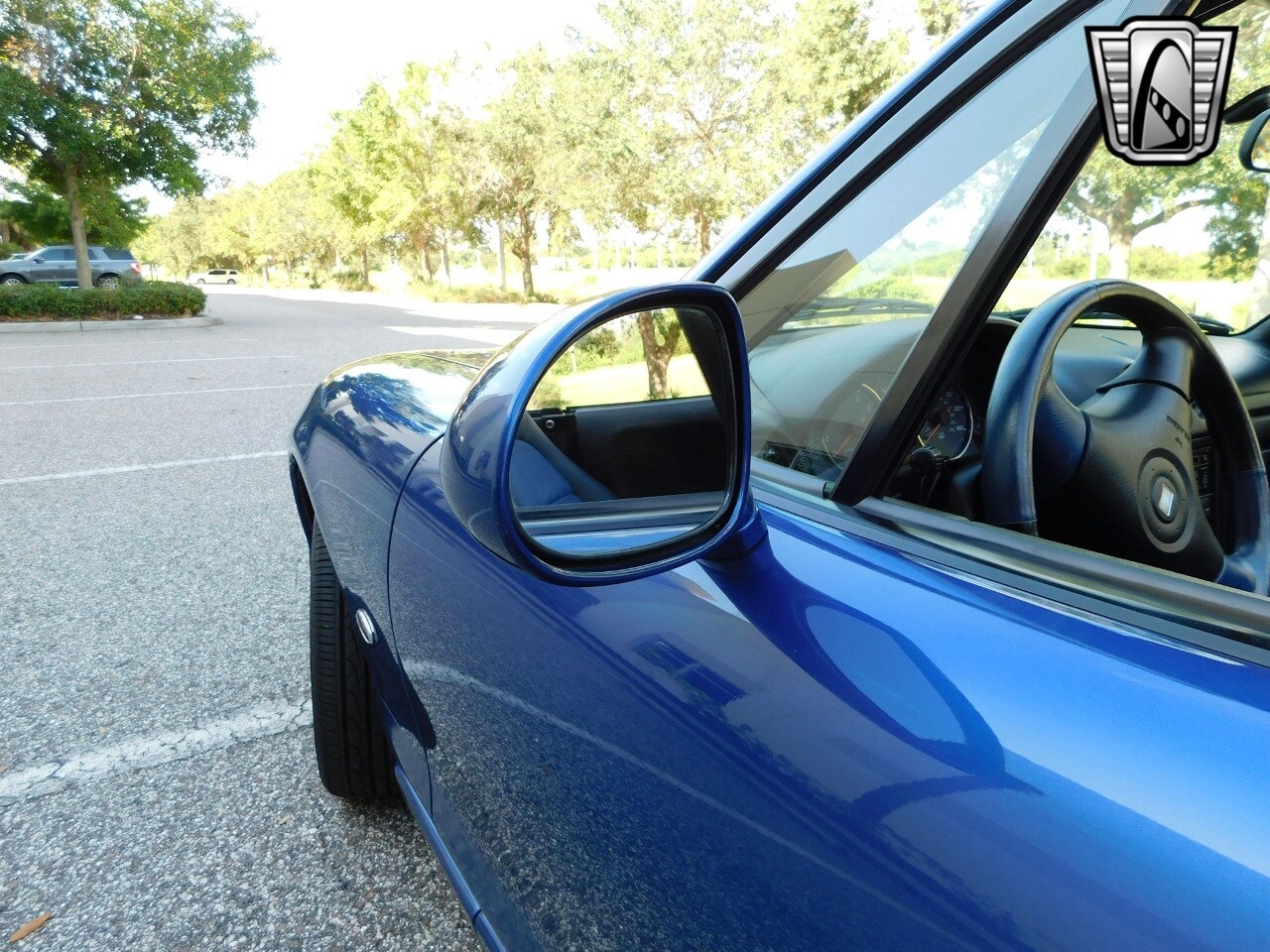 Gateway Classic Cars of Tampa is proud to offer this 1999 Mazda MX-5 Miata. The MX-5 is a true modern classic. It has all the appeal and performance of the classic British sports car with the modern convivences and reliability only modern Japanese engineering can provide. This 99 Miata is a true survivor, being all original, accident free with a Carfax backed 63k on the odometer. The dark blue body has no rust or major blemishes. It sports a nice color matched blue roof with a clean rip free interior. under the hood is Mazda's venerable 1.8L four backed by a six speed manual. The car is so nice it's almost a time capsule of the 90s. The only feature that's succumbed to age is the AC. It no longer blows ice cold, so it's probably time for a recharge. The attrition has taken a toll on used Miatas. It's no longer common to find unmolested examples.