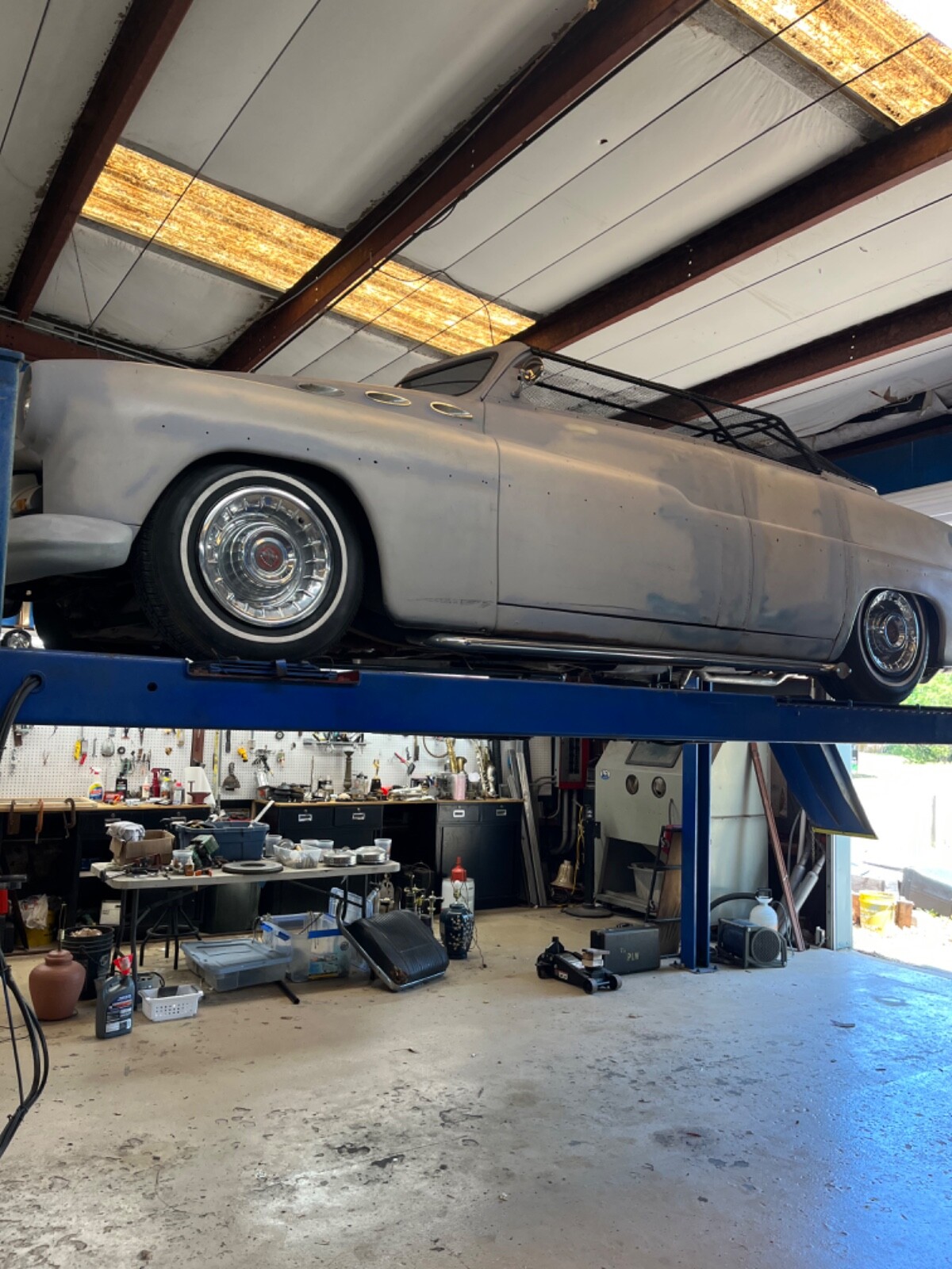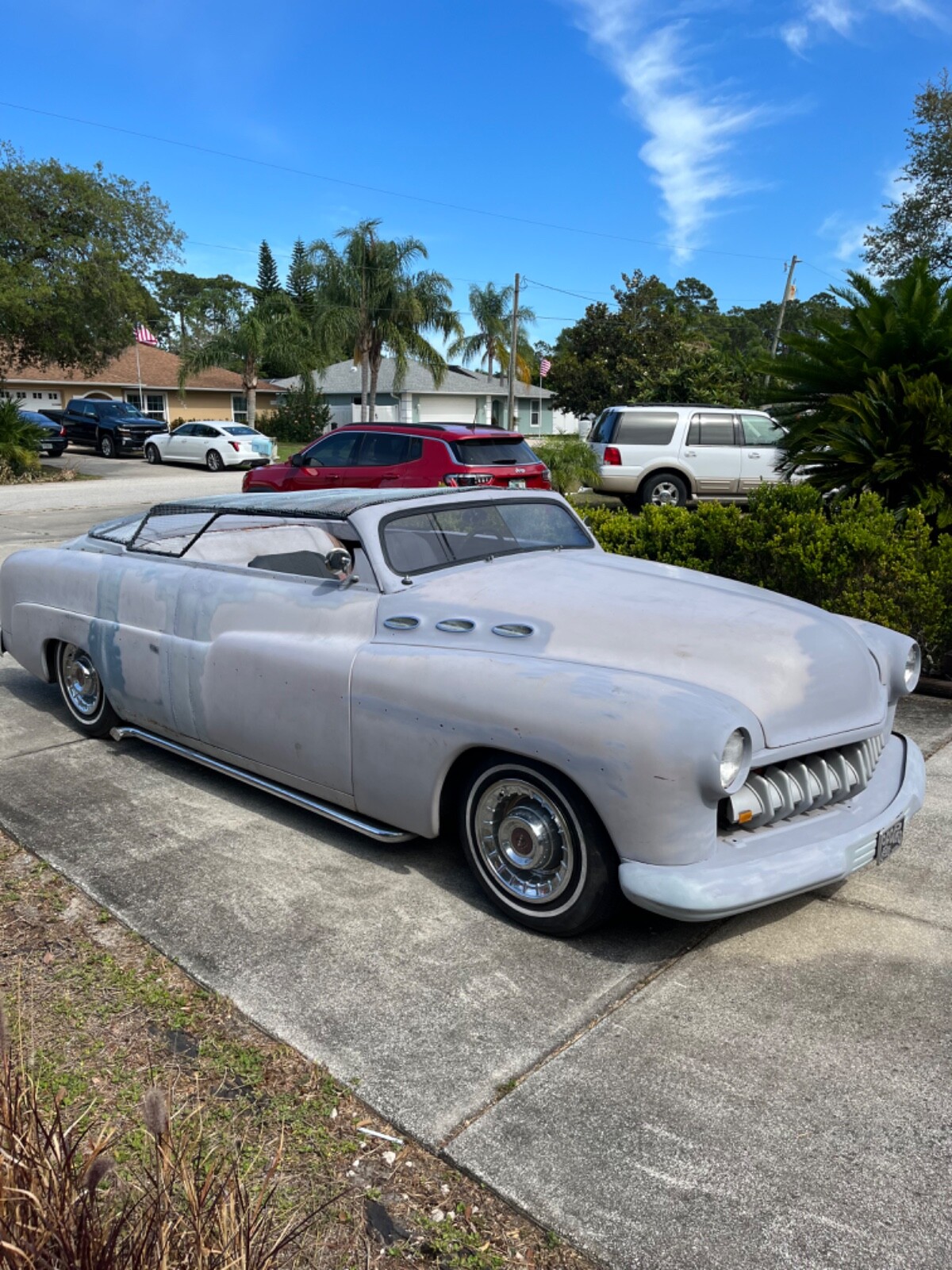 A cool 2dr conversion custom with Carson style top. Ford 351m motor c6 trans, PS PB tilt wheel. Late 10 bolt rear. Runs and drives. Solid body only rust in 2 spots in sill plate area, almost completly rust free. Don’t know exact motor or trans condition it had sat a long time. A good start on a running and driving 51 merk. I have only driven it locally so far. It is registered and insured and has original vin and matching title in my name.