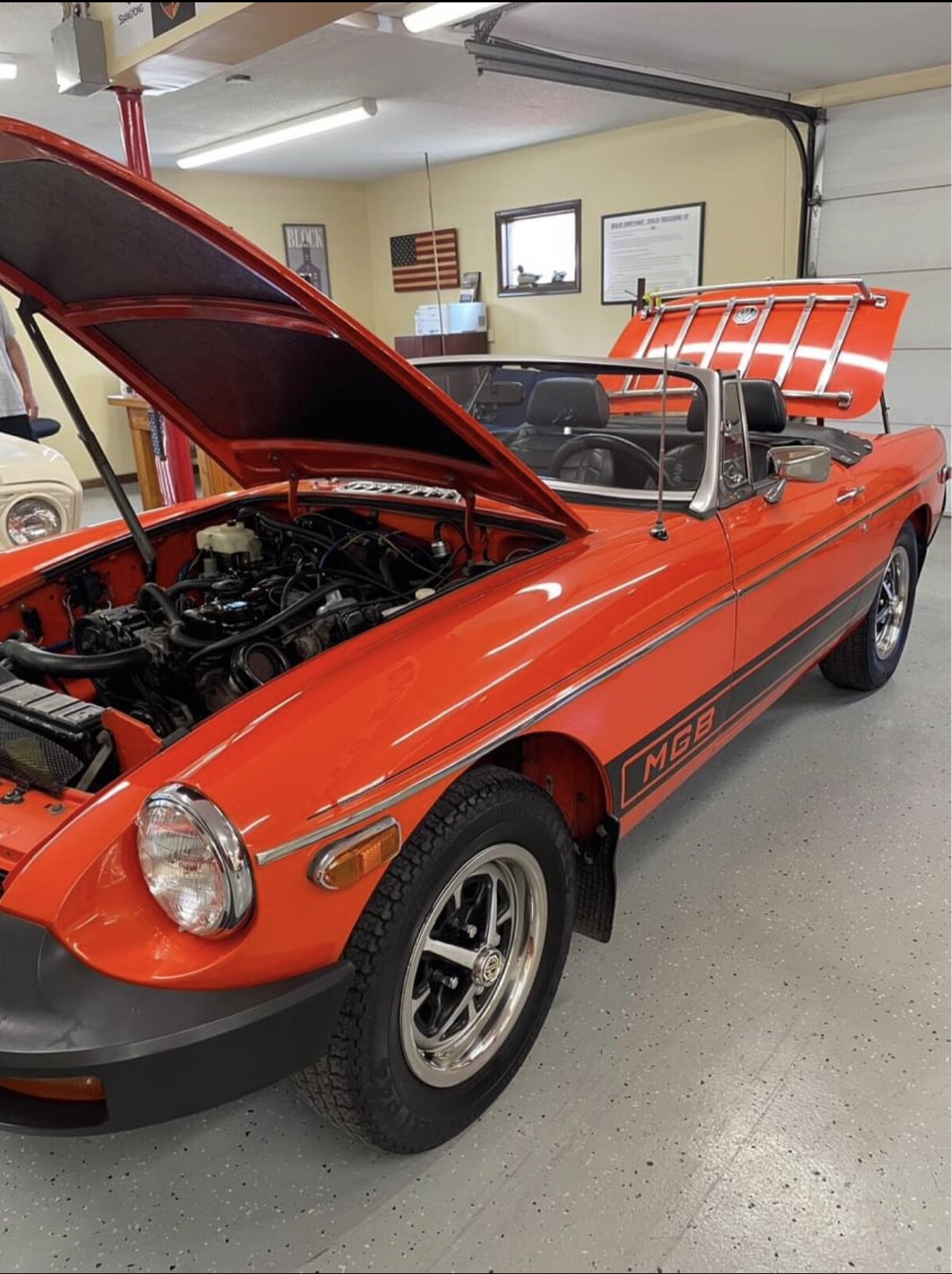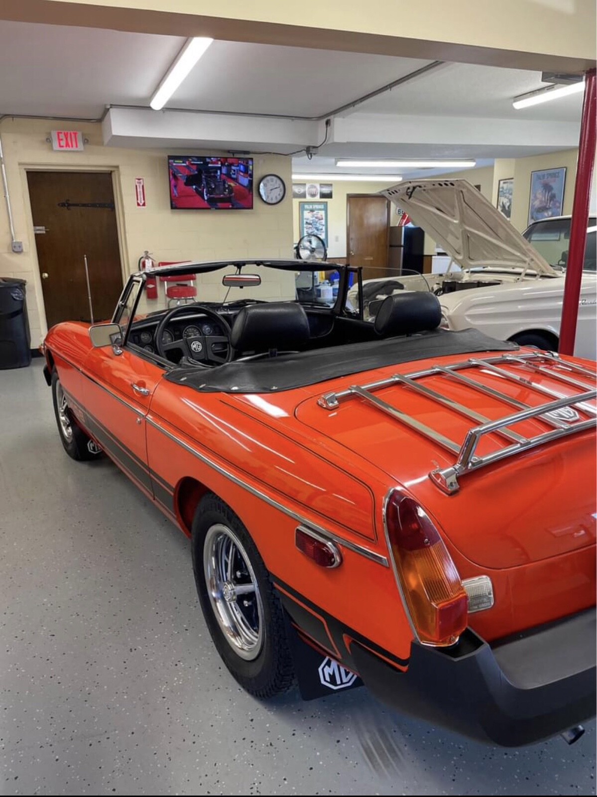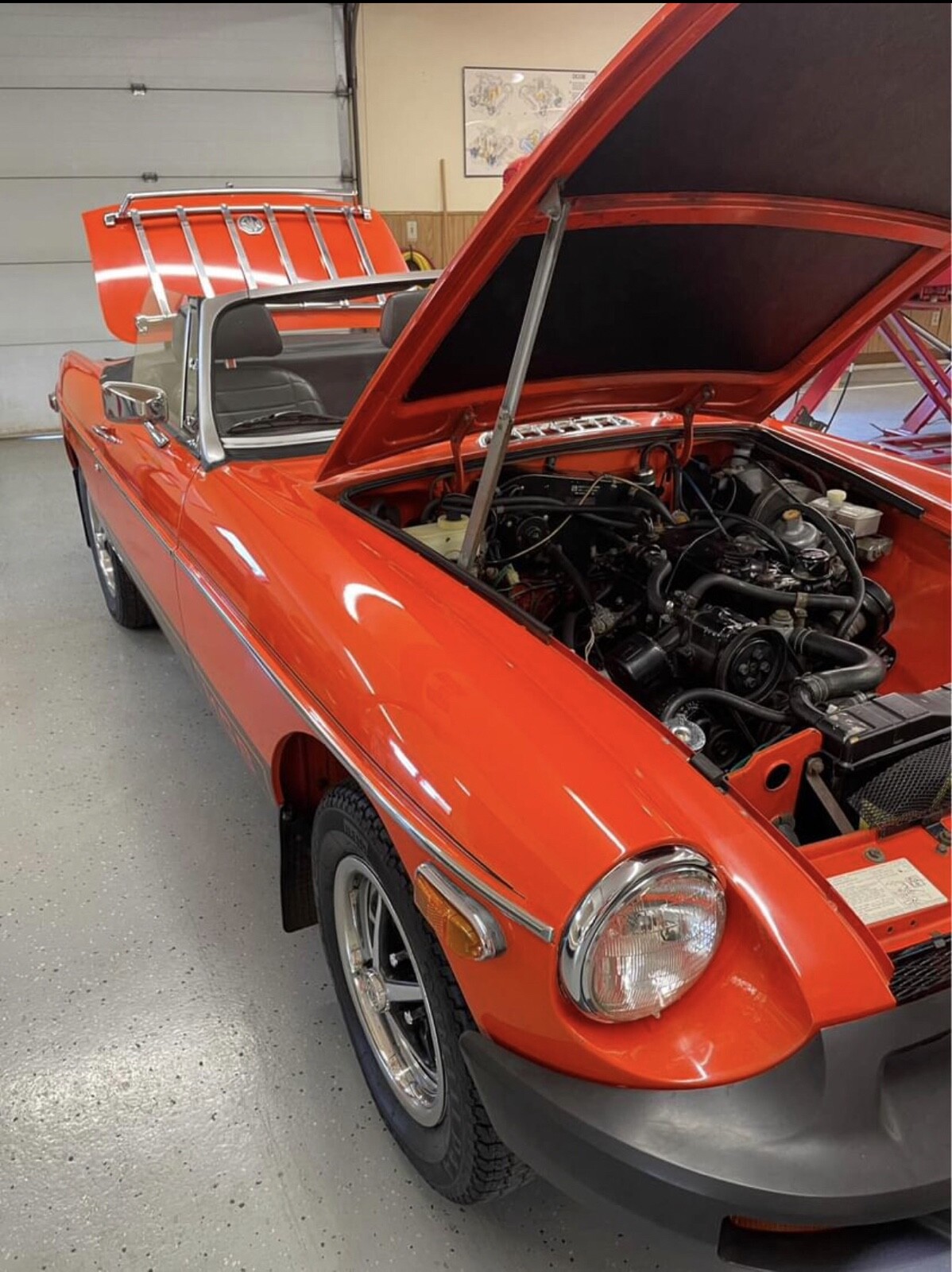 Original, unrestored, no rust—perfect floors, MGB. Very strong running, smooth shifting car. Pirelli P44 radial tires: P185 70R14. Complete spare with original jack. Nice fold up top with cover. Tonneau cover also included. Car is ready to enjoy as everything is working correctly and fully serviced. Fun car to drive and beautiful color! (Vermillion orange). Actually a perfect California car considering this is an original '78 EPA. Not many are rust free and not modified.