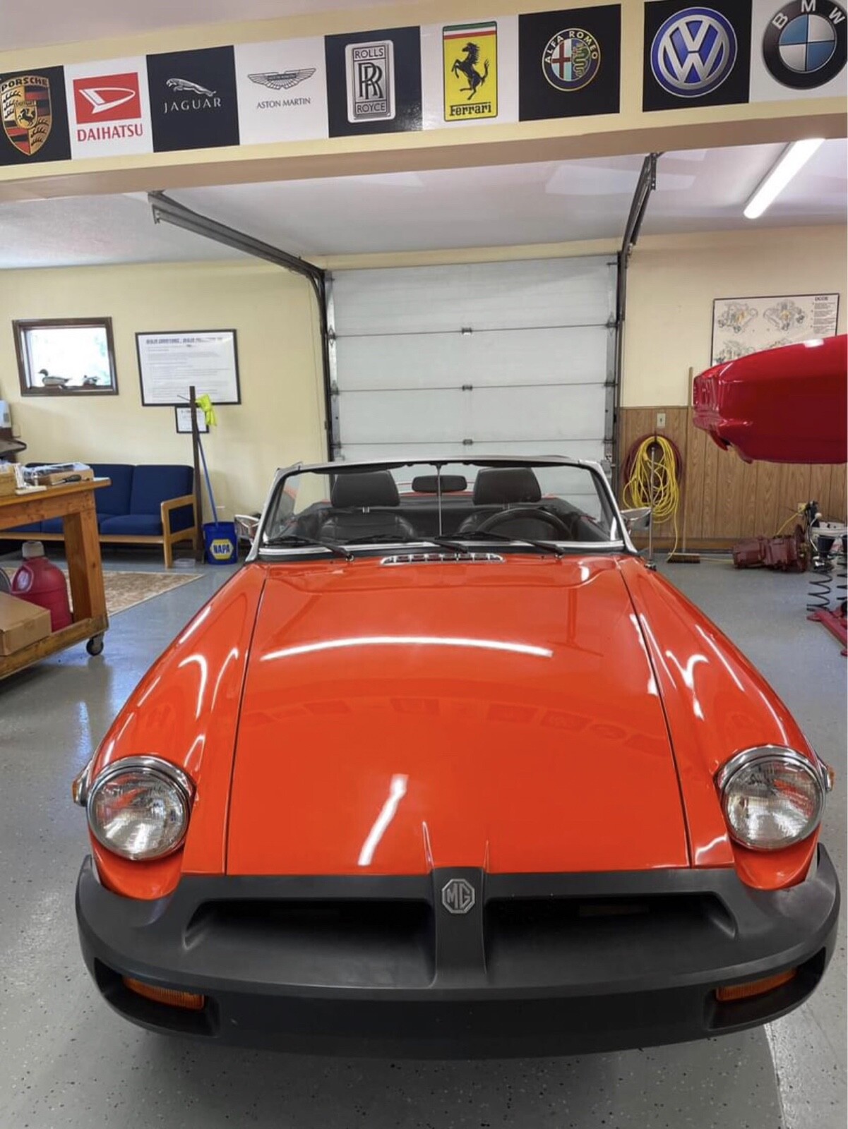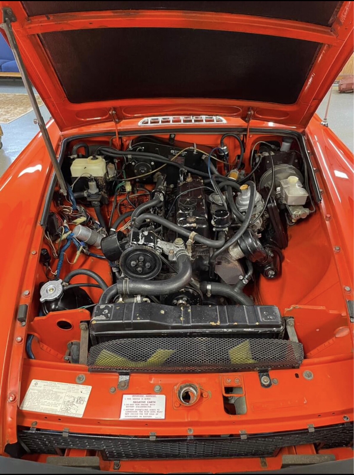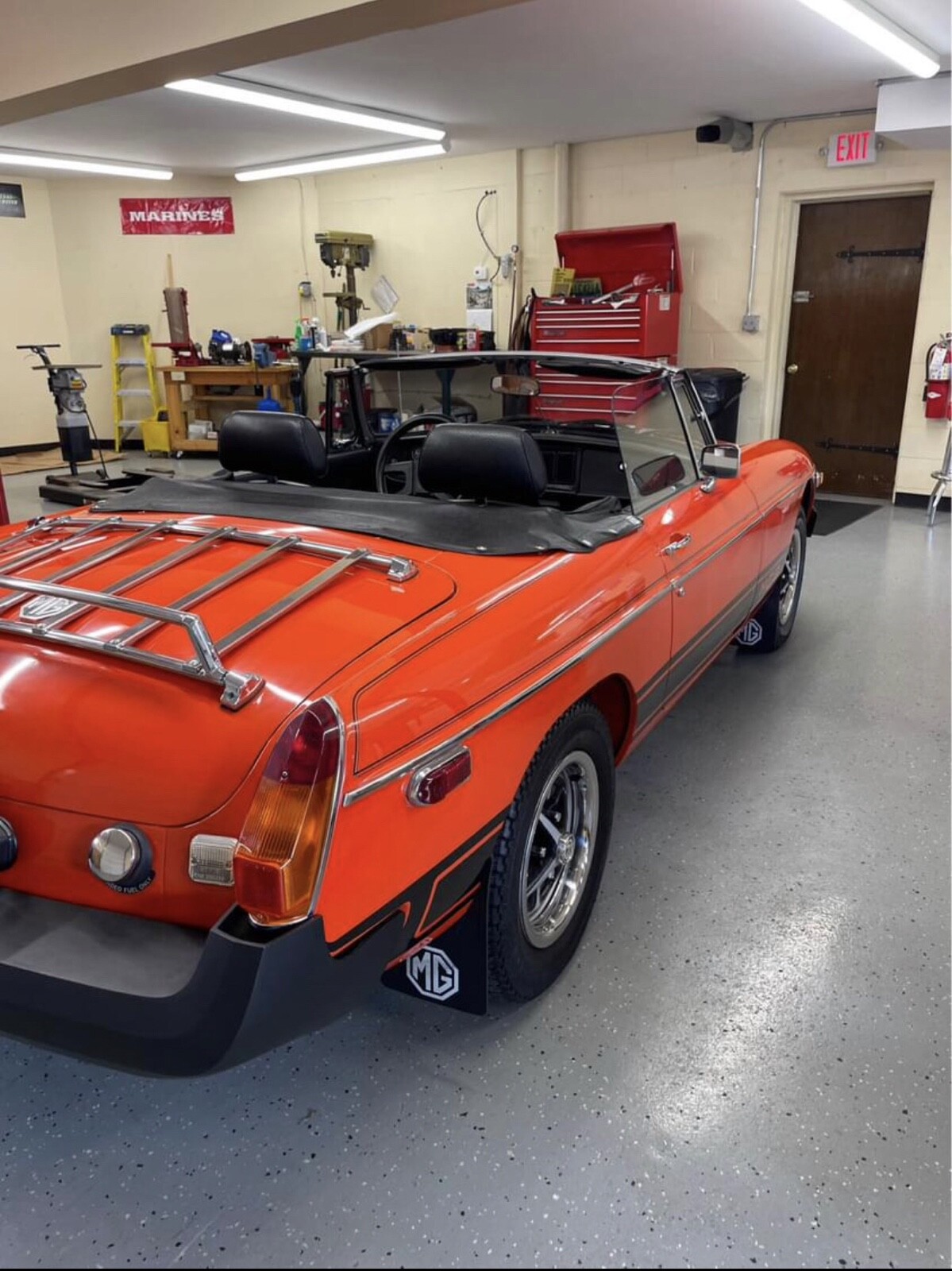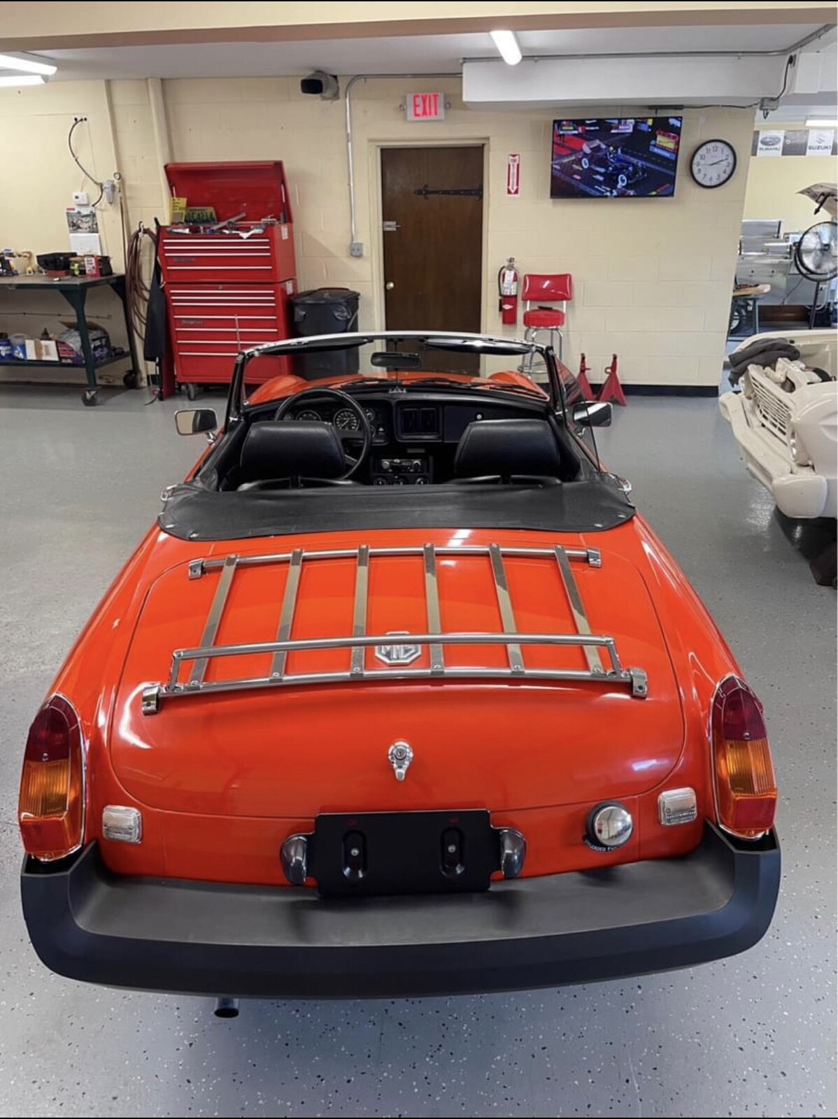 Original, unrestored, no rust—perfect floors, MGB. Very strong running, smooth shifting car. Pirelli P44 radial tires: P185 70R14. Complete spare with original jack. Nice fold up top with cover. Tonneau cover also included. Car is ready to enjoy as everything is working correctly and fully serviced. Fun car to drive and beautiful color! (Vermillion orange). Actually a perfect California car considering this is an original '78 EPA. Not many are rust free and not modified.