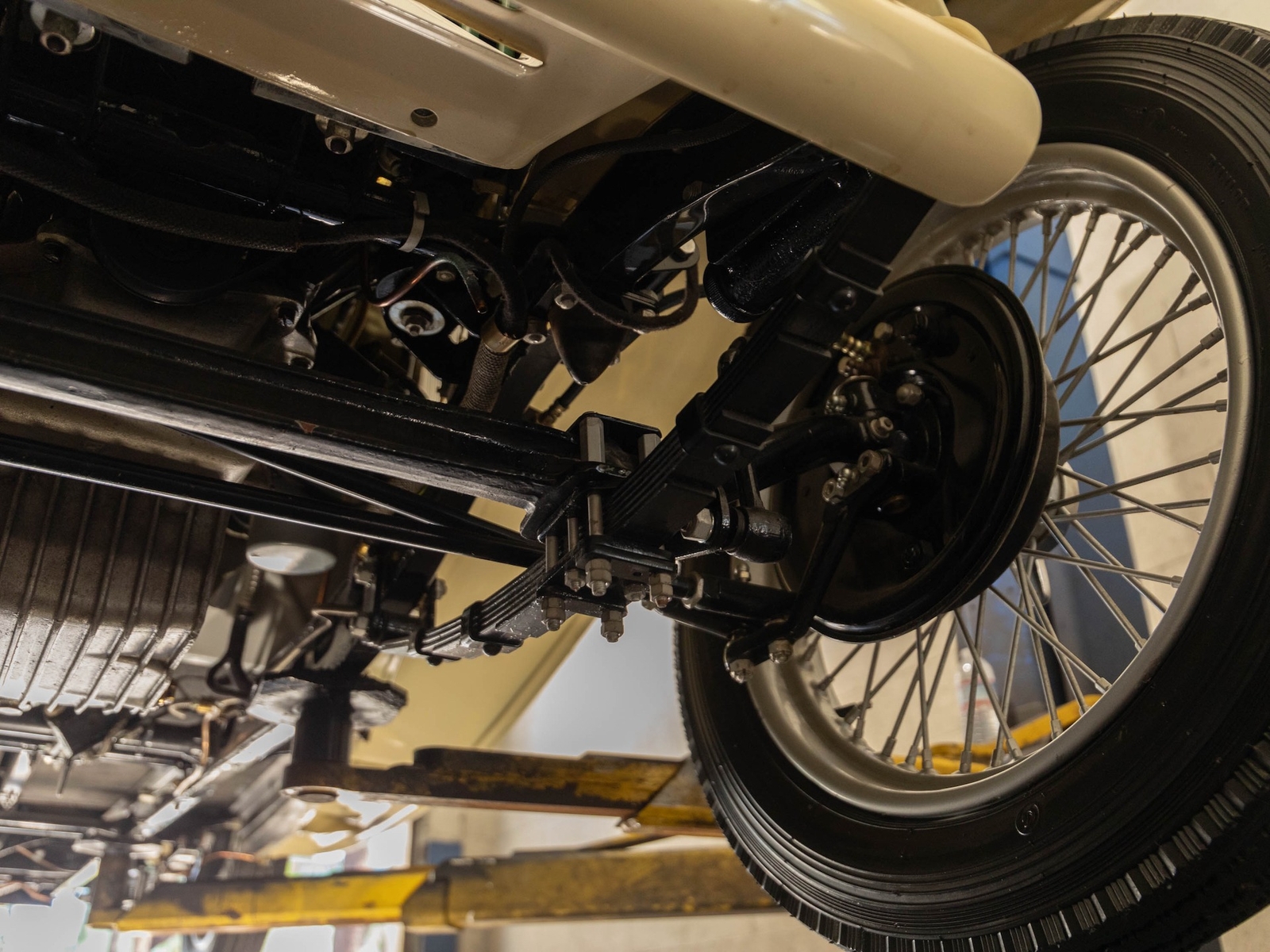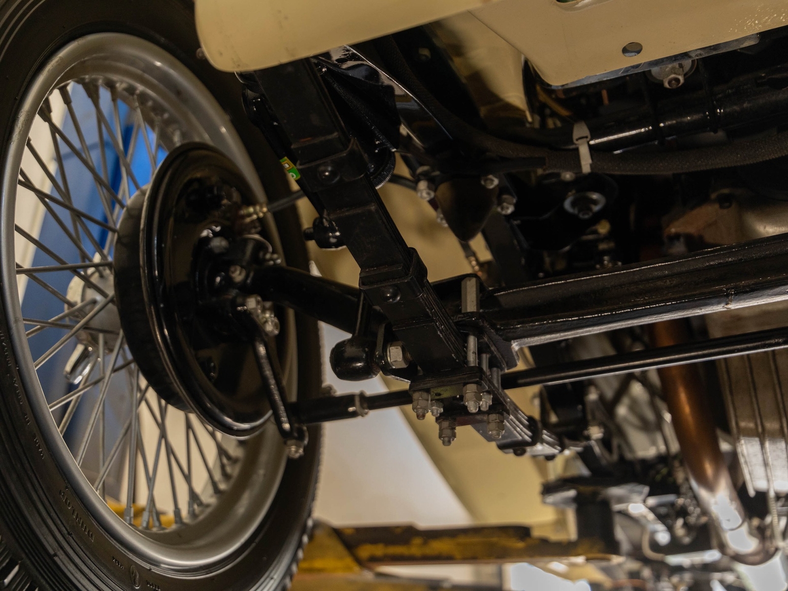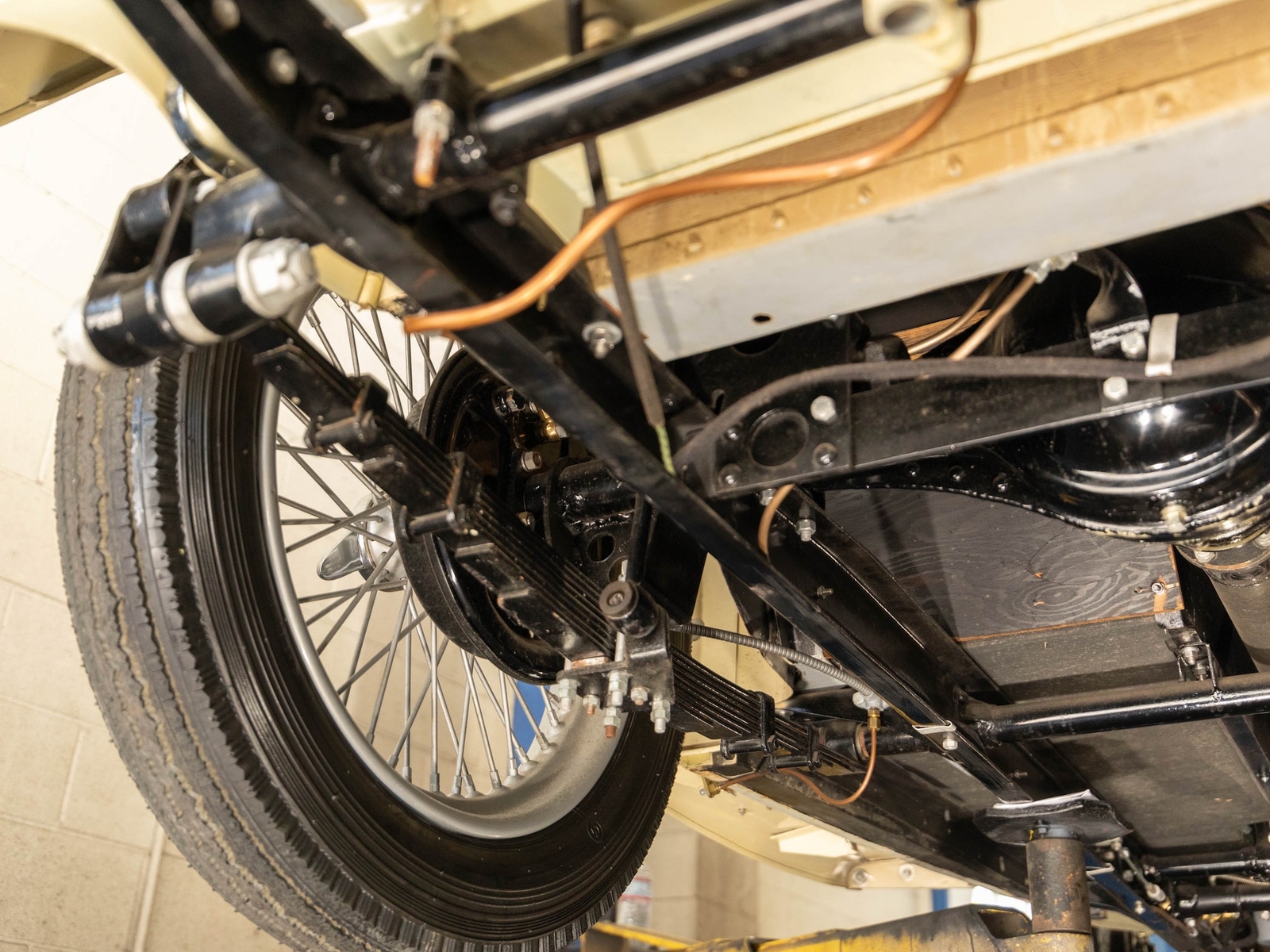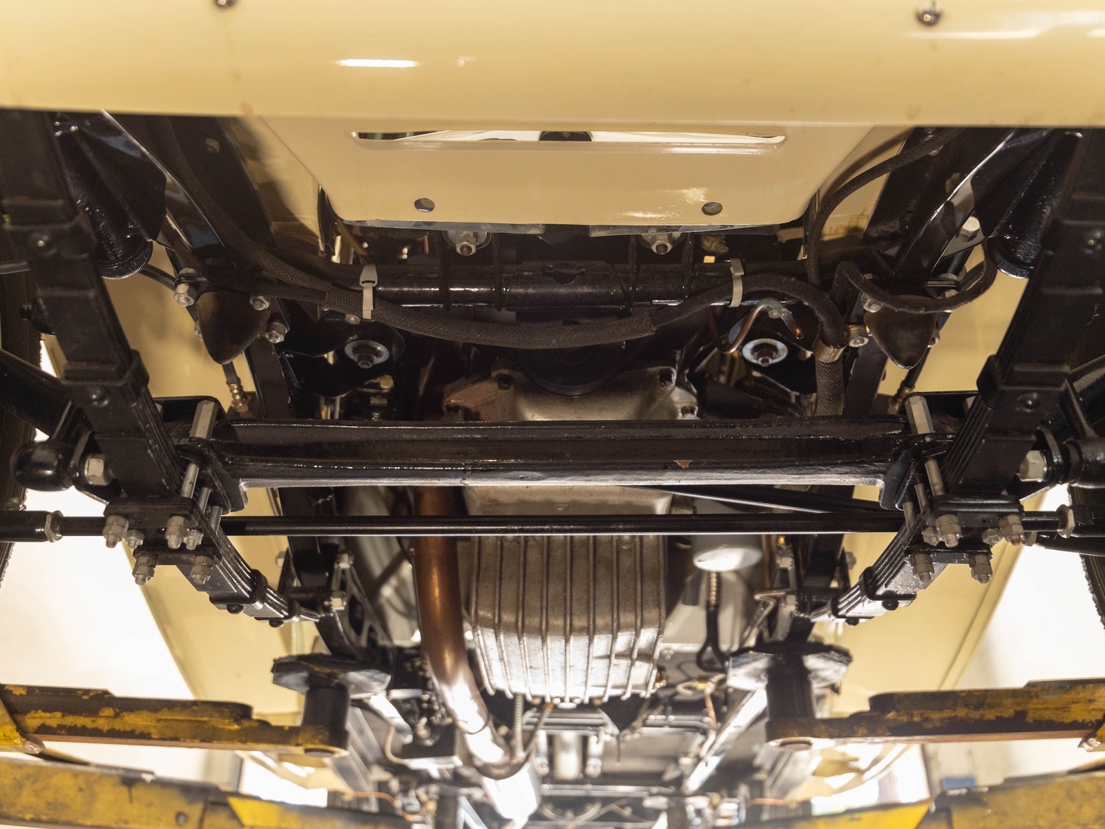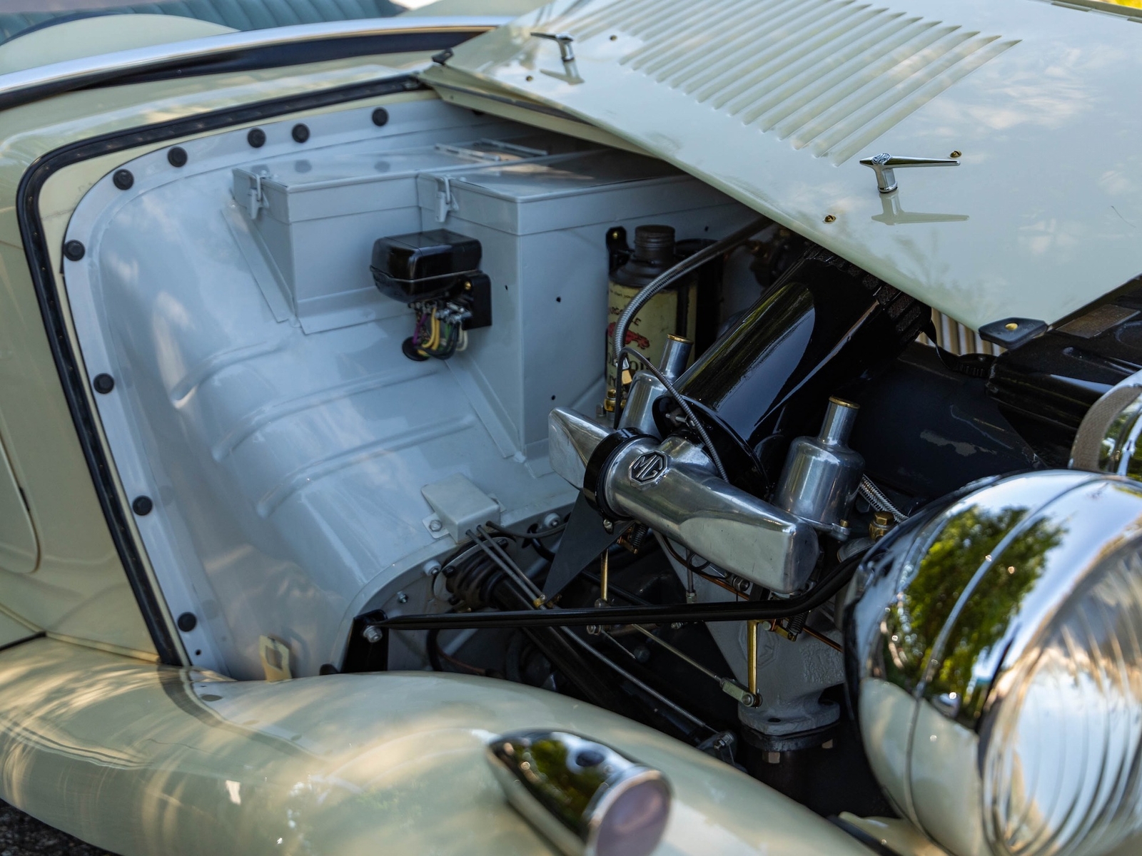 This 1948 MG TC, chassis TC4881, benefits handsomely from a well-maintained, nut-and-bolt restoration. Featuring glossy 'Sequoia Cream' paint over supple 'Shires Green' upholstery, it retains its original XPAG 1,250 cc engine and correct mechanicals, plus excellent ash wooden body framing and a clean undercarriage. Period-correct accessories include proper Lucas lamps, signals and hardware, a matching canvas full cab and side curtains. In addition to an instruction manual, this high-quality TC is accompanied by correct tools including a restored jack plus an auxiliary starting crank and Thor wheel hammer.