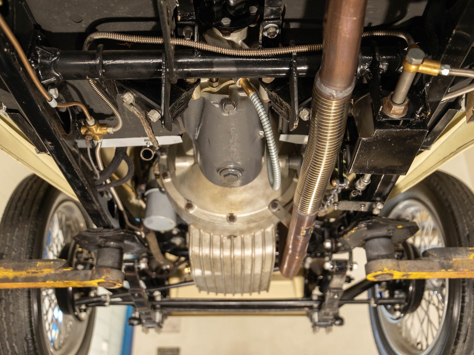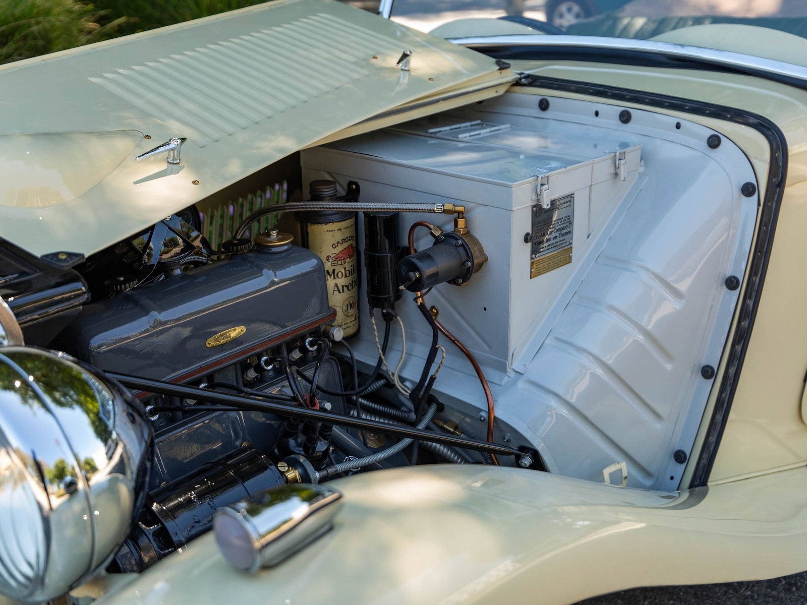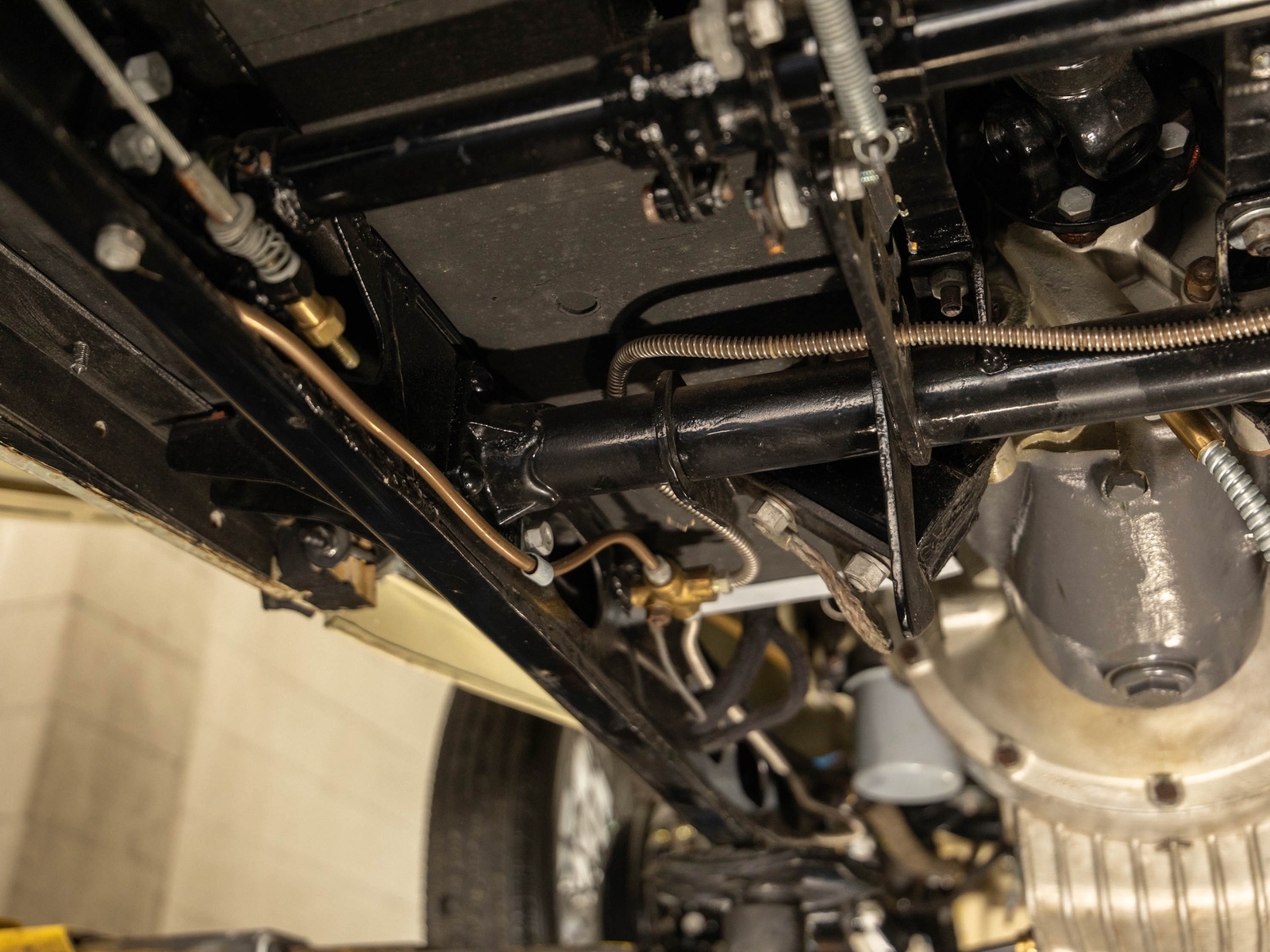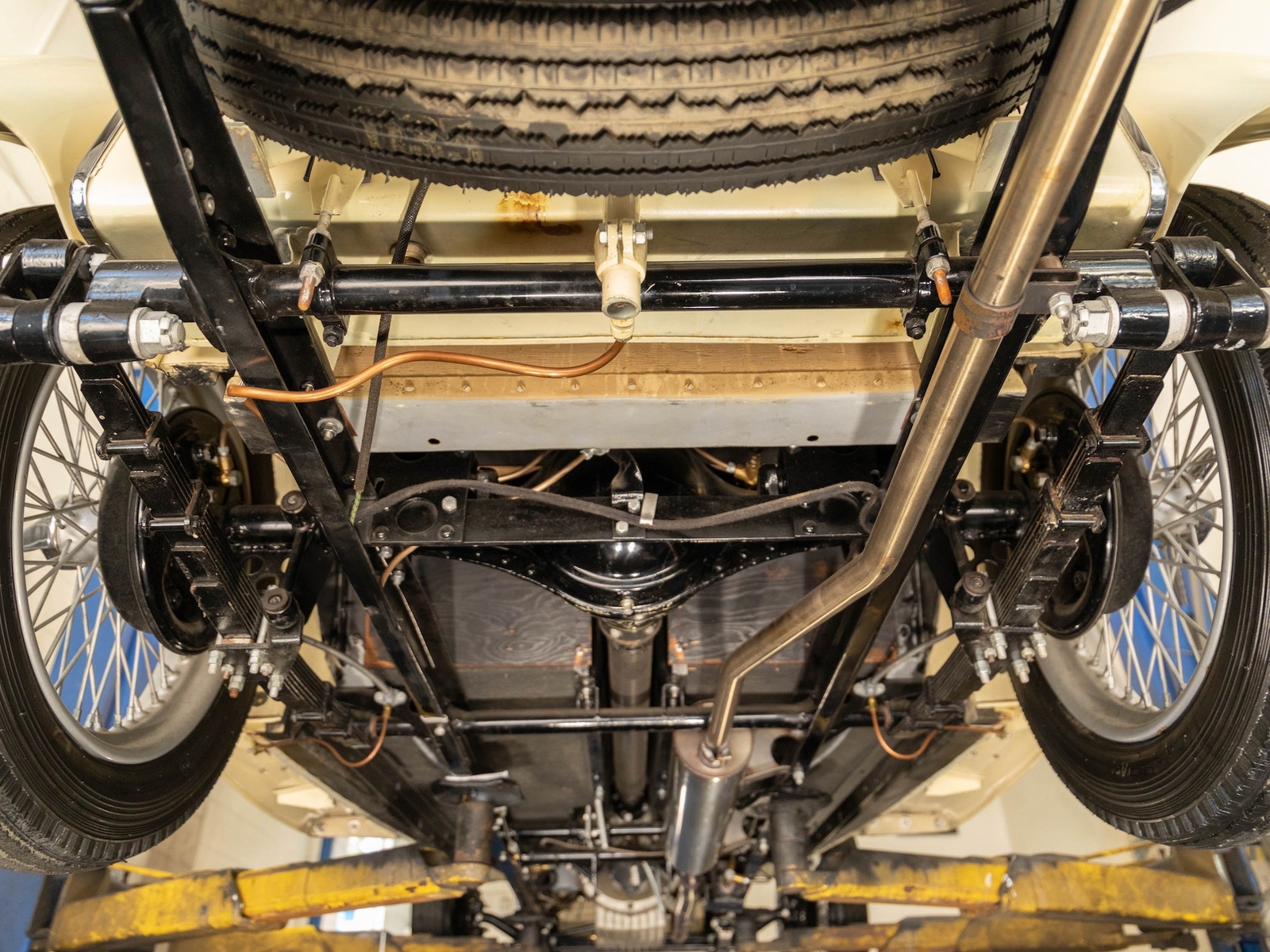 This 1948 MG TC, chassis TC4881, benefits handsomely from a well-maintained, nut-and-bolt restoration. Featuring glossy 'Sequoia Cream' paint over supple 'Shires Green' upholstery, it retains its original XPAG 1,250 cc engine and correct mechanicals, plus excellent ash wooden body framing and a clean undercarriage. Period-correct accessories include proper Lucas lamps, signals and hardware, a matching canvas full cab and side curtains. In addition to an instruction manual, this high-quality TC is accompanied by correct tools including a restored jack plus an auxiliary starting crank and Thor wheel hammer.