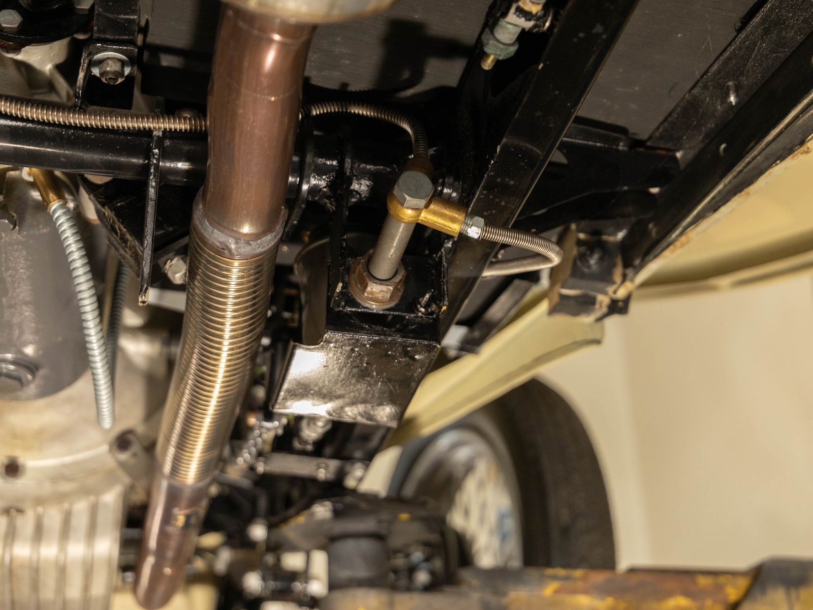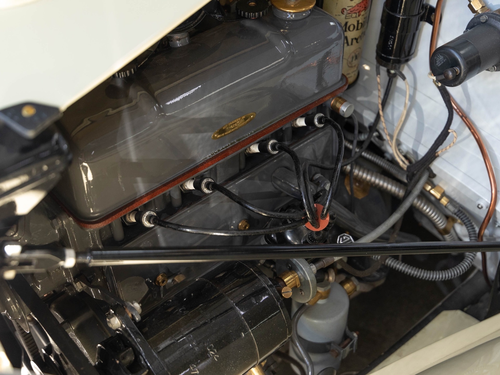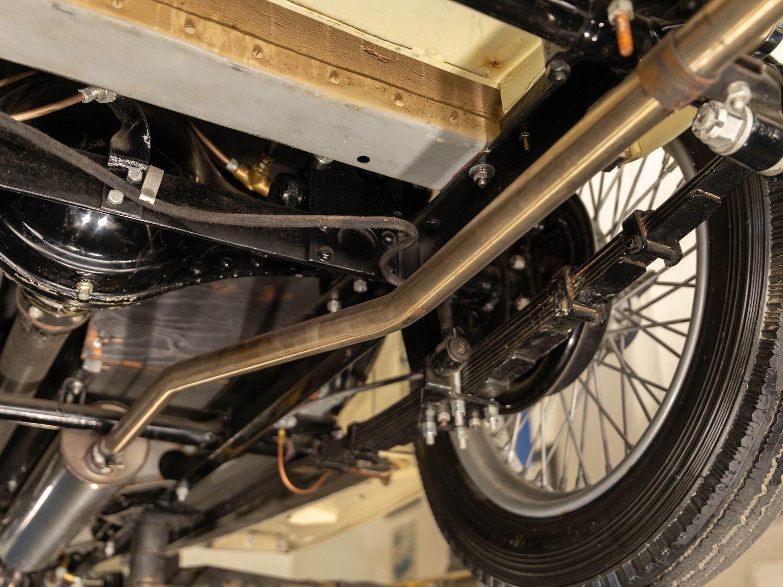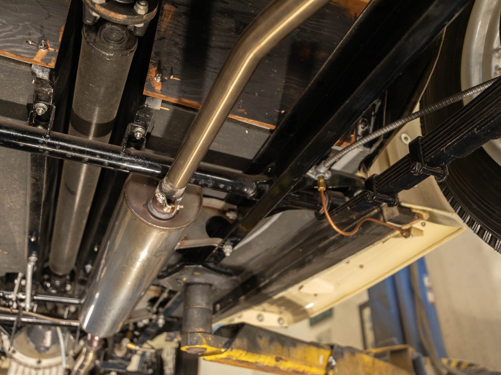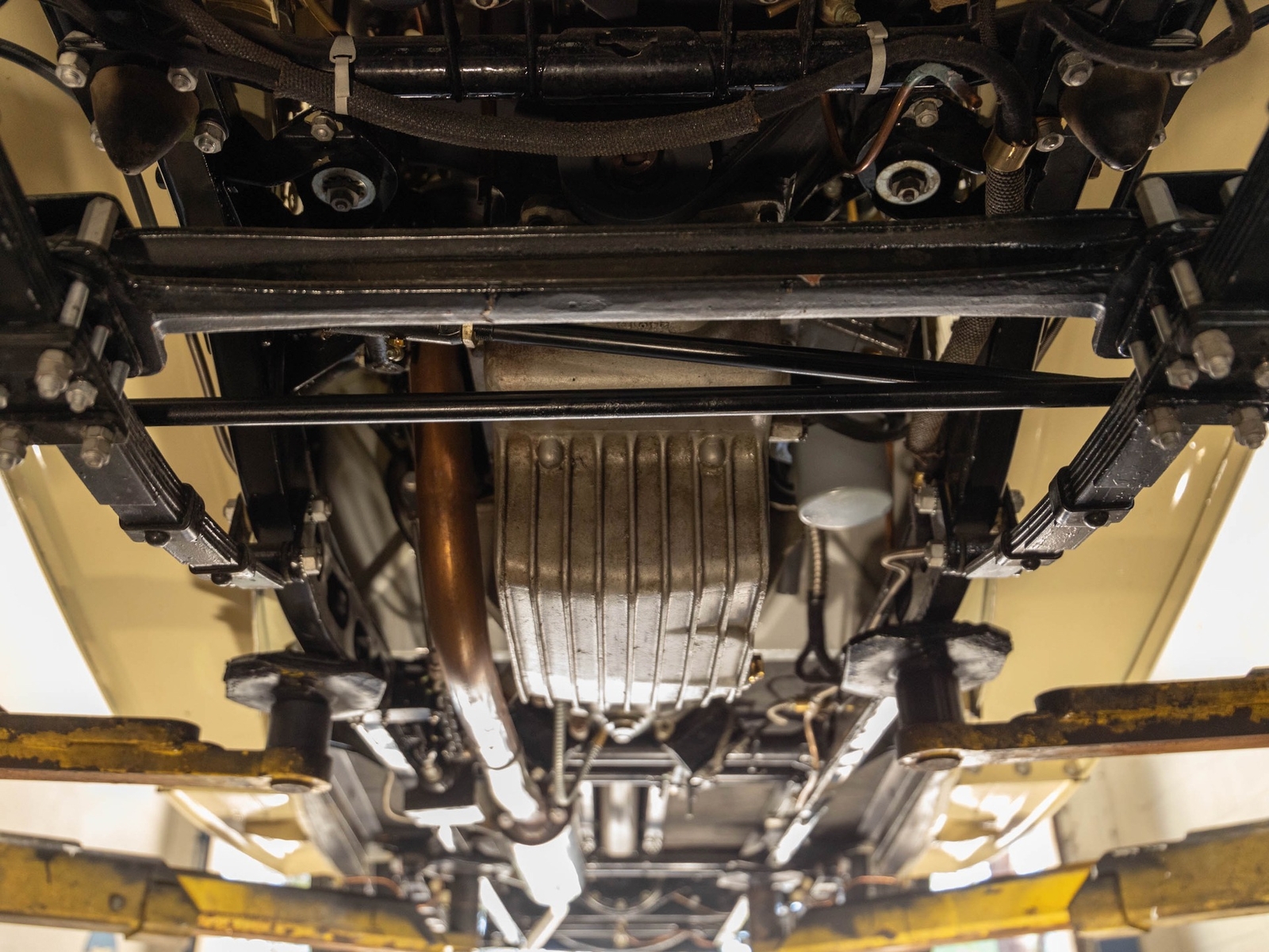 This 1948 MG TC, chassis TC4881, benefits handsomely from a well-maintained, nut-and-bolt restoration. Featuring glossy 'Sequoia Cream' paint over supple 'Shires Green' upholstery, it retains its original XPAG 1,250 cc engine and correct mechanicals, plus excellent ash wooden body framing and a clean undercarriage. Period-correct accessories include proper Lucas lamps, signals and hardware, a matching canvas full cab and side curtains. In addition to an instruction manual, this high-quality TC is accompanied by correct tools including a restored jack plus an auxiliary starting crank and Thor wheel hammer.