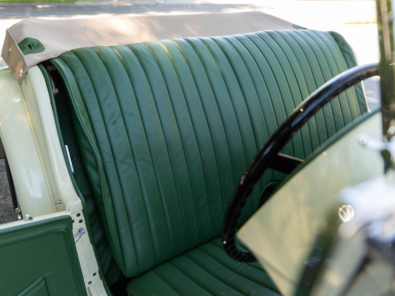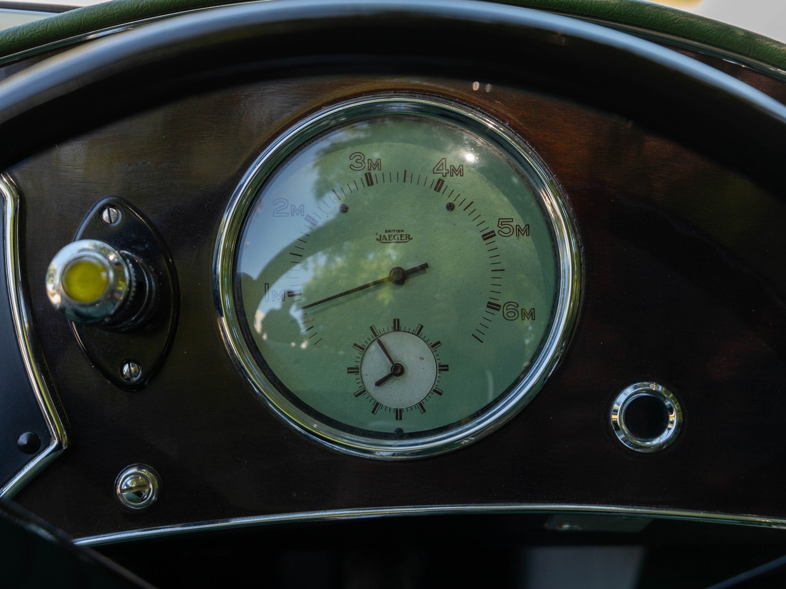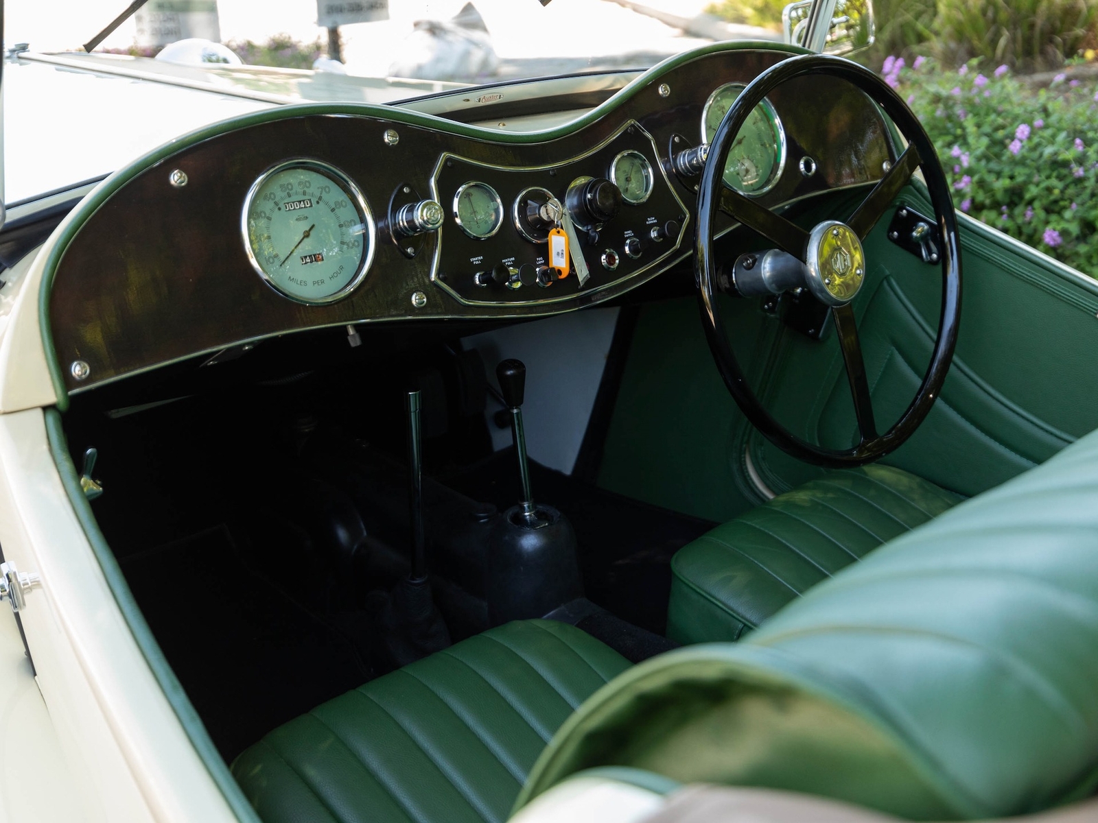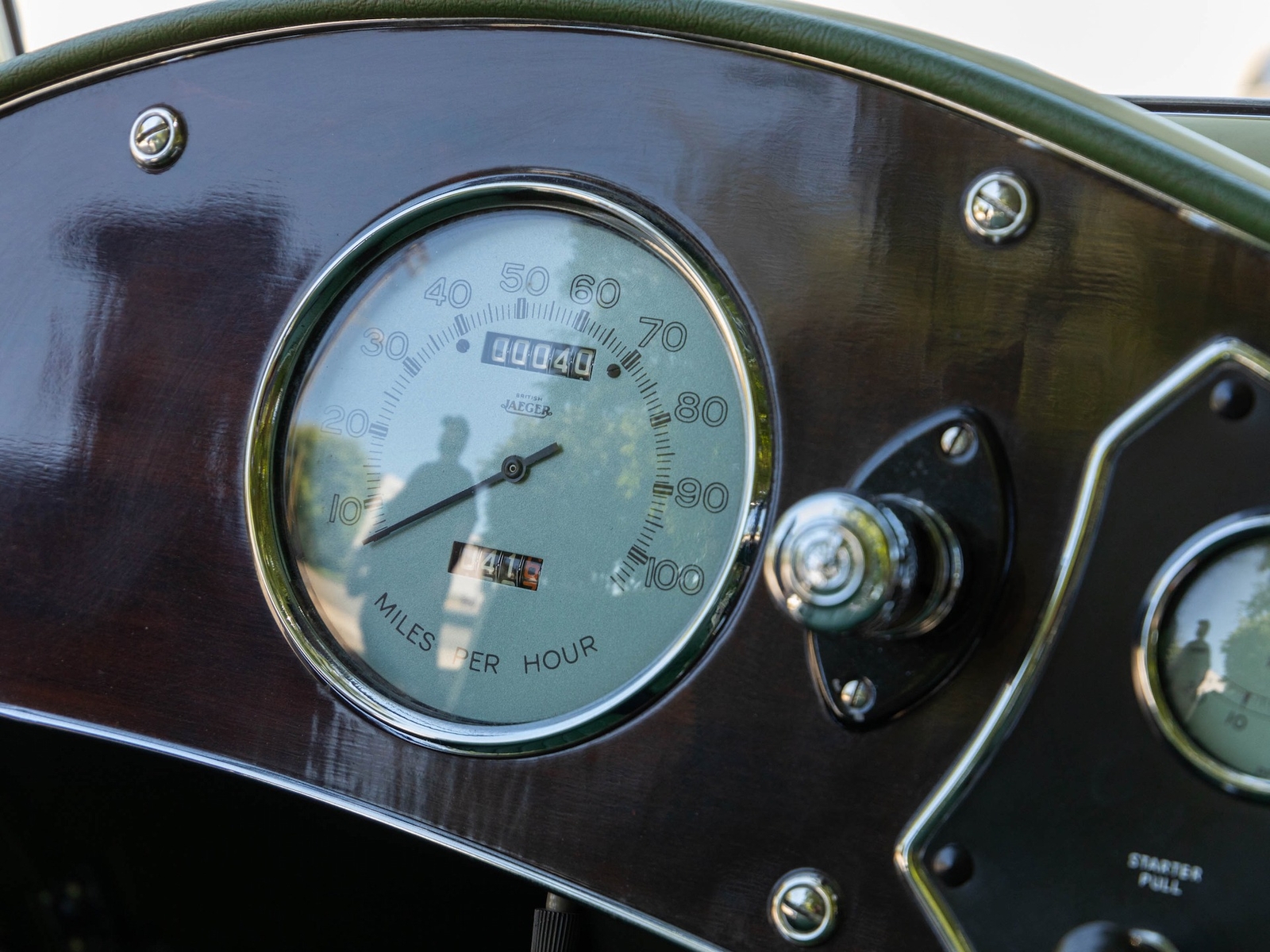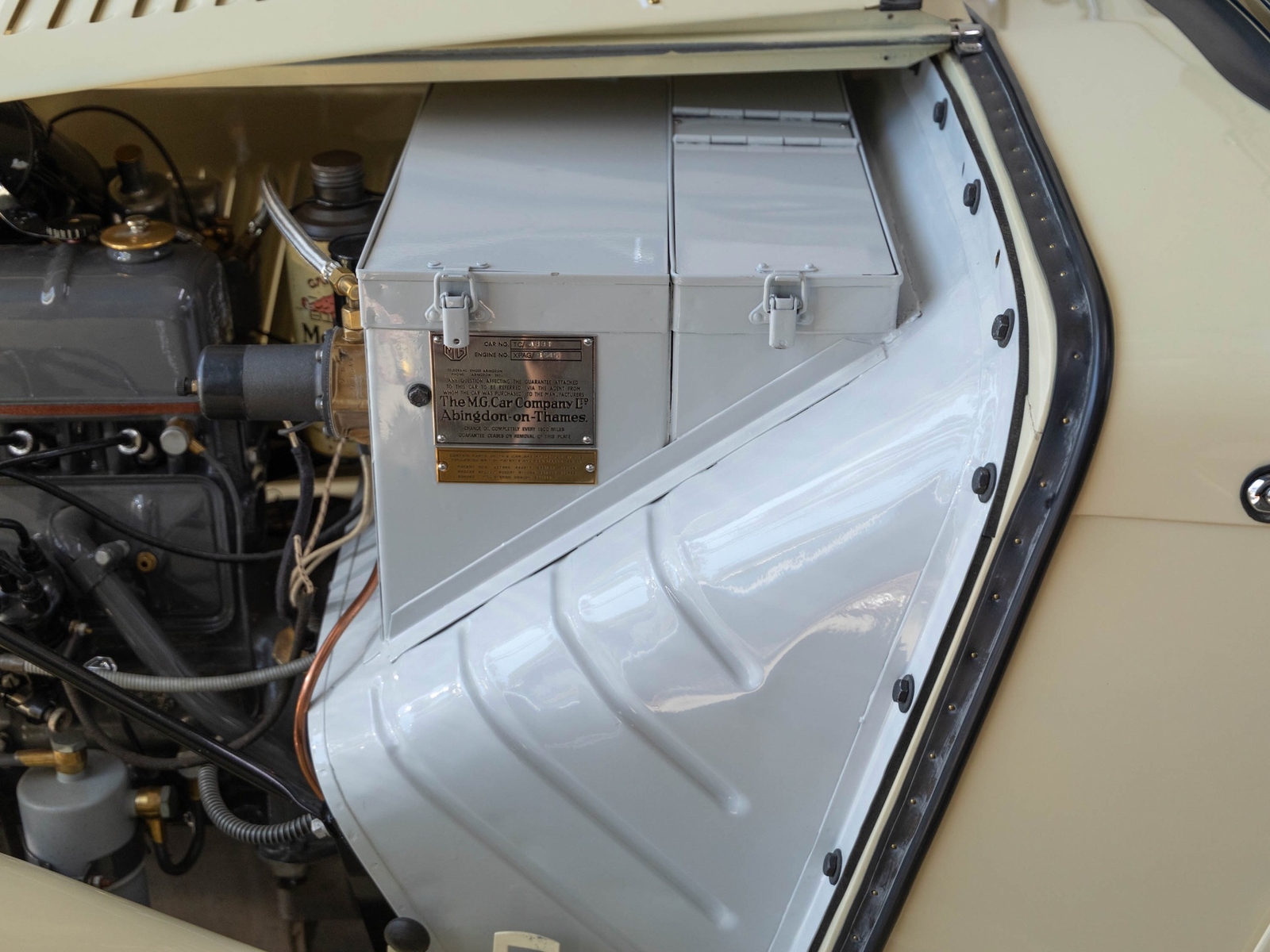 The offered TC looks every bit the British sports car that it should and has clearly had the benefit of a considerable no expense spared refurbishment both prior to and within the previous ownership. The extraordinarily striking and lesser seen hue of 'Sequoia Cream', which is both handsome and very appealing. Providing aesthetic contrast is a 'Shires Green' leather interior which has evidently been renewed to an equally high standard, and the large wire wheels are finished in silver and shod with period style Blockley tires and the interior is completed with the plethora of chrome trim, from radiator to windshield and lamps, and dashboard instrumentation.