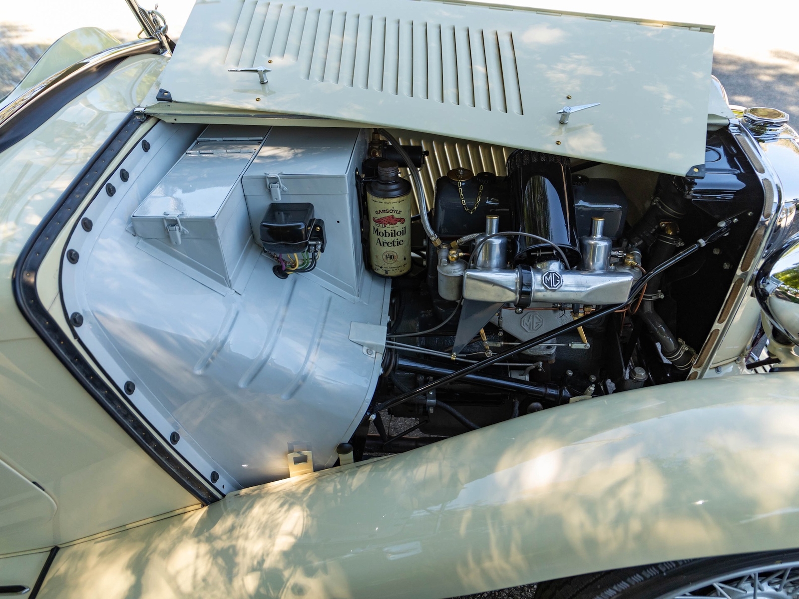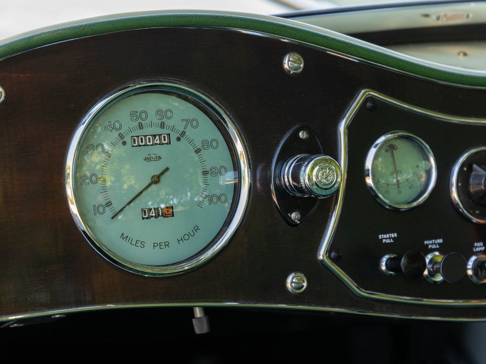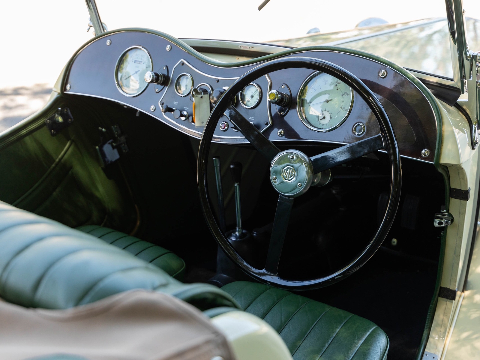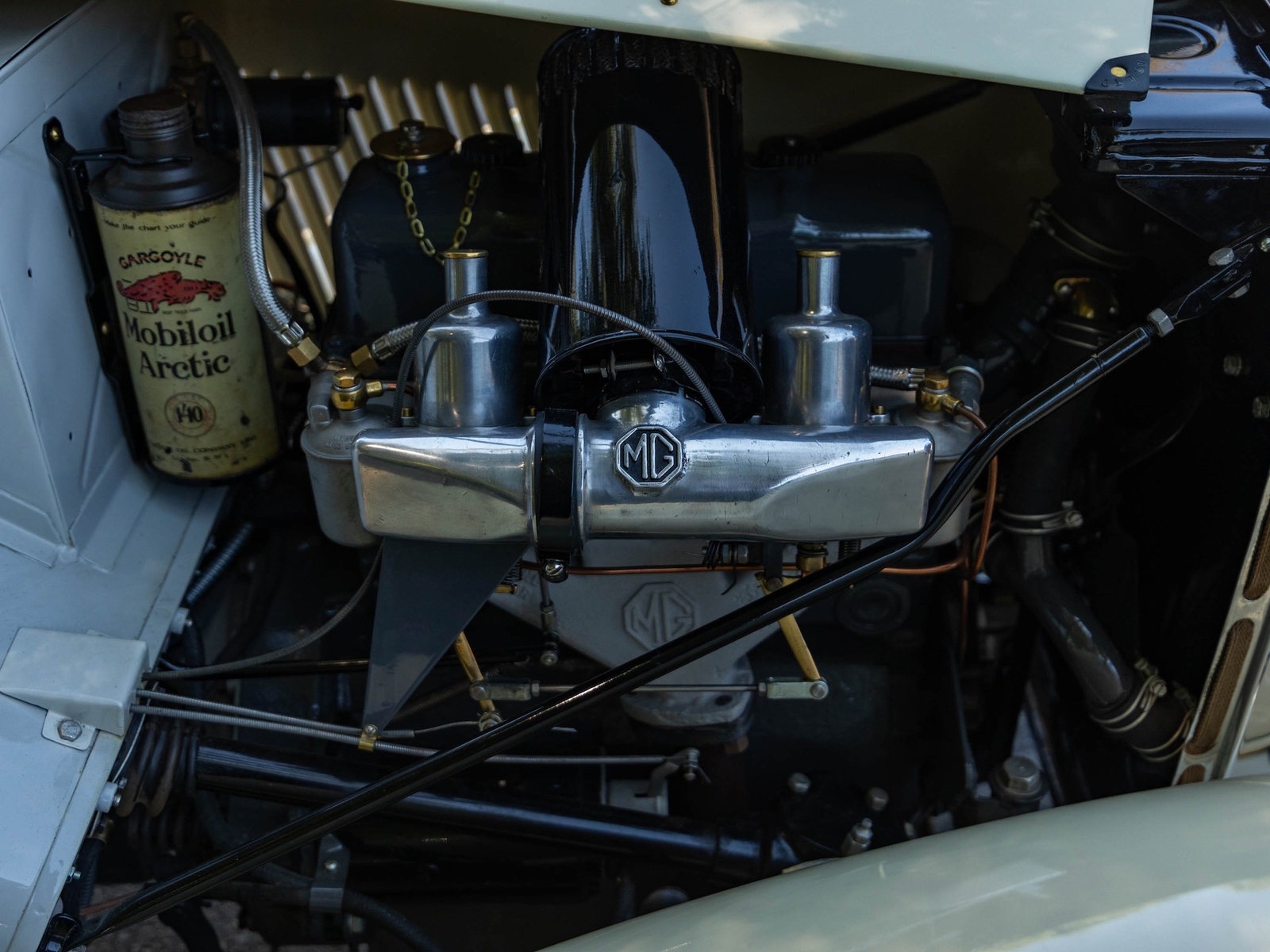 The offered TC looks every bit the British sports car that it should and has clearly had the benefit of a considerable no expense spared refurbishment both prior to and within the previous ownership. The extraordinarily striking and lesser seen hue of 'Sequoia Cream', which is both handsome and very appealing. Providing aesthetic contrast is a 'Shires Green' leather interior which has evidently been renewed to an equally high standard, and the large wire wheels are finished in silver and shod with period style Blockley tires and the interior is completed with the plethora of chrome trim, from radiator to windshield and lamps, and dashboard instrumentation.