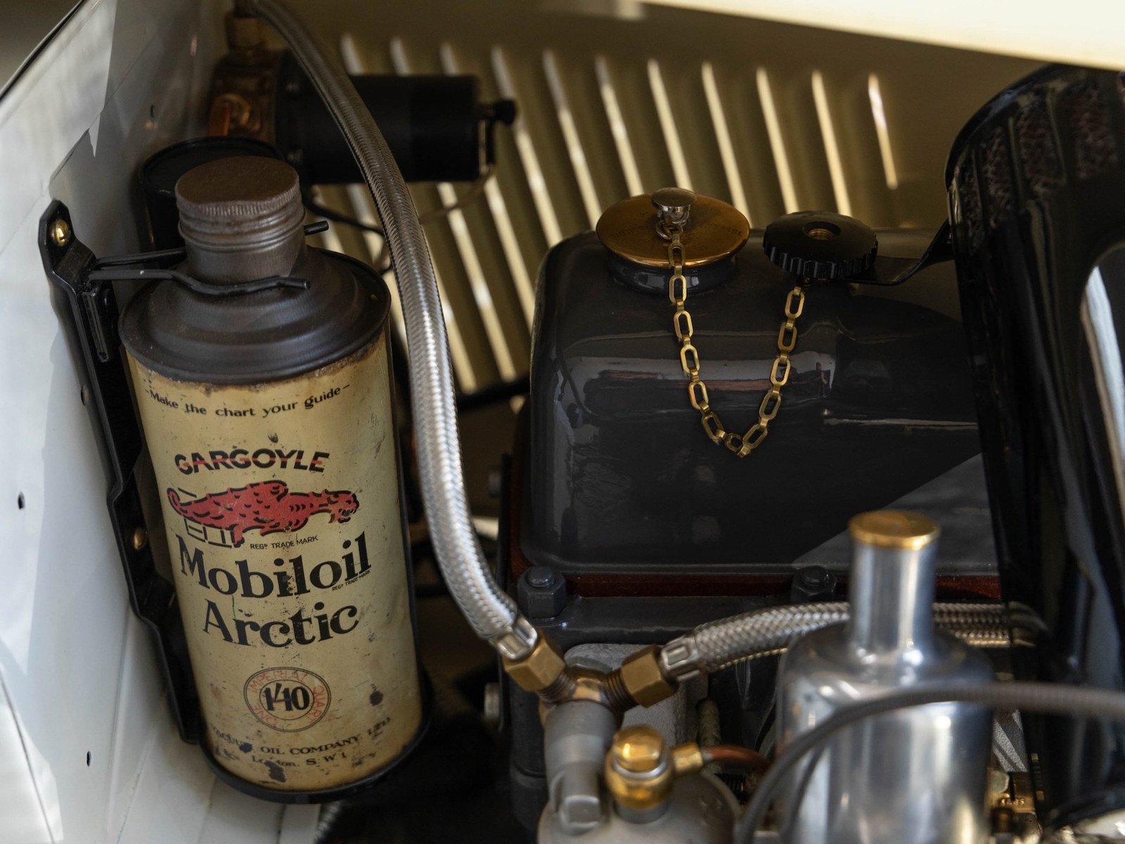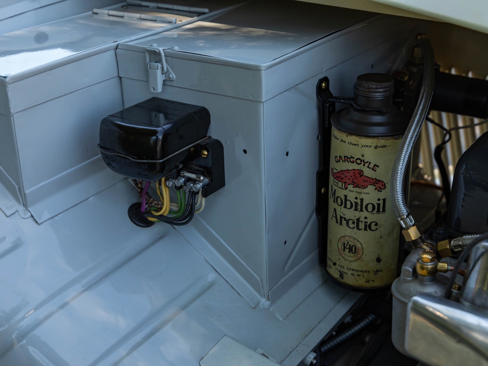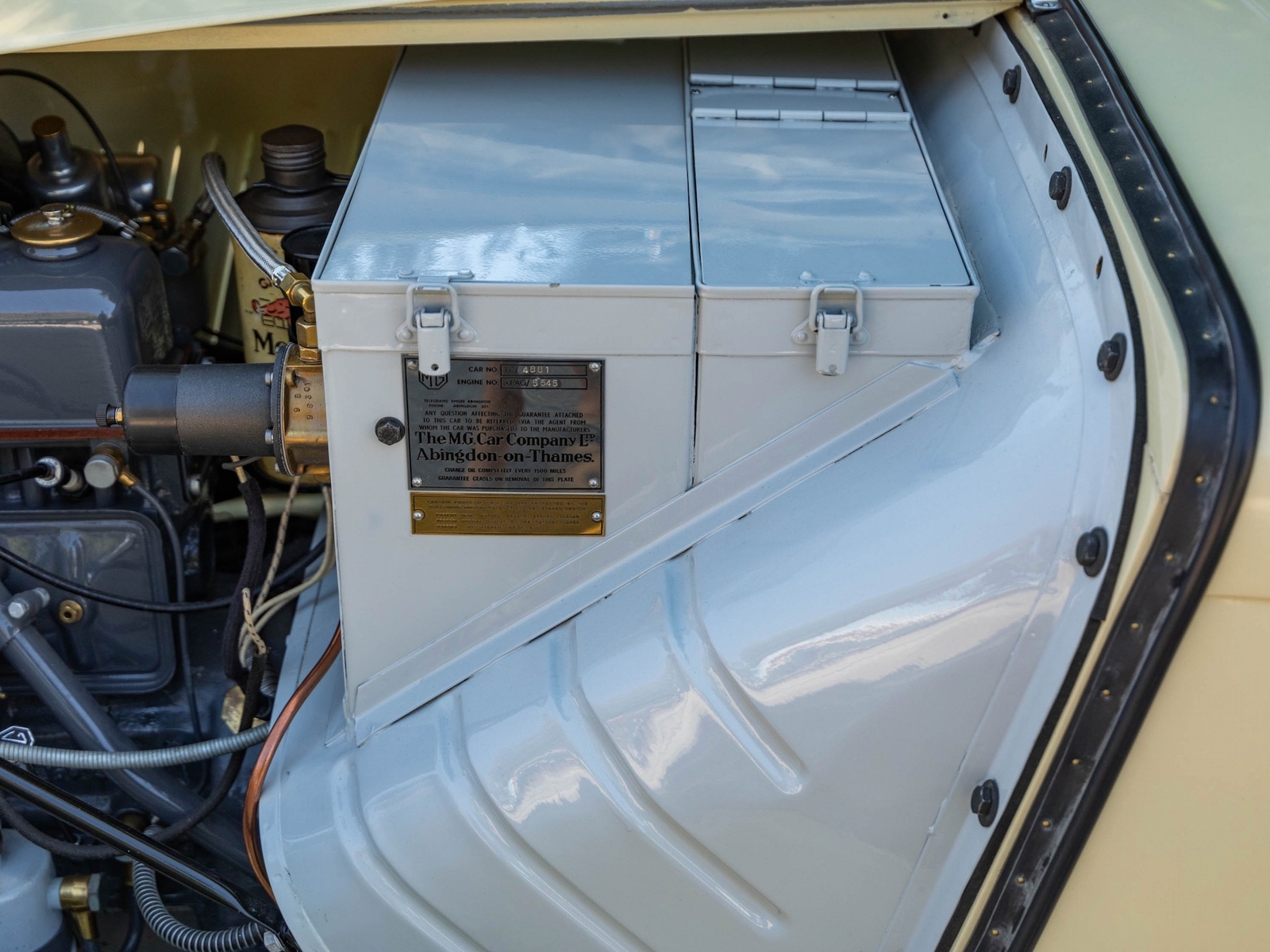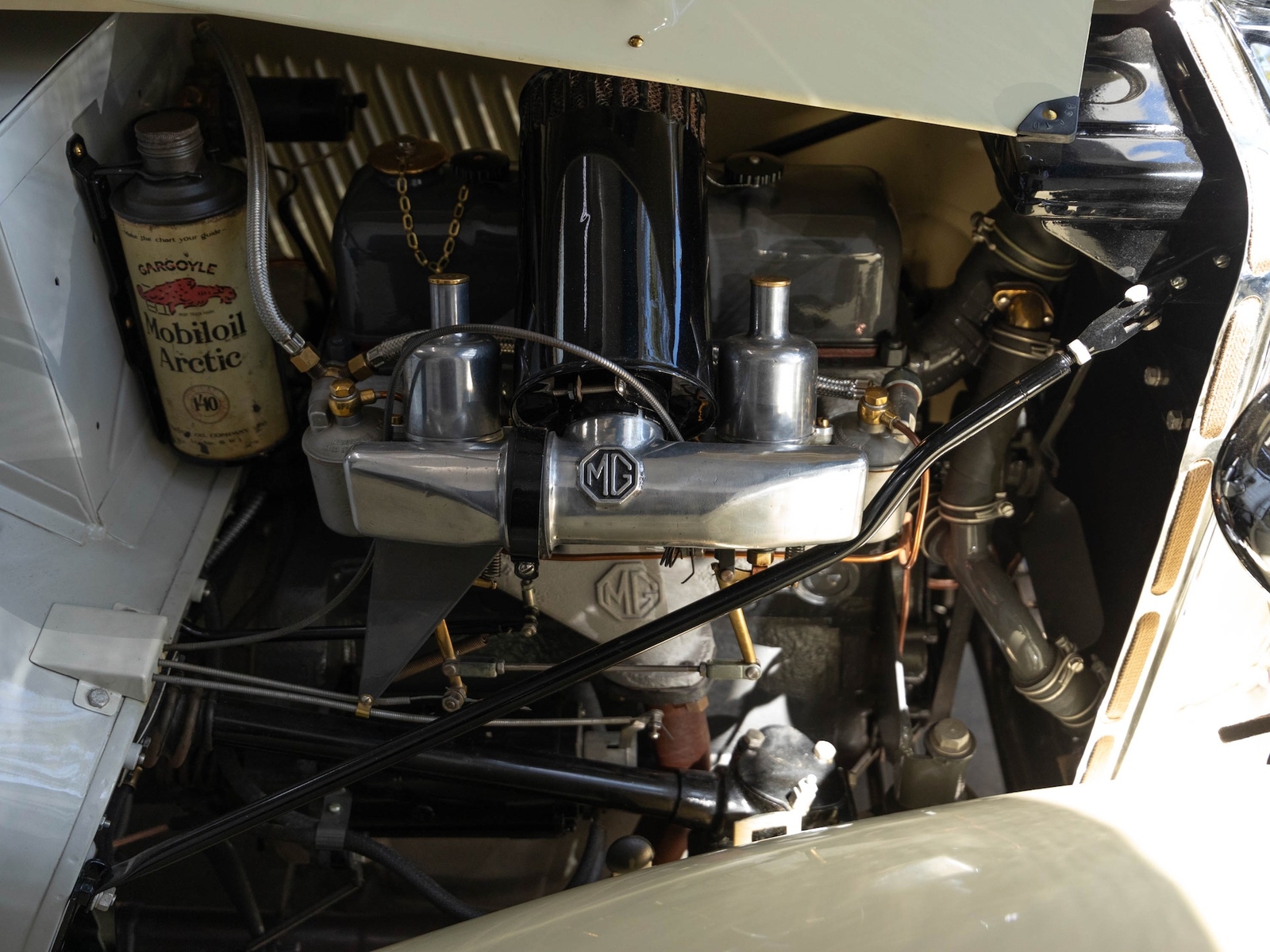 The offered TC looks every bit the British sports car that it should and has clearly had the benefit of a considerable no expense spared refurbishment both prior to and within the previous ownership. The extraordinarily striking and lesser seen hue of 'Sequoia Cream', which is both handsome and very appealing. Providing aesthetic contrast is a 'Shires Green' leather interior which has evidently been renewed to an equally high standard, and the large wire wheels are finished in silver and shod with period style Blockley tires and the interior is completed with the plethora of chrome trim, from radiator to windshield and lamps, and dashboard instrumentation.