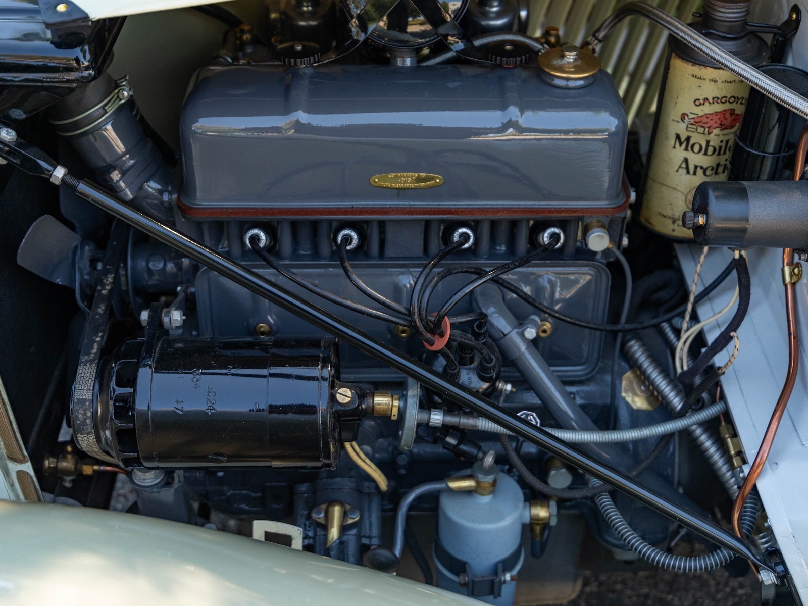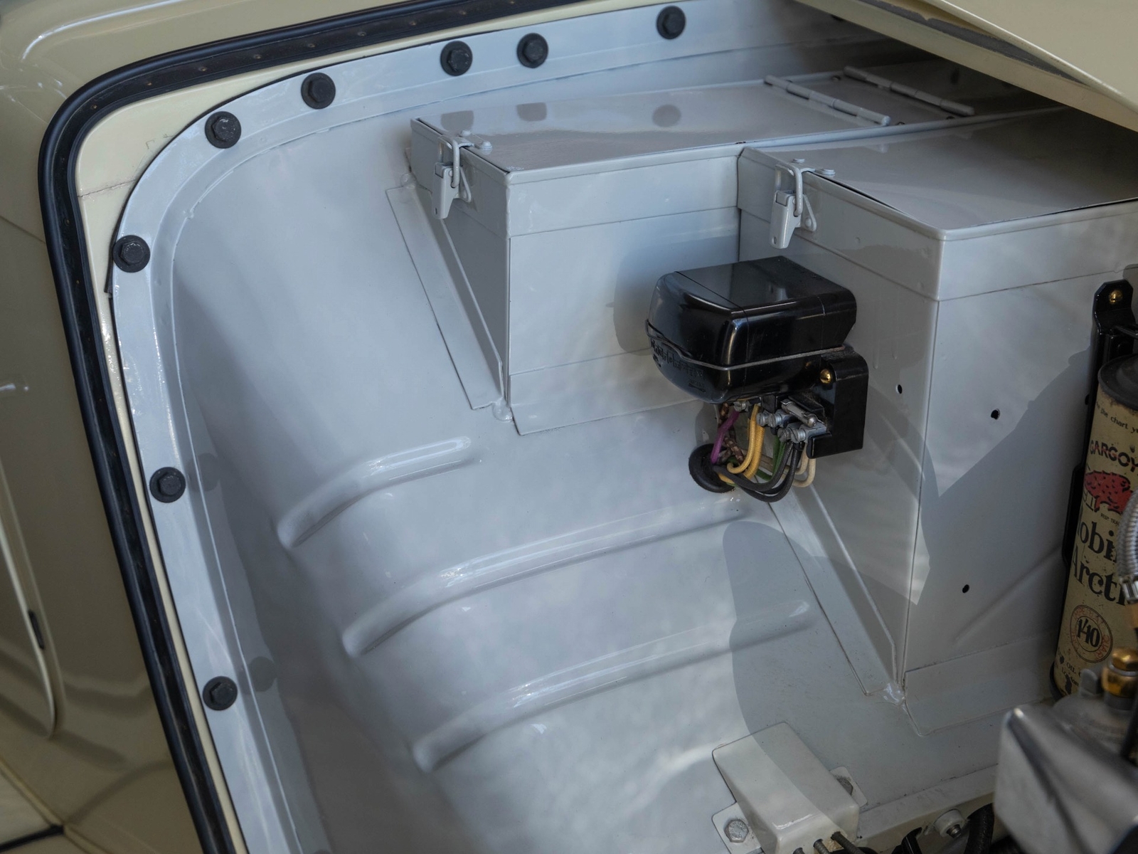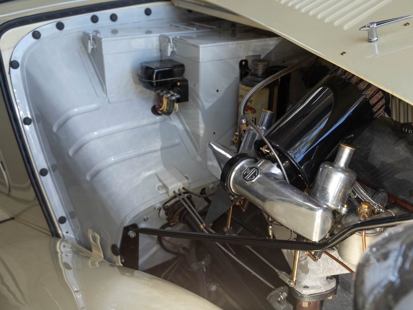 An absolutely beautifully restored and maintained example with striking livery and very desirable and rare period accessories and presented with factory tools, jack, and other rare accessories, an ideal example for entry into classic shows and touring events. Beneath the hood, its original chassis plate confirms its identity and that the engine is that with which it was originally supplied. With an odometer reading of a mere 40 miles, it seems very likely that this is post restoration road use only and the car's presentation attests to that.