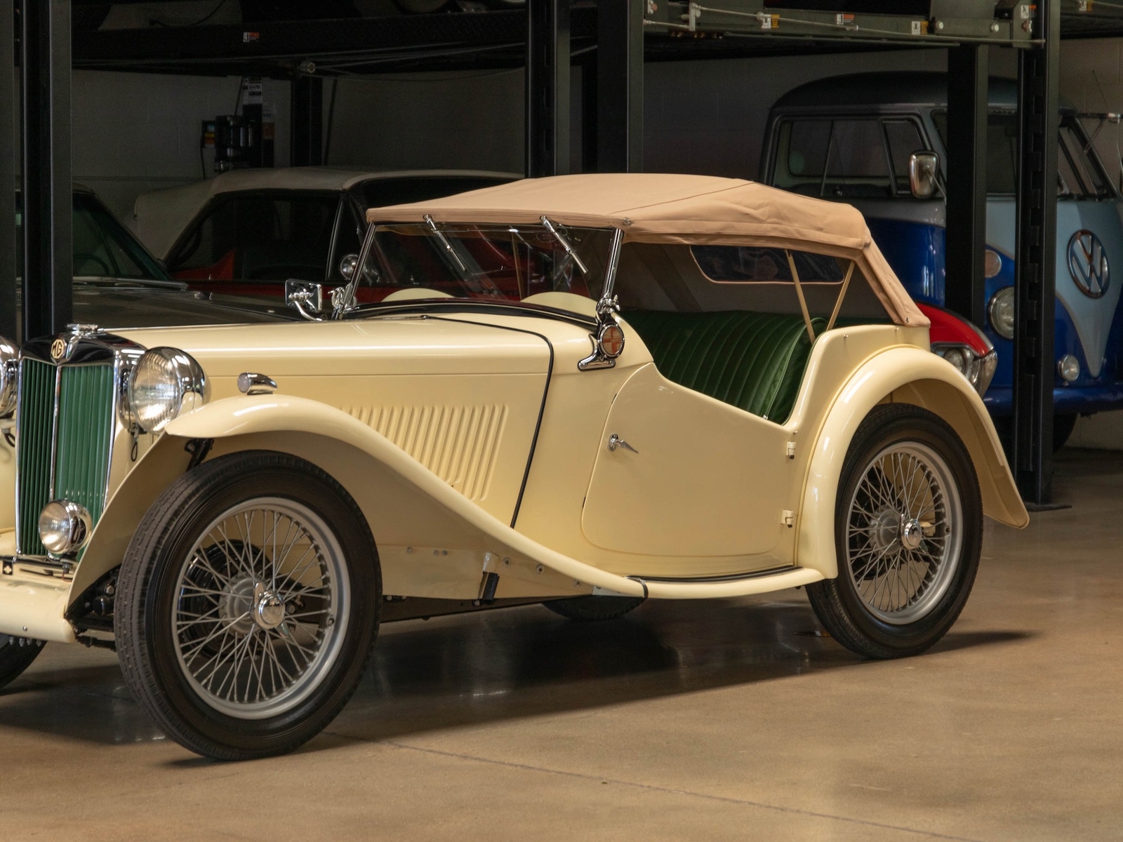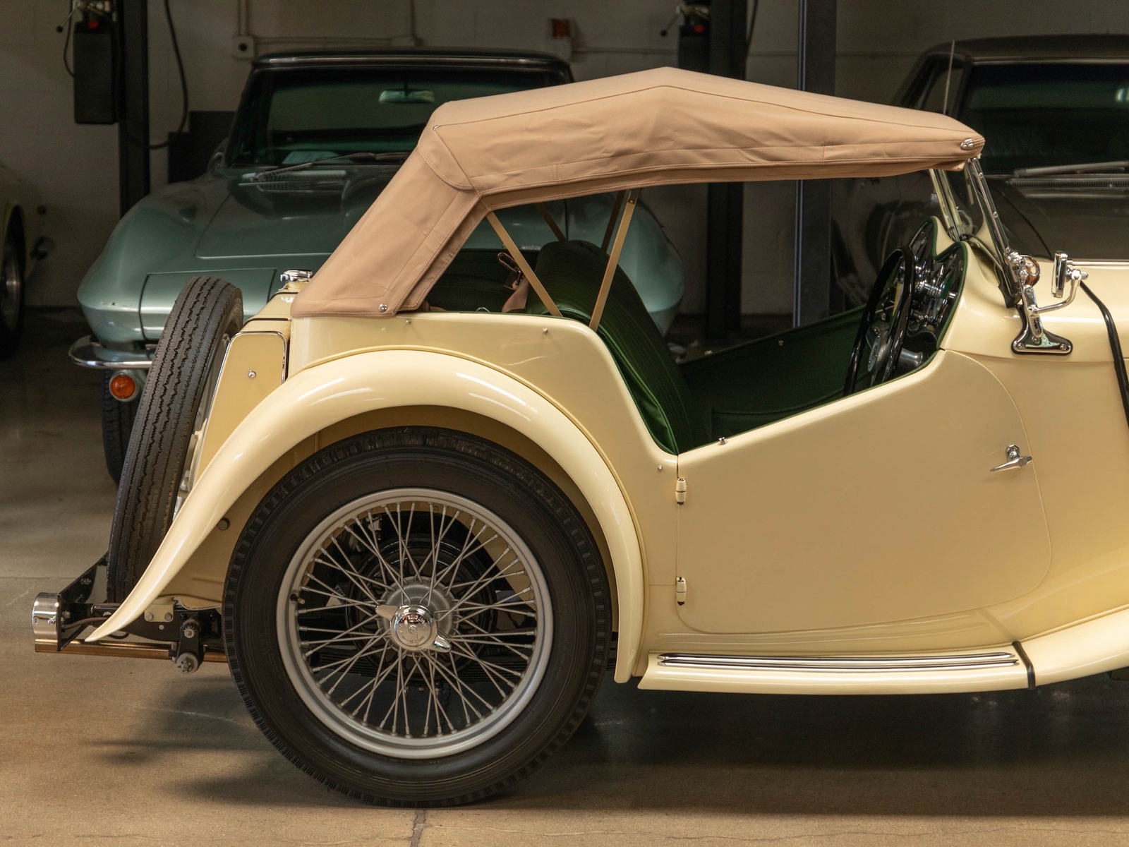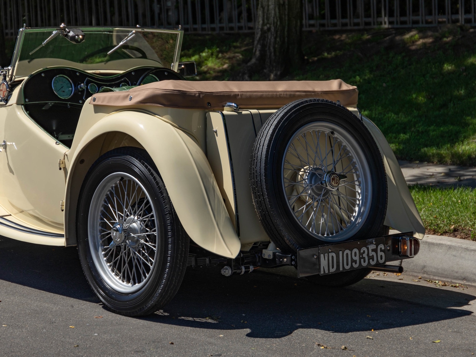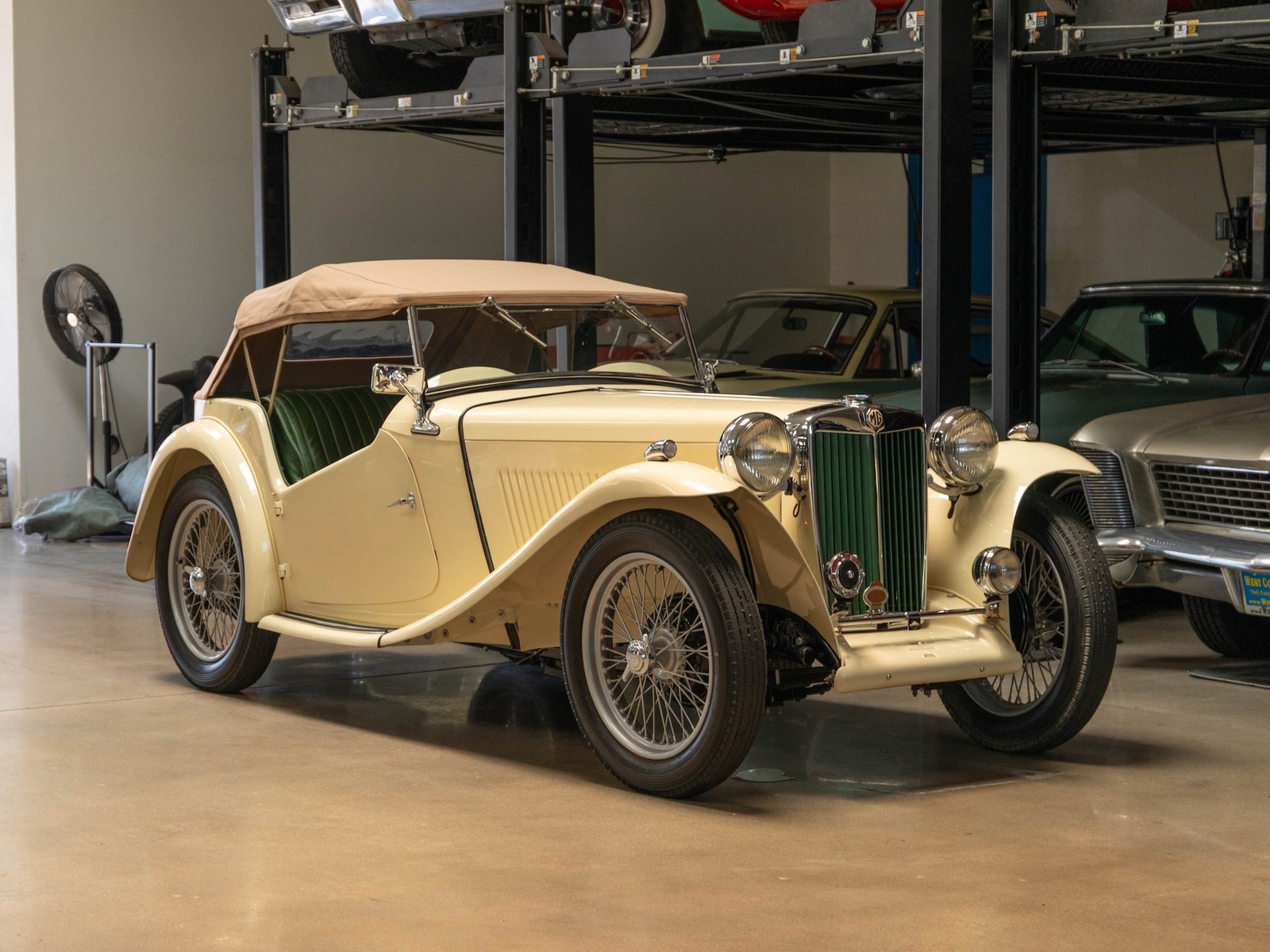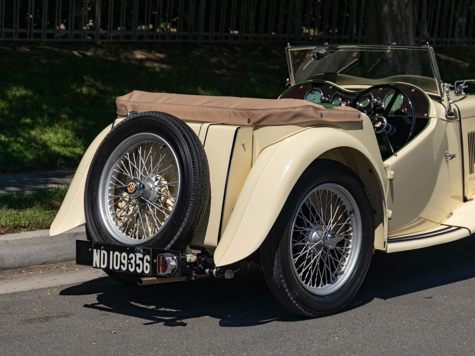 Riding on correct painted wire wheels with period style 4.50-19 Blockley tires, this 1948 MG TC is a wonderful example of one of the worlds all-time most important sports cars and an archetypal prewar British sports car design that carried over into the postwar period. The TC was built between 1945-49 and was the primary influence in turning Americans onto European sports cars. It has since achieved rare 'Milestone' status and with its classic lines, freestanding headlamps, upright radiator shell, sweeping front fenders, rakish cutaway doors, fold down windshield, abbreviated tail which houses the fuel tank and spare tire, and 19" diameter wire wheels with knock off hubs.