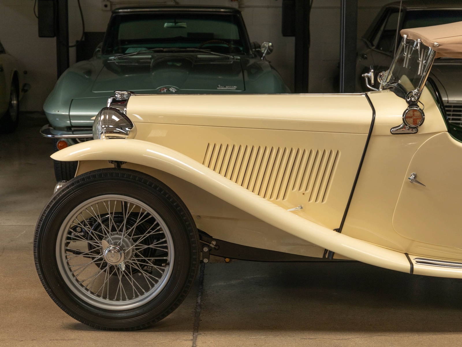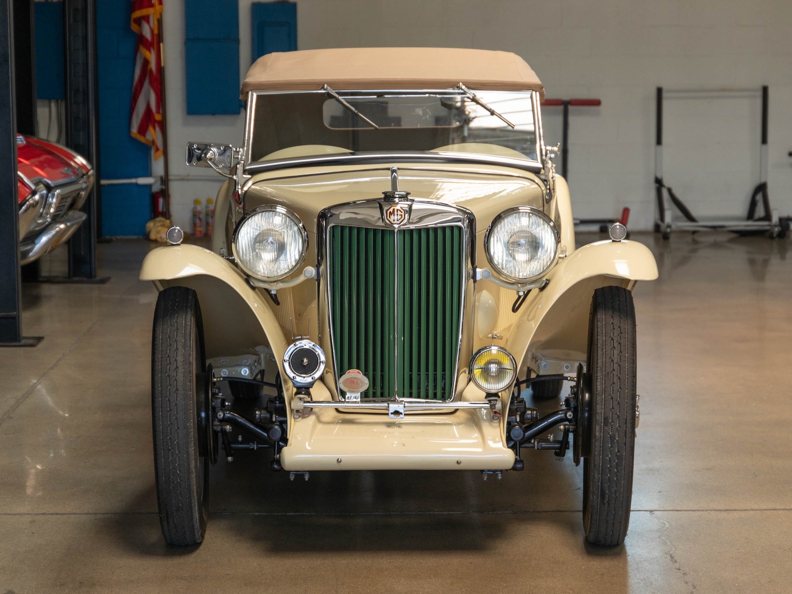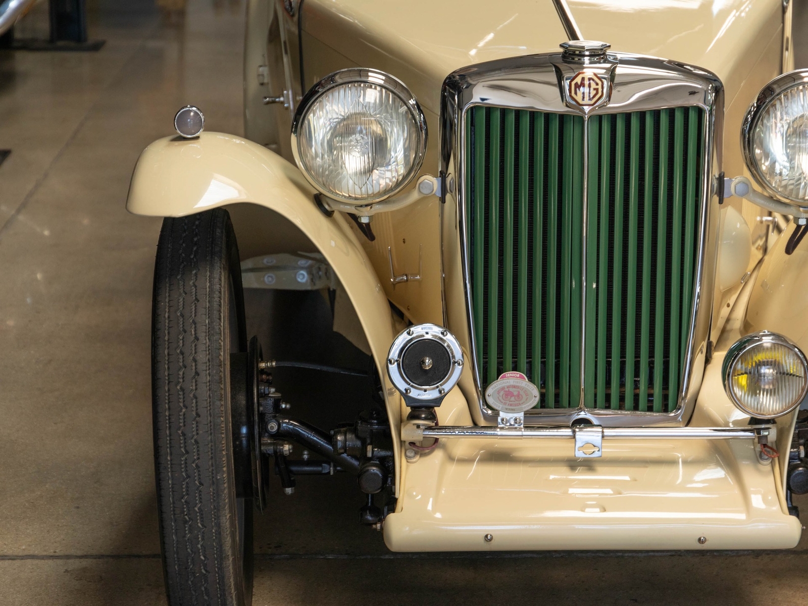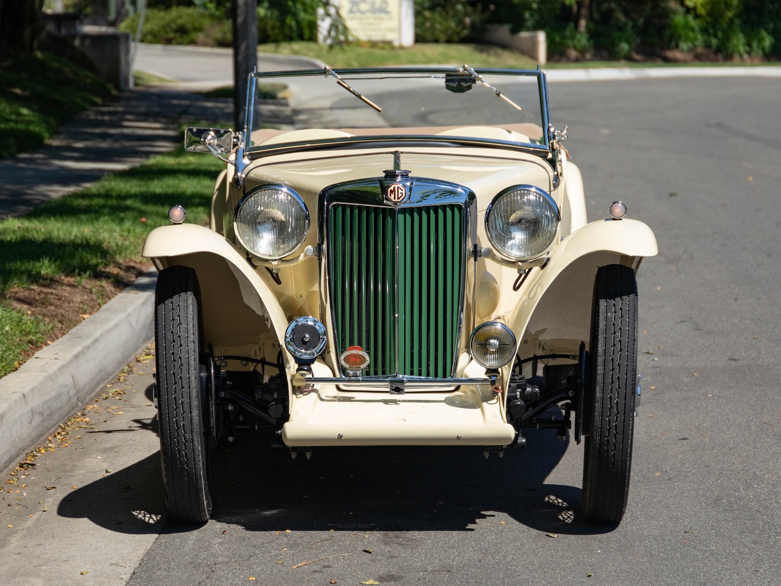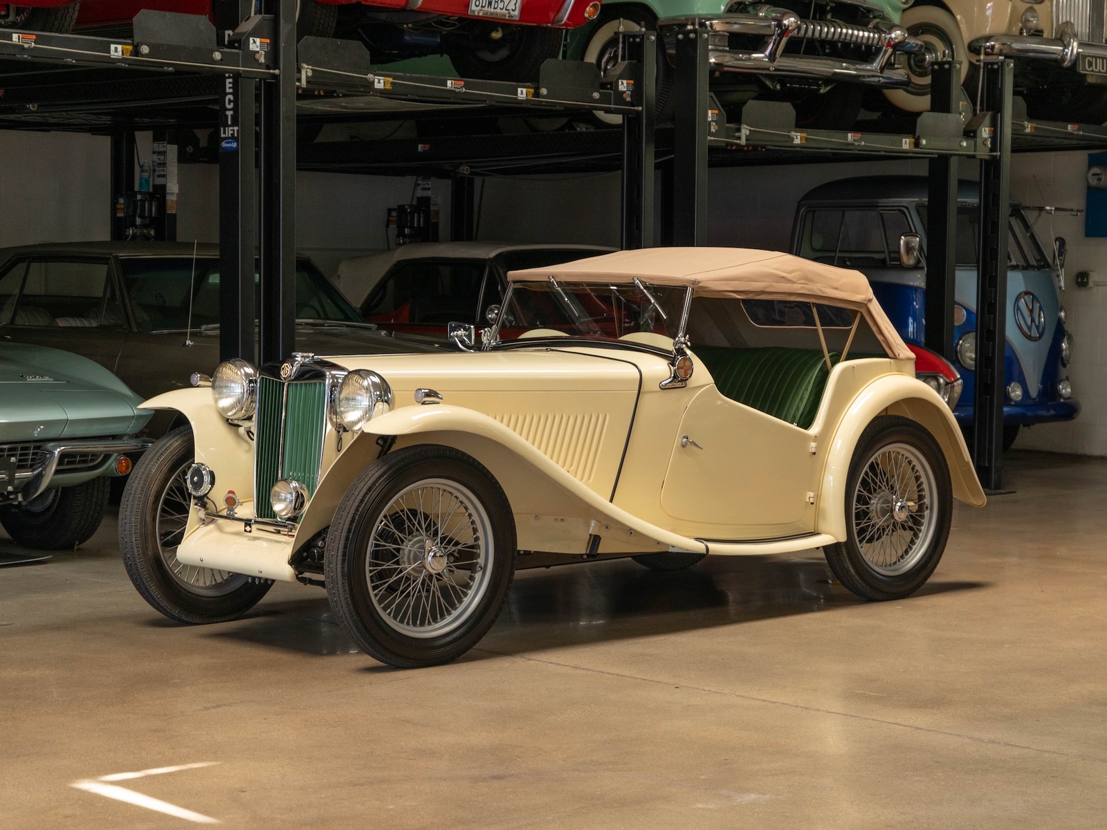 Riding on correct painted wire wheels with period style 4.50-19 Blockley tires, this 1948 MG TC is a wonderful example of one of the worlds all-time most important sports cars and an archetypal prewar British sports car design that carried over into the postwar period. The TC was built between 1945-49 and was the primary influence in turning Americans onto European sports cars. It has since achieved rare 'Milestone' status and with its classic lines, freestanding headlamps, upright radiator shell, sweeping front fenders, rakish cutaway doors, fold down windshield, abbreviated tail which houses the fuel tank and spare tire, and 19" diameter wire wheels with knock off hubs.