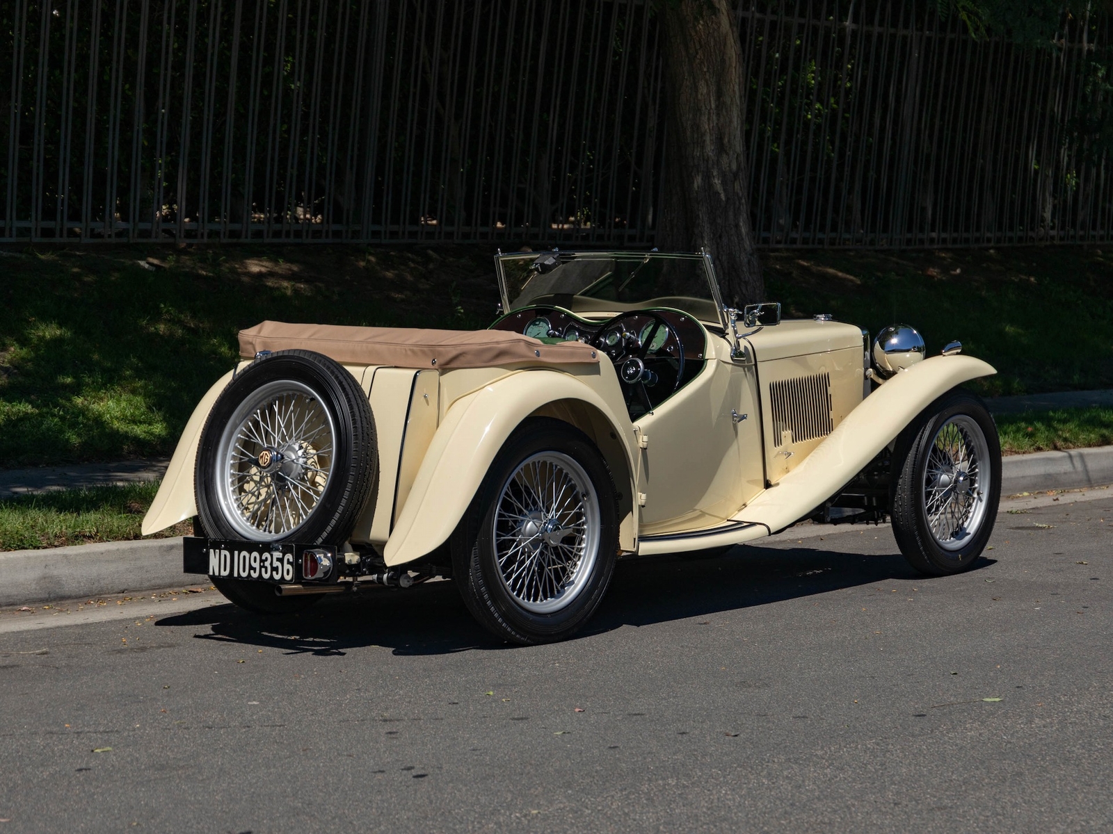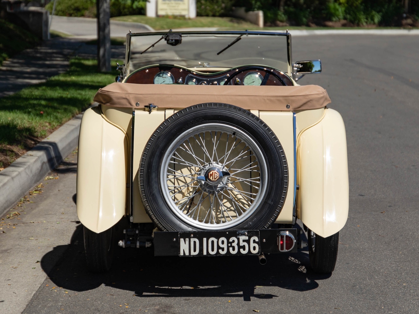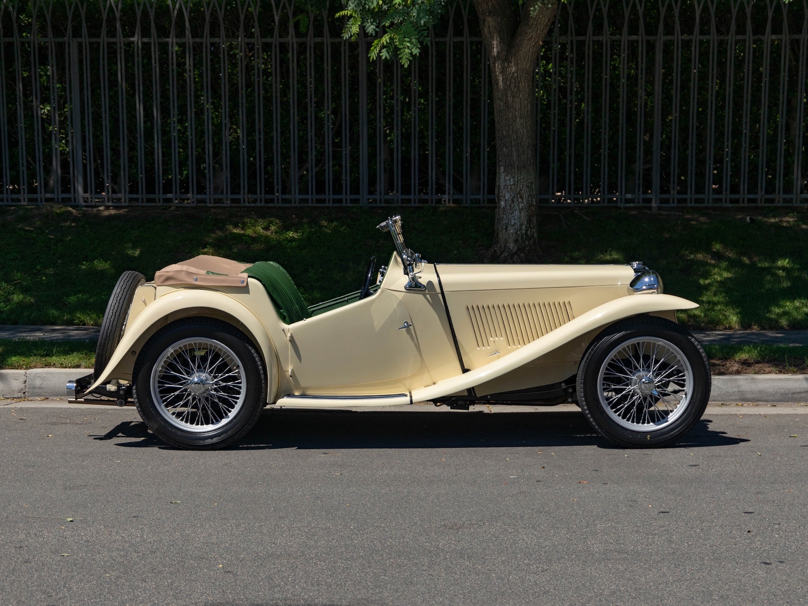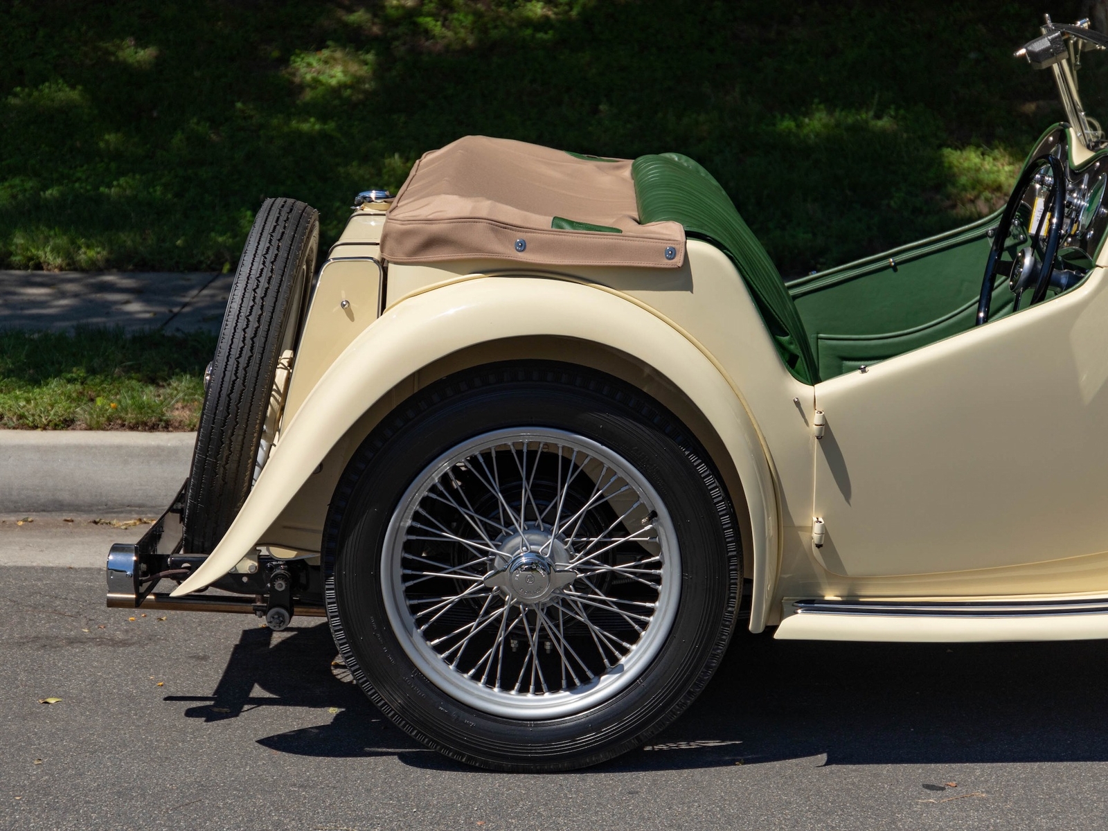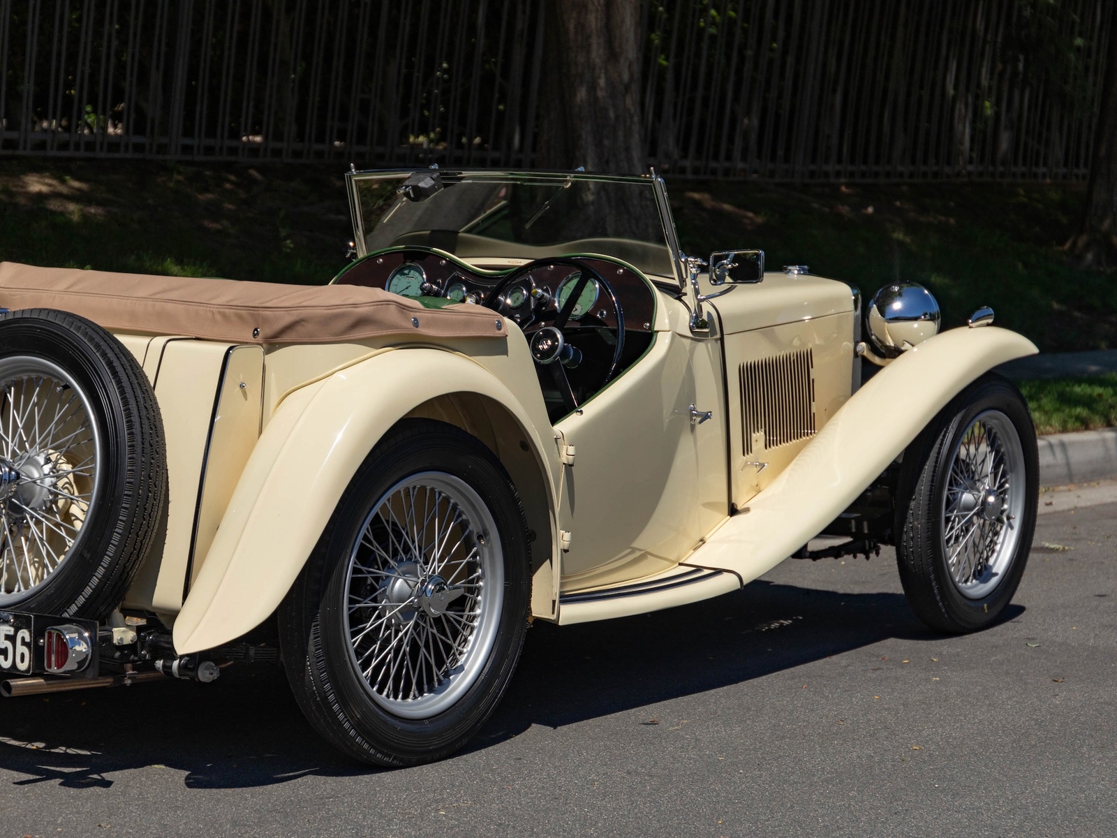 Riding on correct painted wire wheels with period style 4.50-19 Blockley tires, this 1948 MG TC is a wonderful example of one of the worlds all-time most important sports cars and an archetypal prewar British sports car design that carried over into the postwar period. The TC was built between 1945-49 and was the primary influence in turning Americans onto European sports cars. It has since achieved rare 'Milestone' status and with its classic lines, freestanding headlamps, upright radiator shell, sweeping front fenders, rakish cutaway doors, fold down windshield, abbreviated tail which houses the fuel tank and spare tire, and 19" diameter wire wheels with knock off hubs.