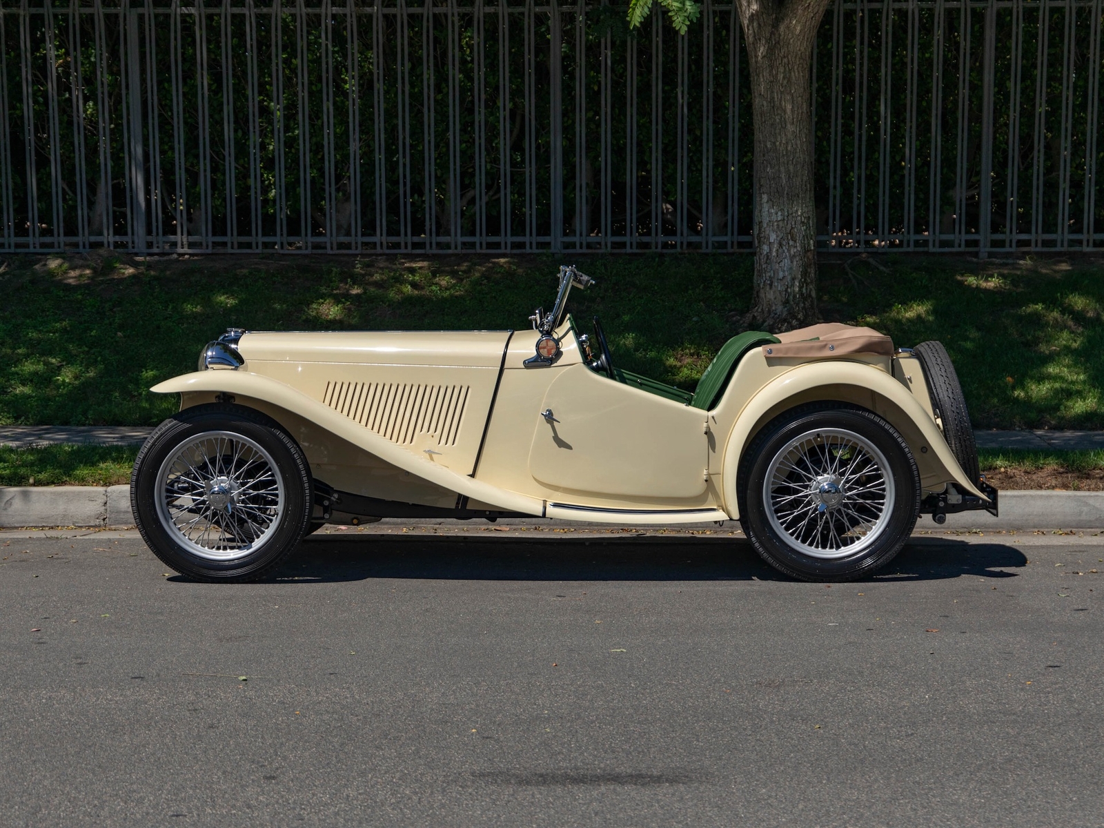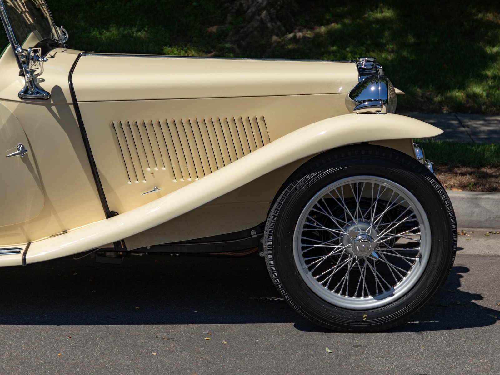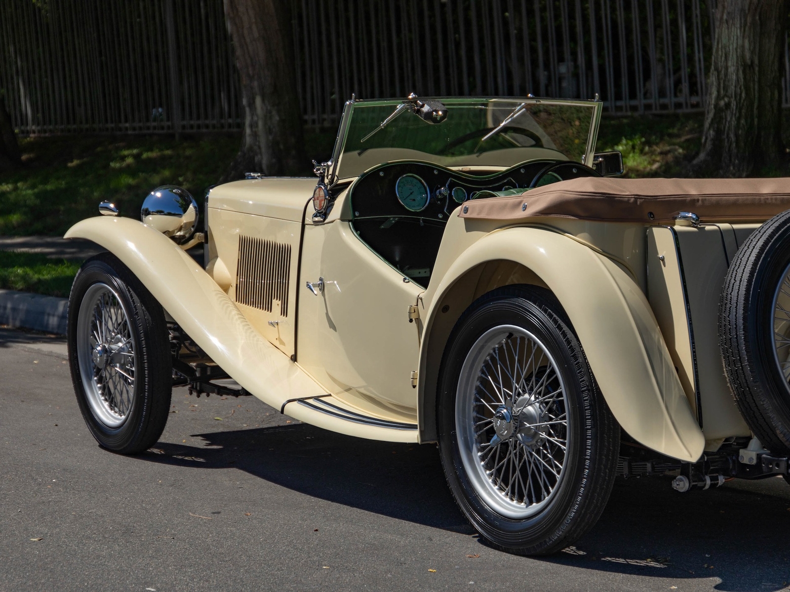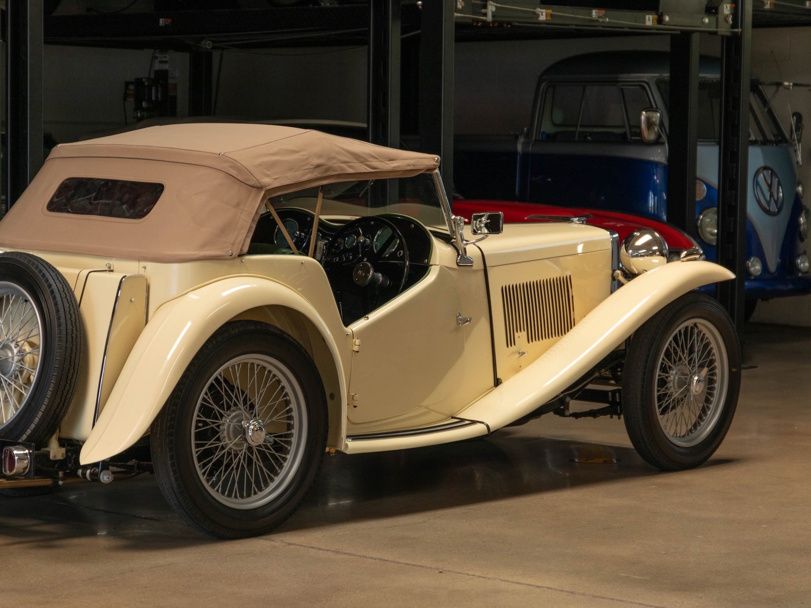 Riding on correct painted wire wheels with period style 4.50-19 Blockley tires, this 1948 MG TC is a wonderful example of one of the worlds all-time most important sports cars and an archetypal prewar British sports car design that carried over into the postwar period. The TC was built between 1945-49 and was the primary influence in turning Americans onto European sports cars. It has since achieved rare 'Milestone' status and with its classic lines, freestanding headlamps, upright radiator shell, sweeping front fenders, rakish cutaway doors, fold down windshield, abbreviated tail which houses the fuel tank and spare tire, and 19" diameter wire wheels with knock off hubs.