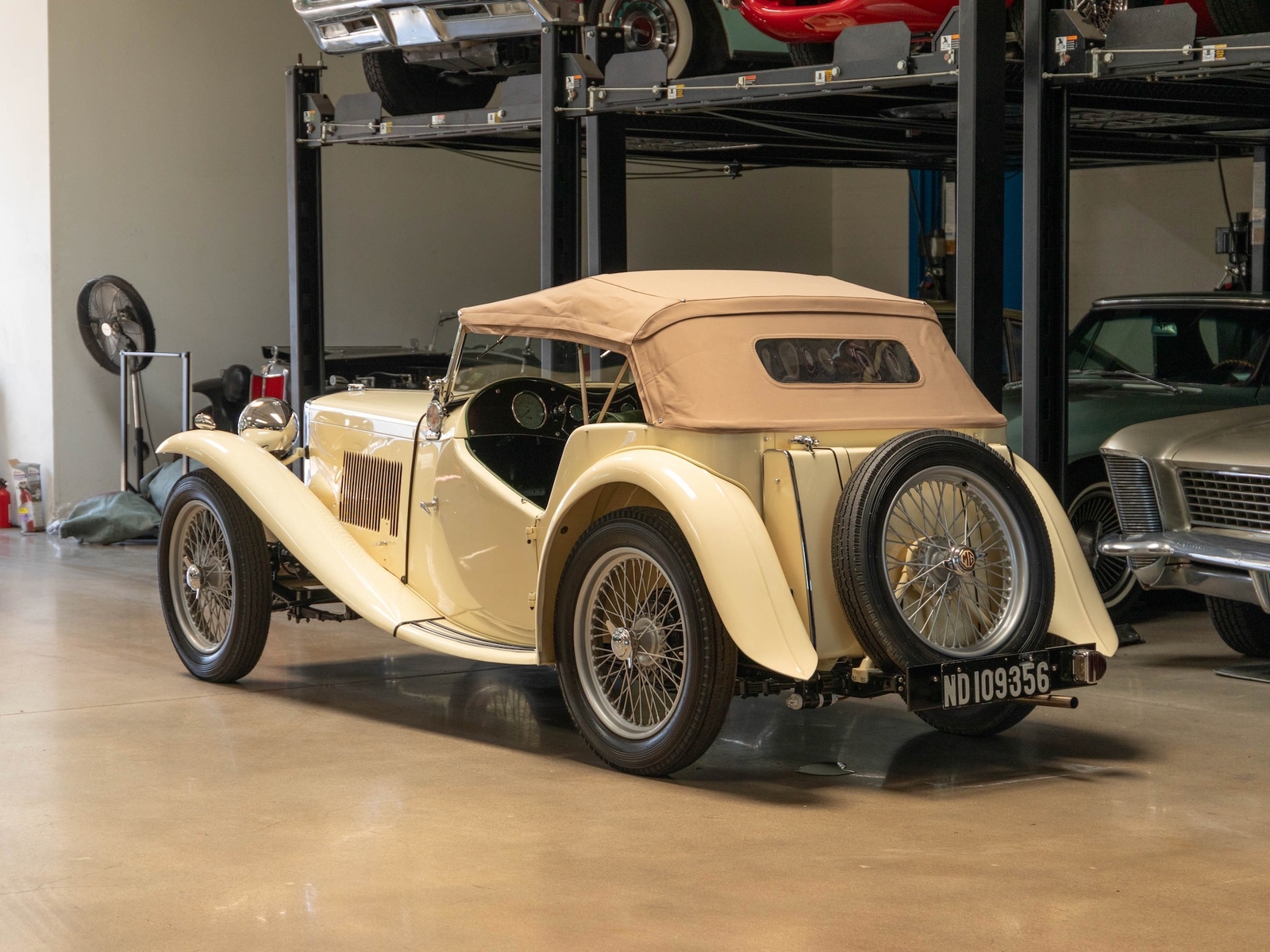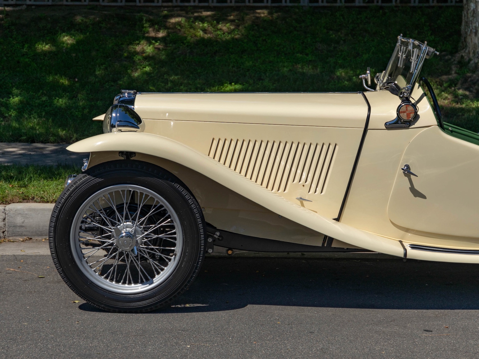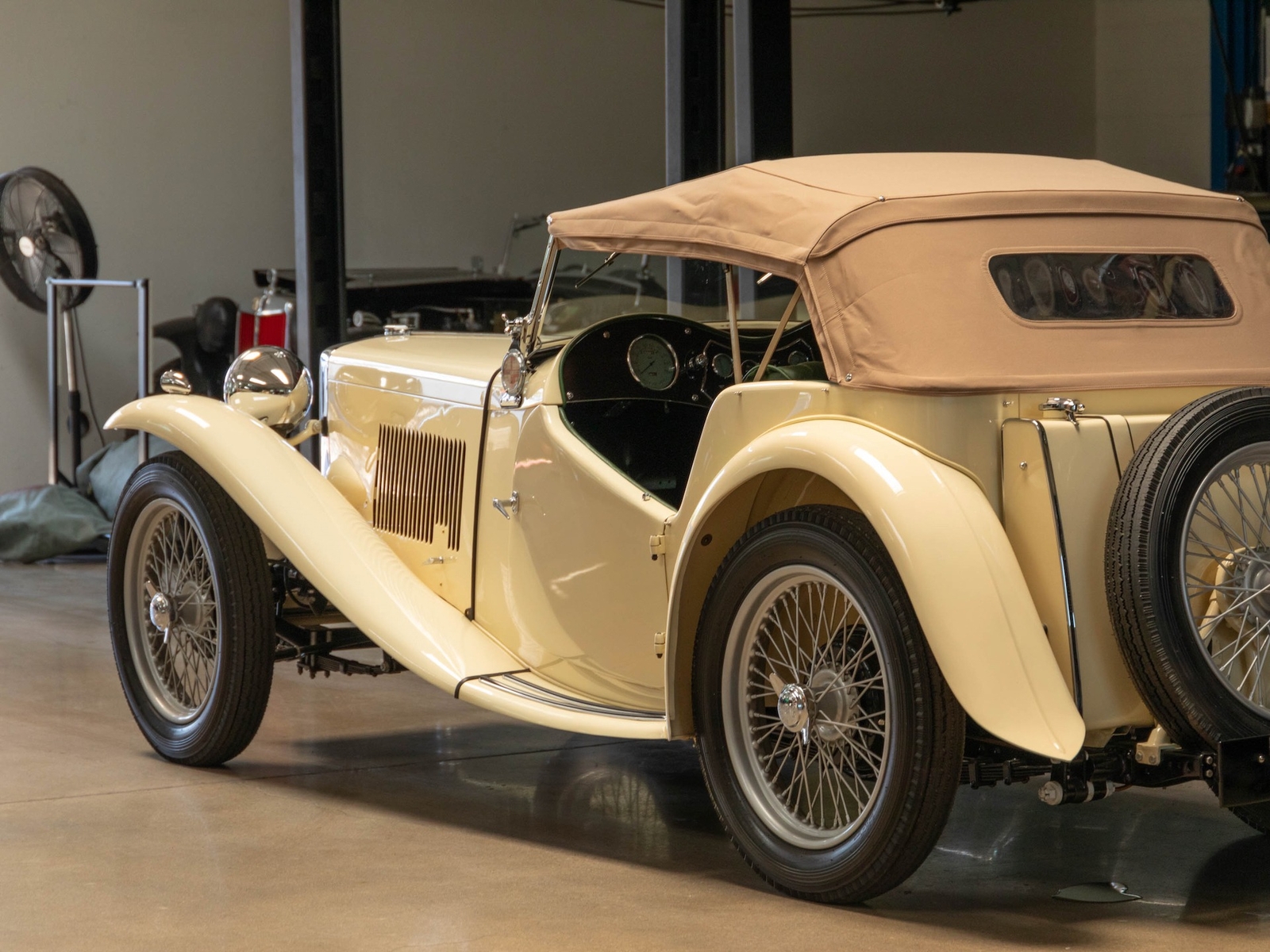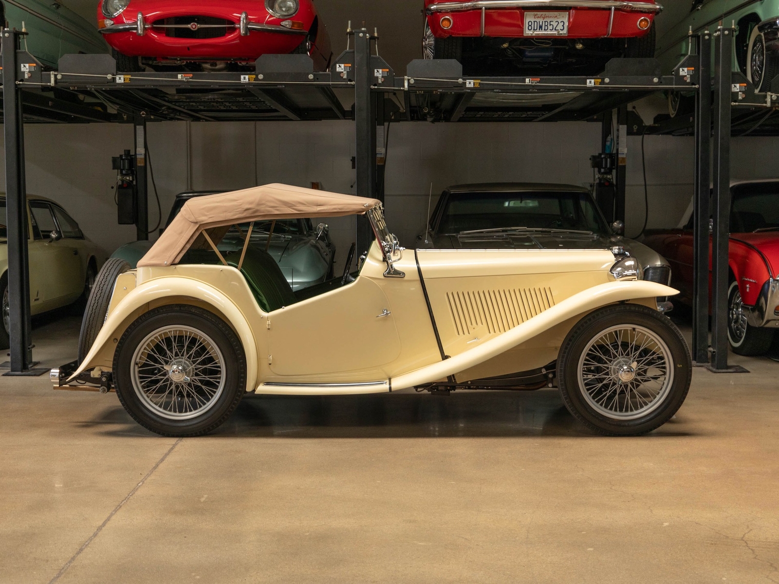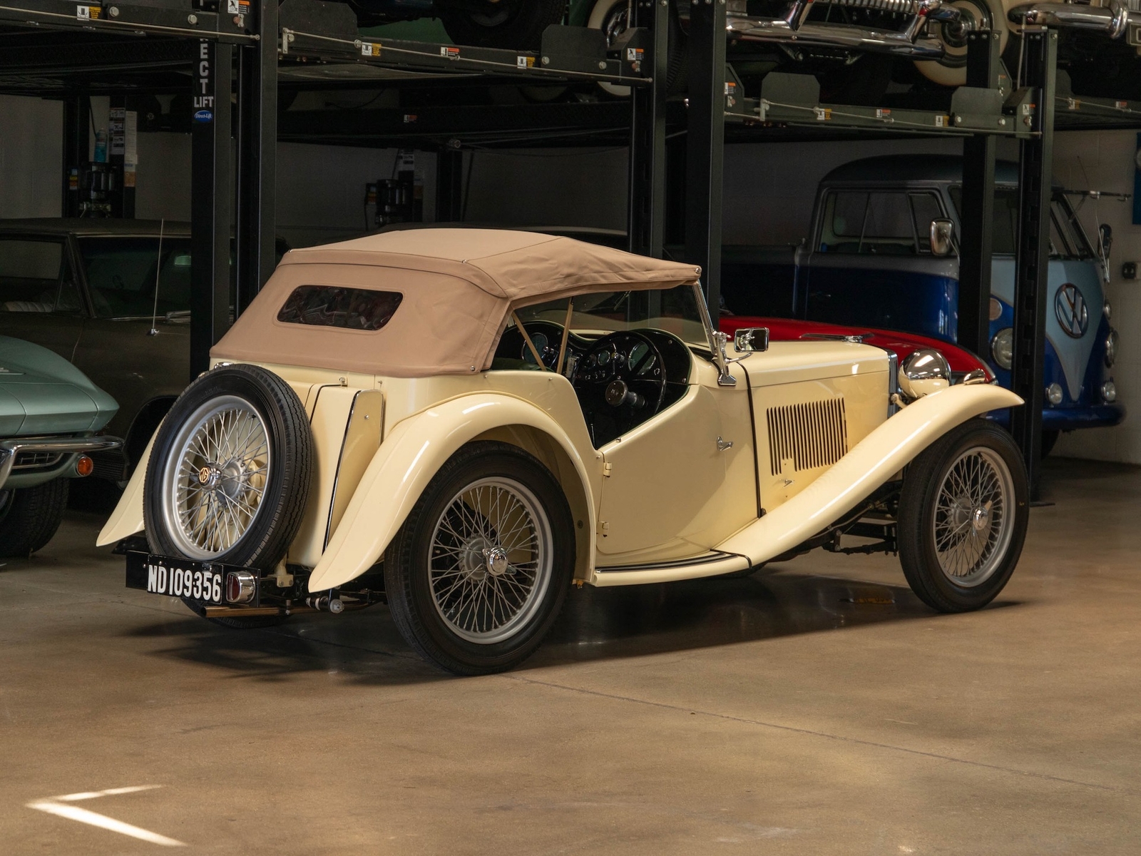 Riding on correct painted wire wheels with period style 4.50-19 Blockley tires, this 1948 MG TC is a wonderful example of one of the worlds all-time most important sports cars and an archetypal prewar British sports car design that carried over into the postwar period. The TC was built between 1945-49 and was the primary influence in turning Americans onto European sports cars. It has since achieved rare 'Milestone' status and with its classic lines, freestanding headlamps, upright radiator shell, sweeping front fenders, rakish cutaway doors, fold down windshield, abbreviated tail which houses the fuel tank and spare tire, and 19" diameter wire wheels with knock off hubs.