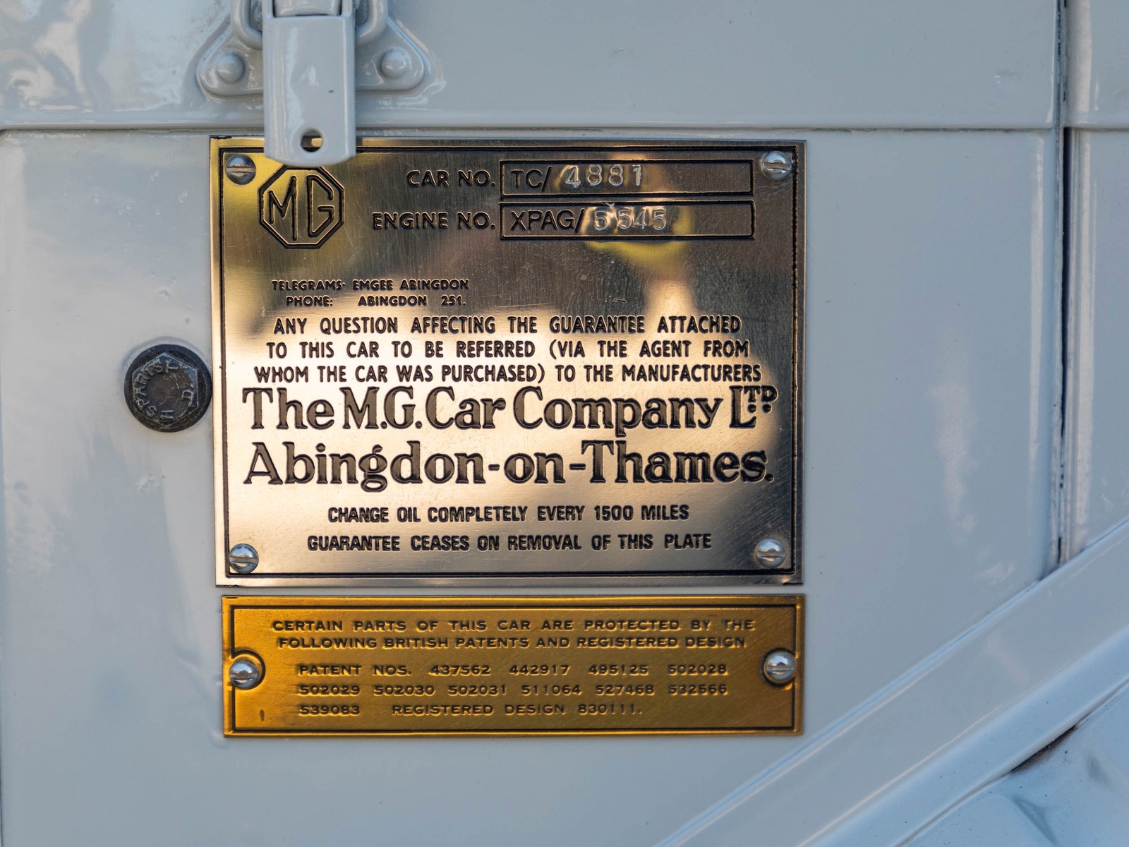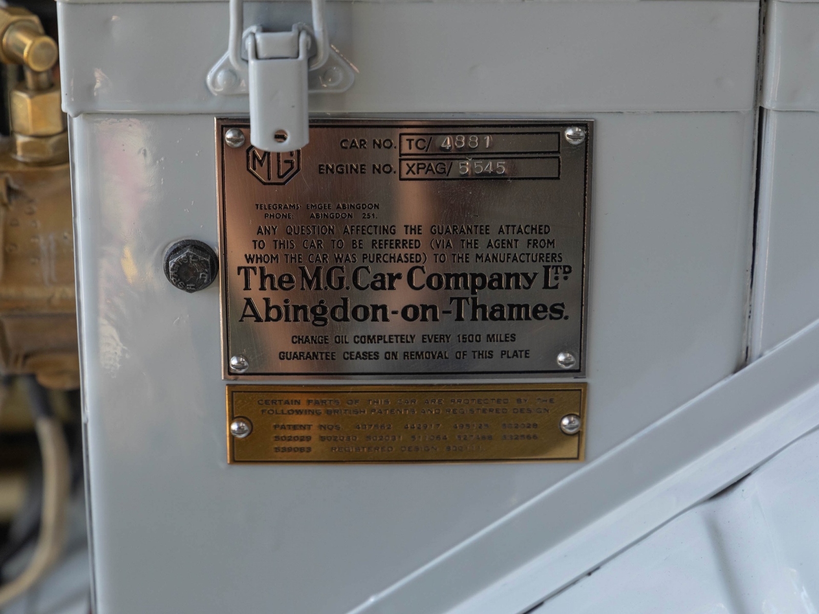 This extraordinarily charming and obviously exceptionally well preserved and stock TC presents absolutely beautifully inside and out. It is apparent that some extremely high-quality and factory correct restoration work was performed in the past, with many original factory finishes remaining intact, including much of the chrome and brightwork. The car also drives as it must have when new, mechanically it has absolutely no known issues, drives as one would expect of one of the obviously most well maintained and sorted examples anywhere. Turn key ready. Very rare to find original matching numbers engine with ID plates and factory stampings are in place with classic silver painted wire wheels fitted, with a 5th spare strapped to the back, and an original tool kit accompanies the car.
