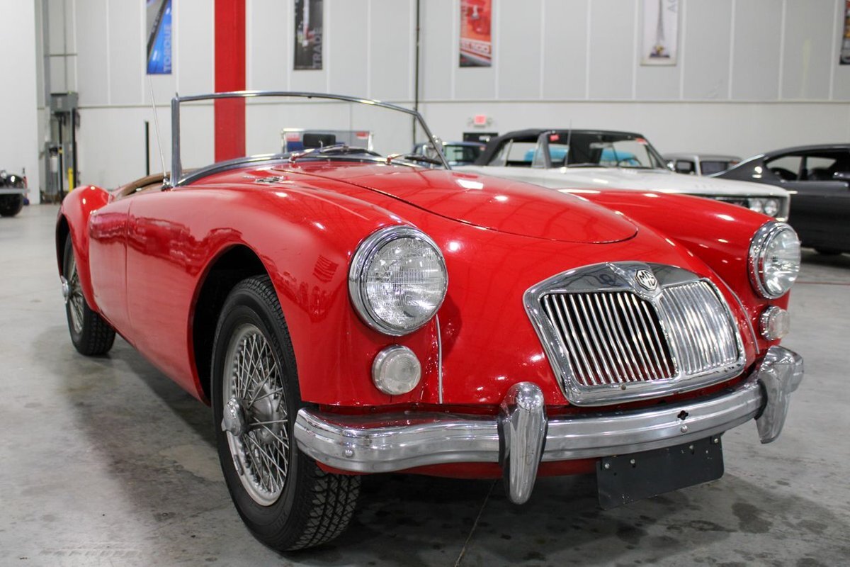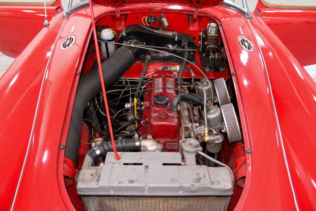Just out of a personal collection, GR Auto Gallery Of Indy is pleased to offer this very honest, well-sorted, 1961 MGA Roadster for consideration. The car is presented in Chariot Red over a black interior, with a Black soft top. To point out the obvious, the exterior paint is roughly 10-15 years old and does show cracking and some peeling in areas. With this, it does also reveal excellent structural integrity and presents itself in an honest, nothing-to-hide manner. The car has been driven and enjoyed by previous owner motoring enthusiasts. The most recent caretaker went to great lengths to ensure mechanical fitness so it can continue to be driven and enjoyed.