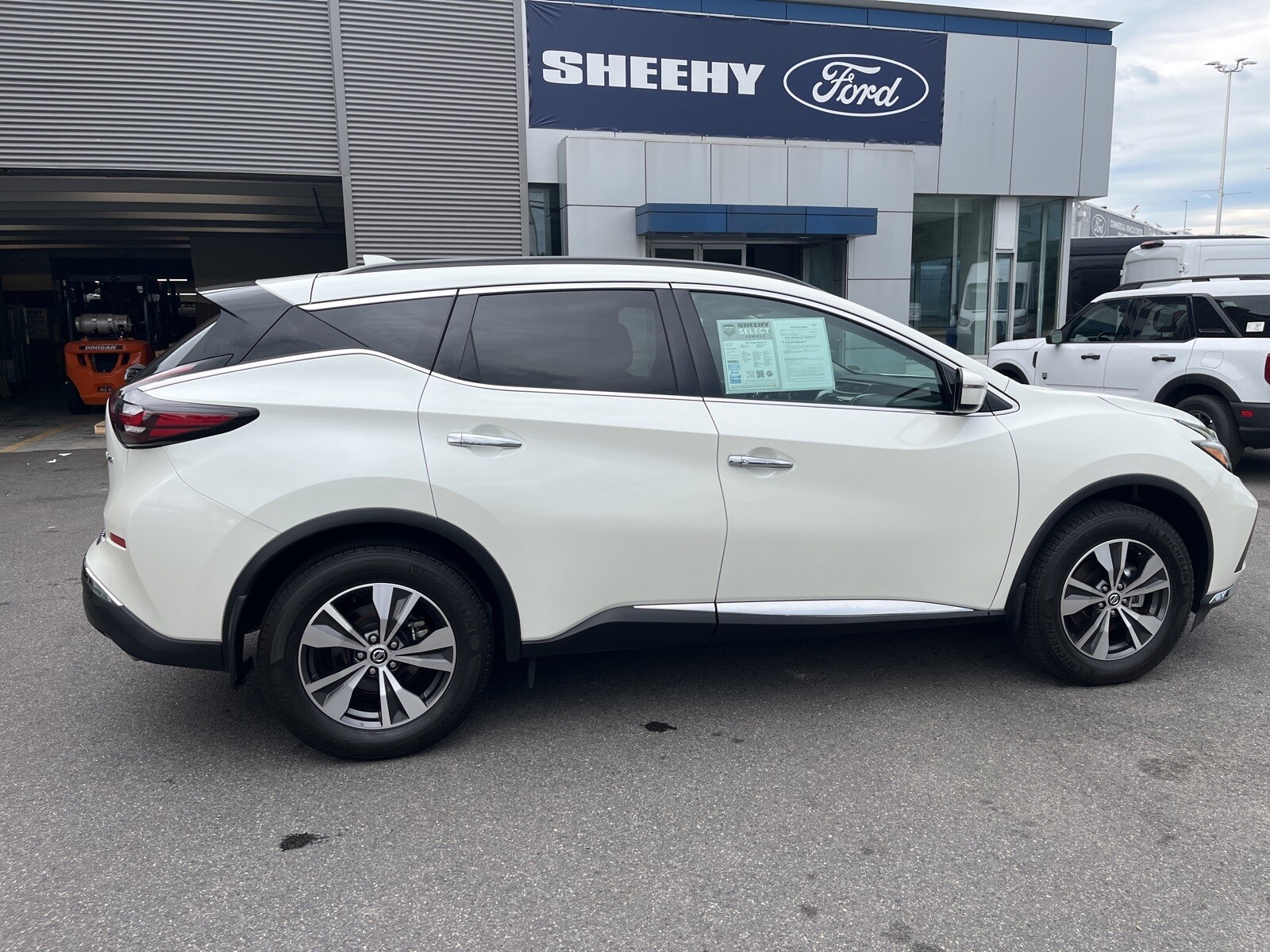 2022 Nissan Murano SV AWD at Sheehy Ford of Springfield! This Murano has an exterior color of Pearl White Tricoat with Graphite Artificial Leather interior. This preowned Nissan Murano is equipped with amazing options like: Automatic temperature control, Power driver seat, Steering wheel mounted audio controls, and Traction control. CARFAX One-Owner.