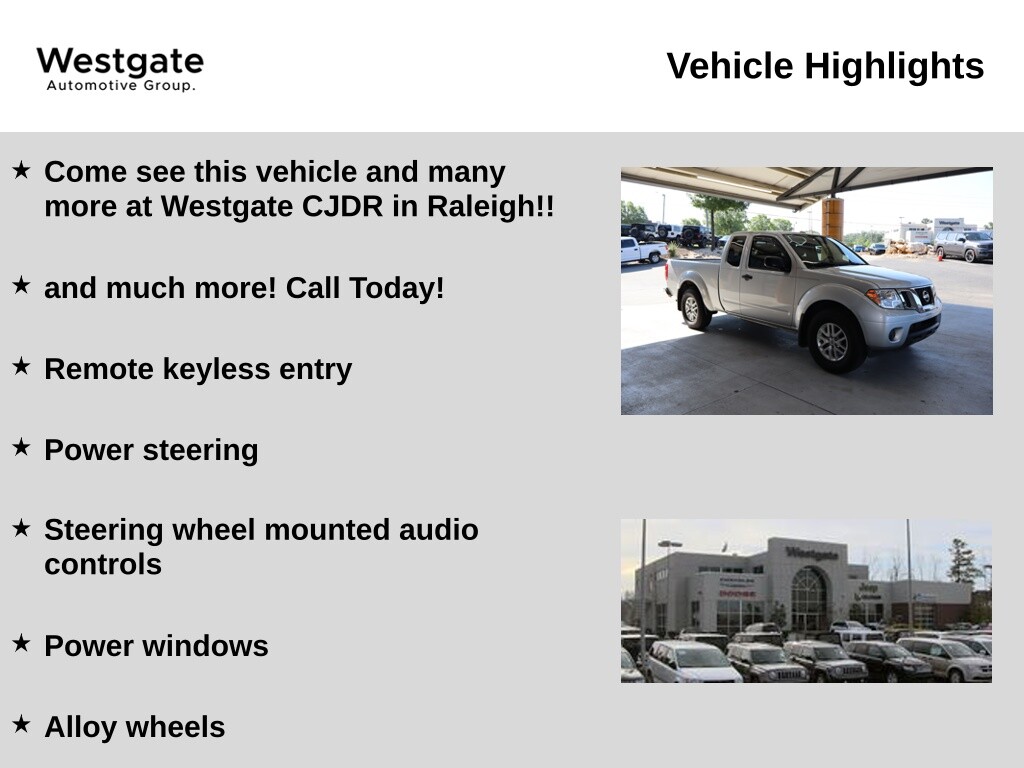Come see this vehicle and many more at Westgate CJDR in Raleigh!!, and much more! Call Today!, Alloy wheels, Power steering, Power windows, Remote keyless entry, Steering wheel mounted audio controls.