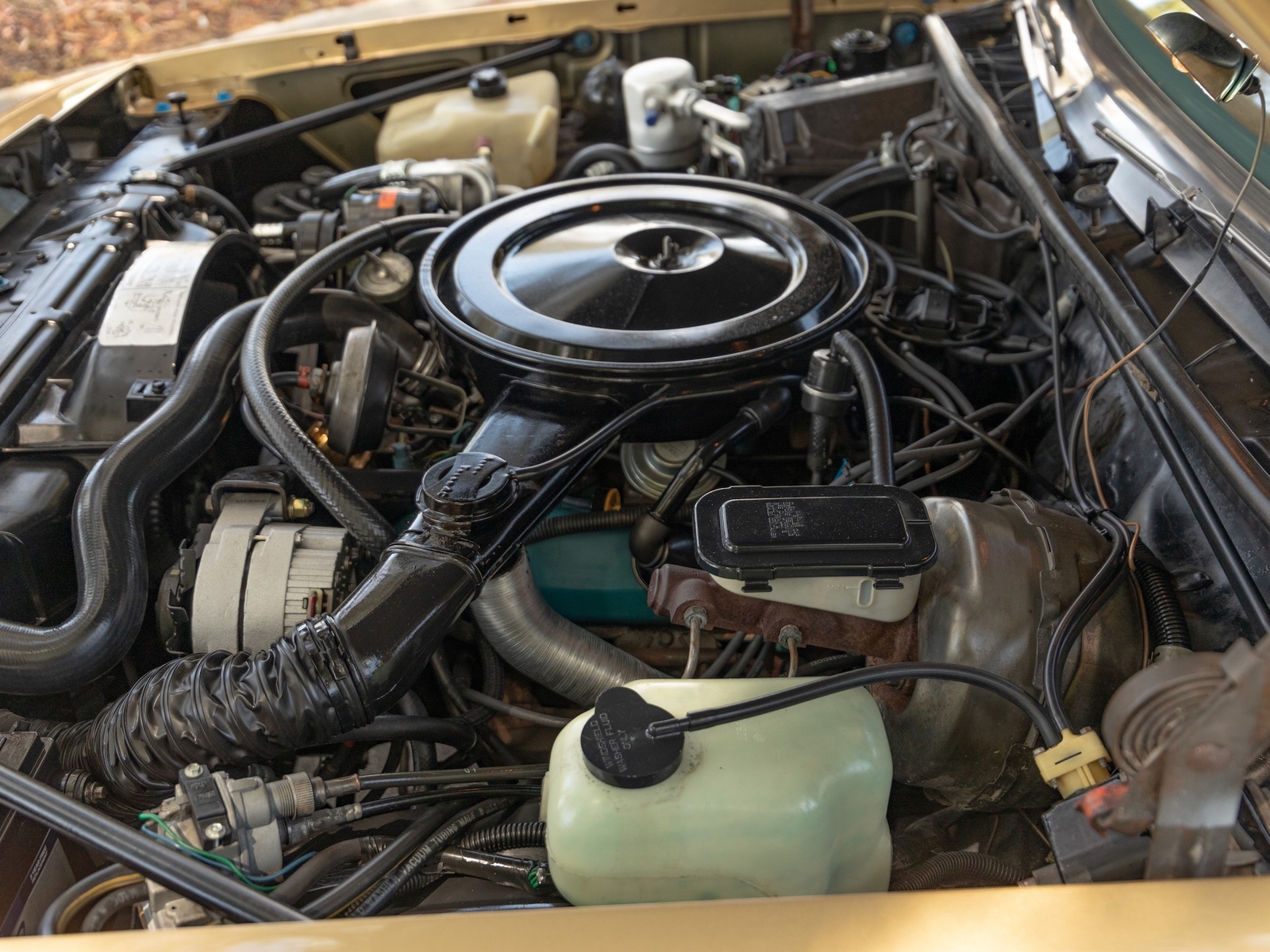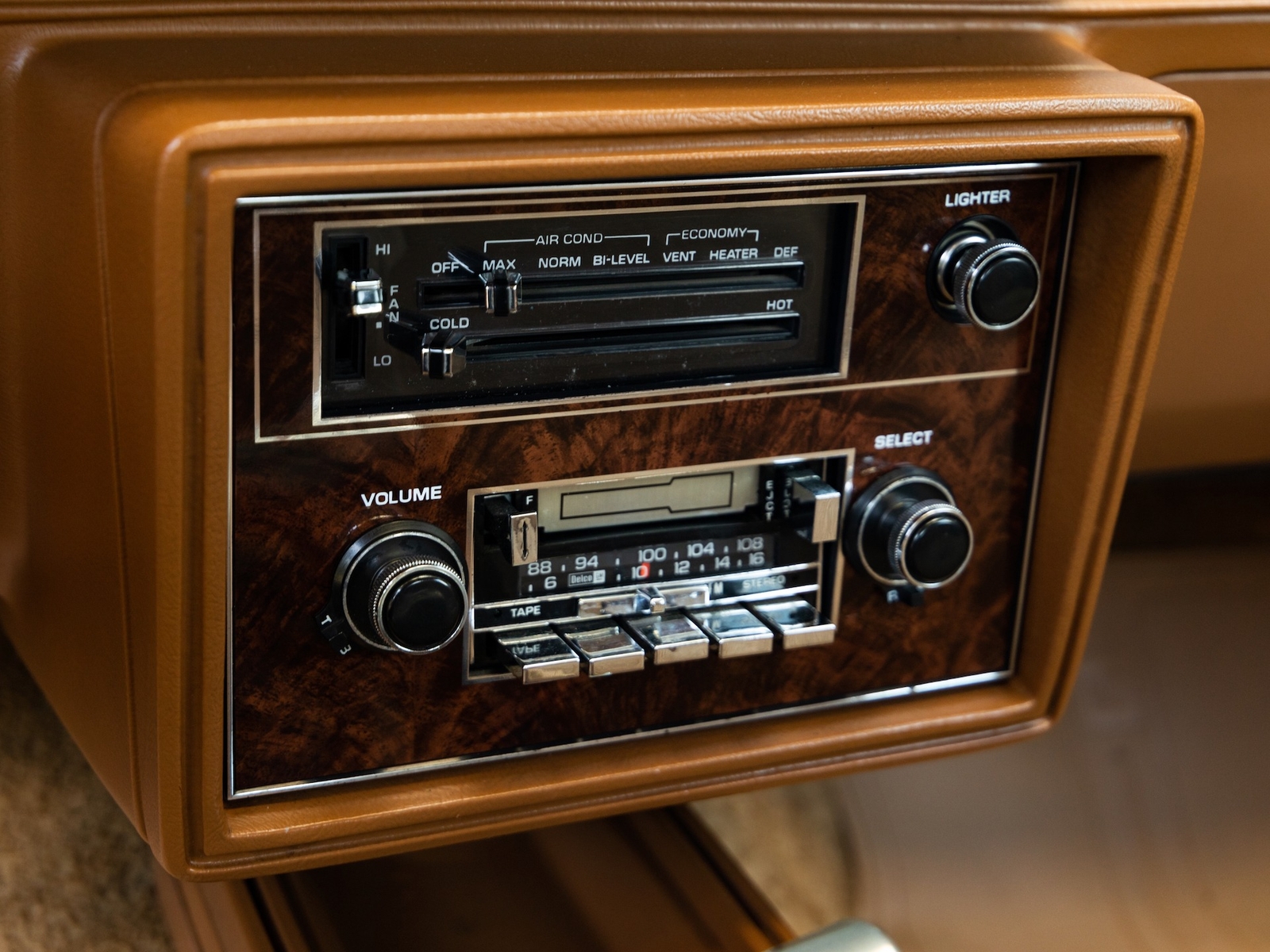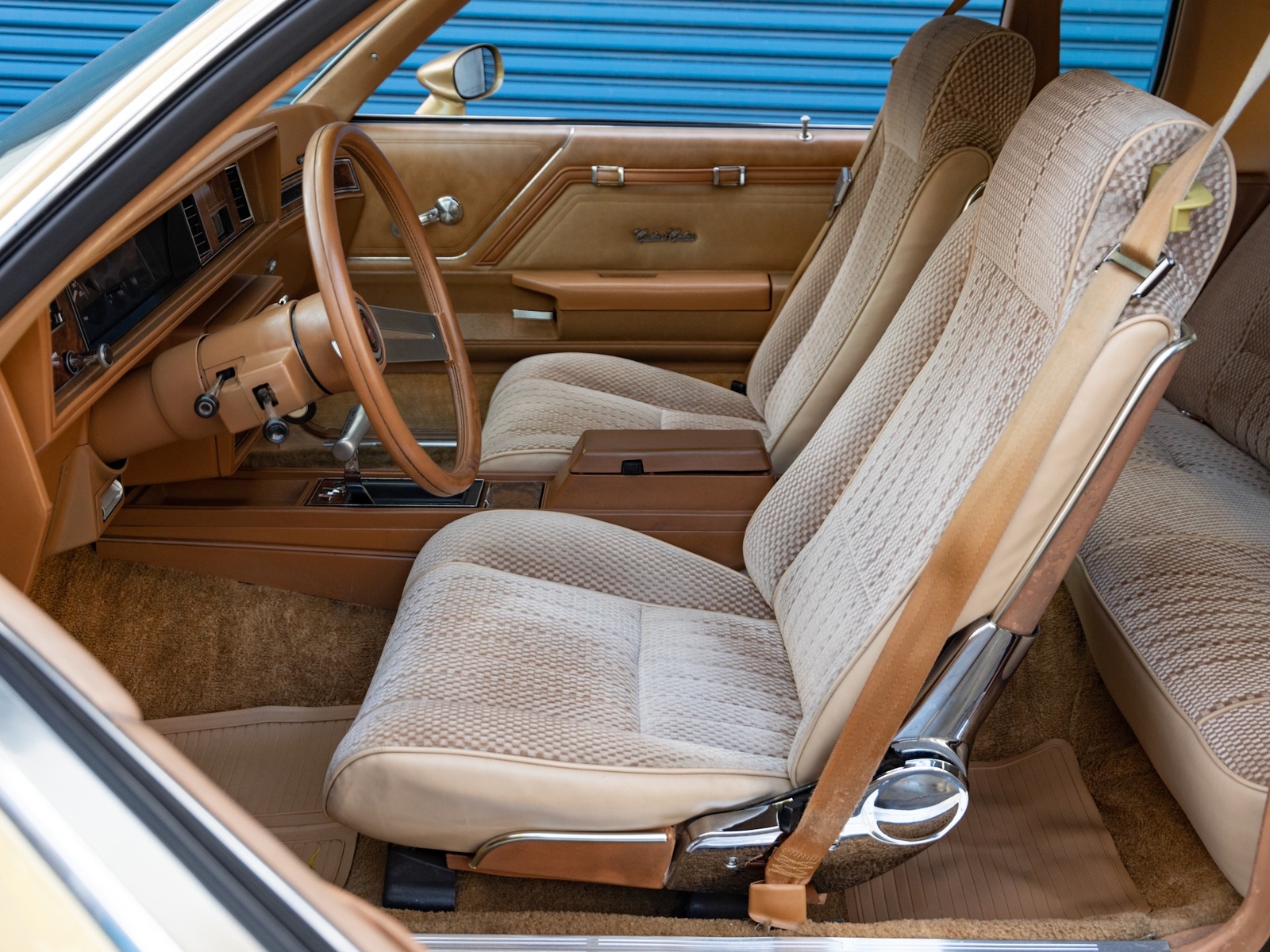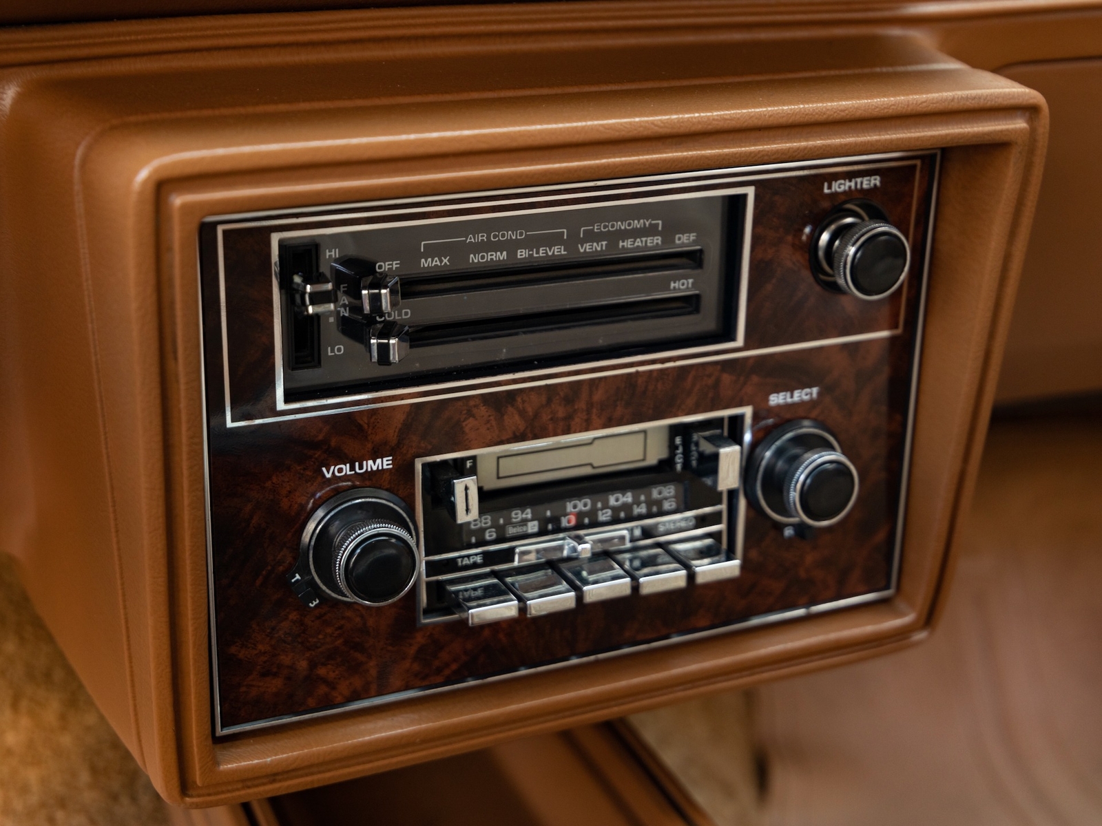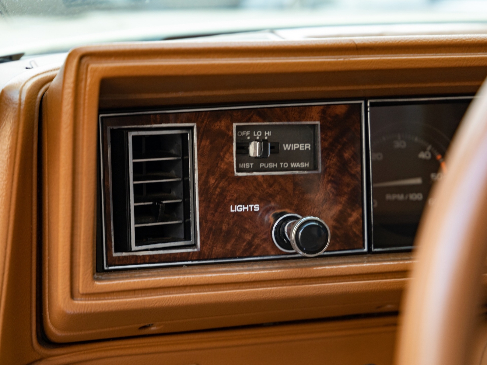 The car was repainted in its original factory two-tone color combination (with a much better finish than any of the original cars sold off the line!) with the original interior trimmed in 'Camel Tan Lochland Velour' with matching carpets, door panels, and plastics. Amenities include crank windows, air conditioning, a later Alpine cassette stereo, and a Hurst dual-gate console shifter. The air conditioning system has been converted to R134a refrigerant and the 350ci L34 V8 features a blue block, matching metric-bolt cylinder heads, and a plain black air cleaner from the factory for 1979. Power is sent to the rear wheels though a three-speed TH-350 automatic transmission and a 7.5 10-bolt rear axle with 2.56:1 gearing. The car brand new BF Goodrich steel belted radial tires mounted on the original wheels, new Bilstein shocks, and every option in the car is working as it should including the fully rebuilt AC system.