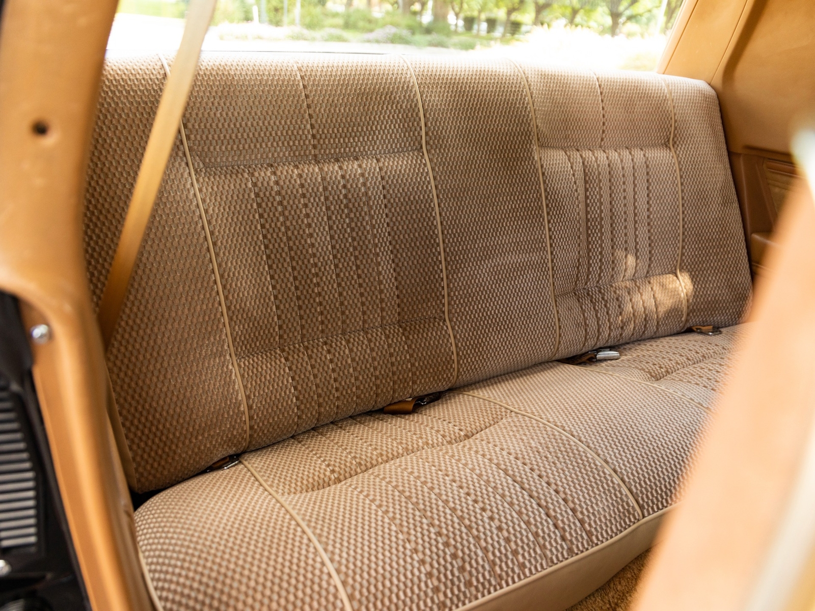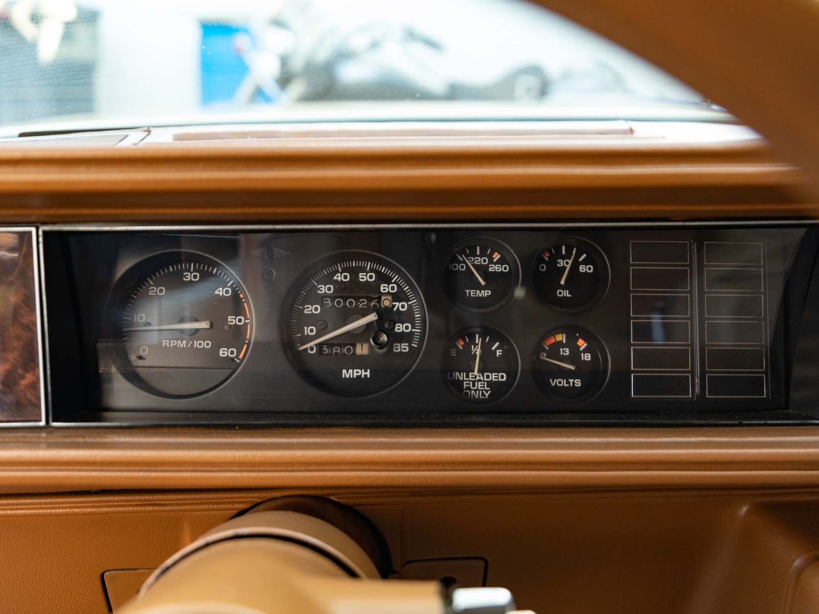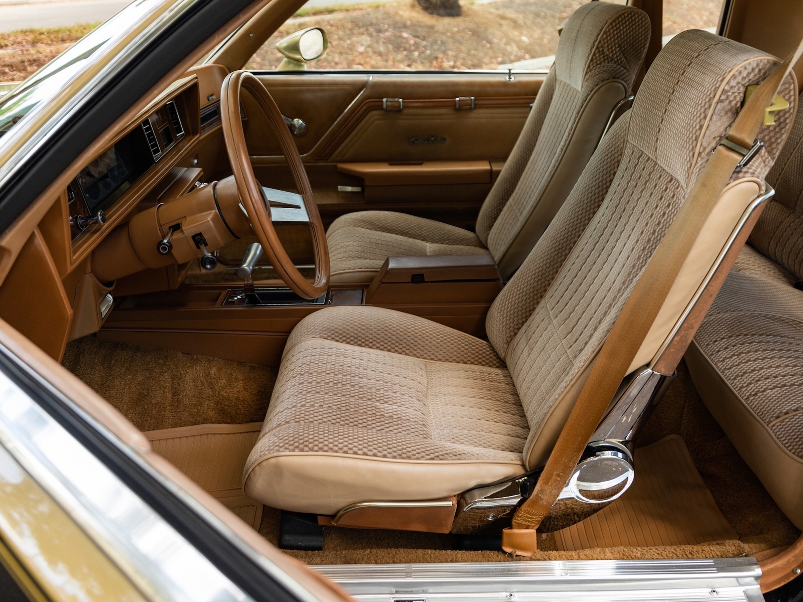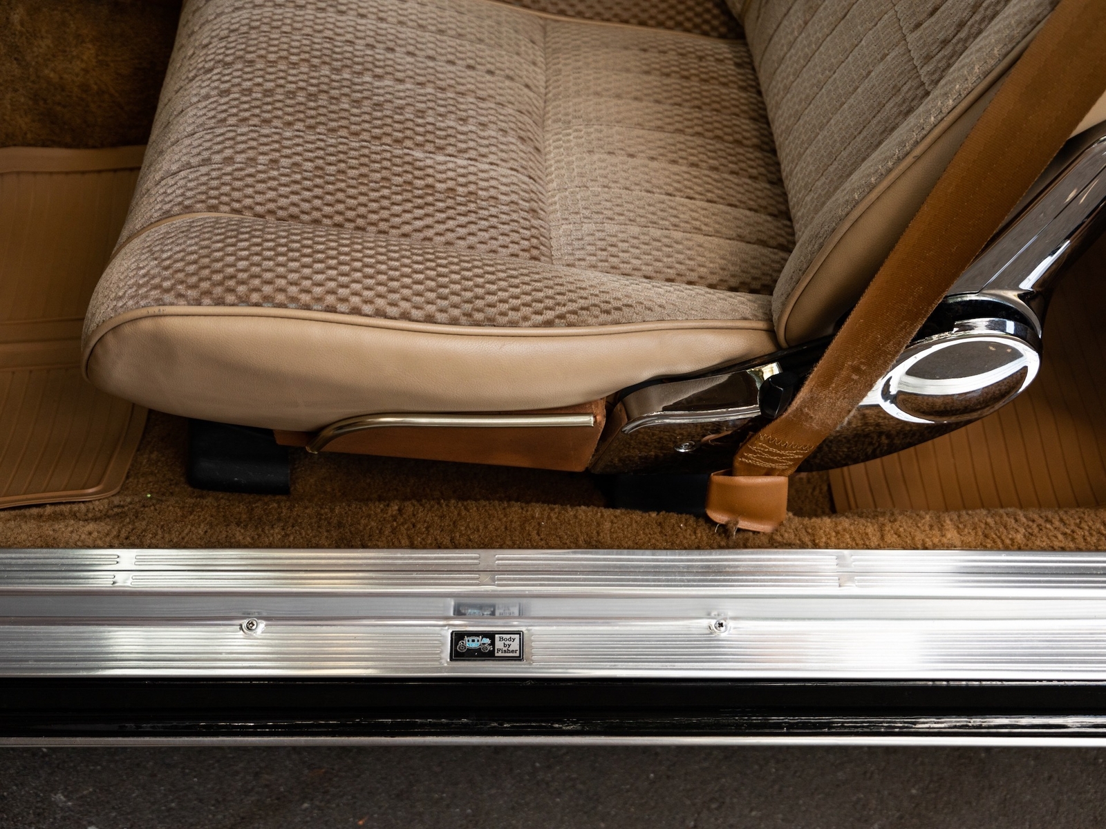 The car was repainted in its original factory two-tone color combination (with a much better finish than any of the original cars sold off the line!) with the original interior trimmed in 'Camel Tan Lochland Velour' with matching carpets, door panels, and plastics. Amenities include crank windows, air conditioning, a later Alpine cassette stereo, and a Hurst dual-gate console shifter. The air conditioning system has been converted to R134a refrigerant and the 350ci L34 V8 features a blue block, matching metric-bolt cylinder heads, and a plain black air cleaner from the factory for 1979. Power is sent to the rear wheels though a three-speed TH-350 automatic transmission and a 7.5 10-bolt rear axle with 2.56:1 gearing. The car brand new BF Goodrich steel belted radial tires mounted on the original wheels, new Bilstein shocks, and every option in the car is working as it should including the fully rebuilt AC system.