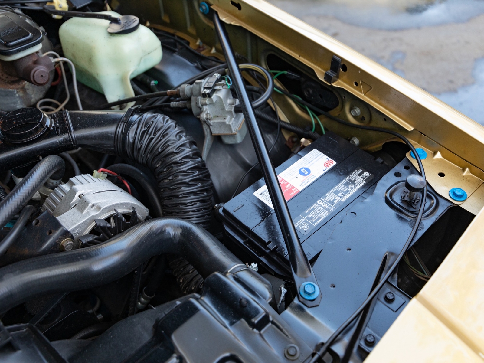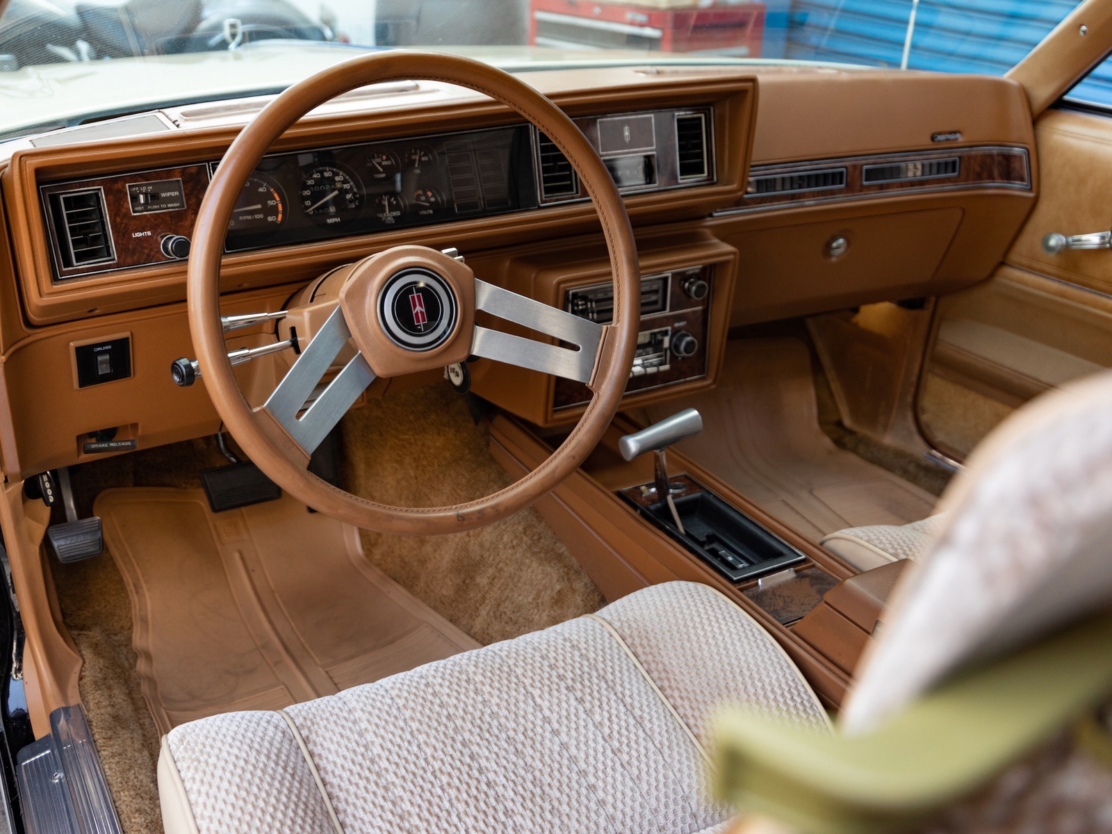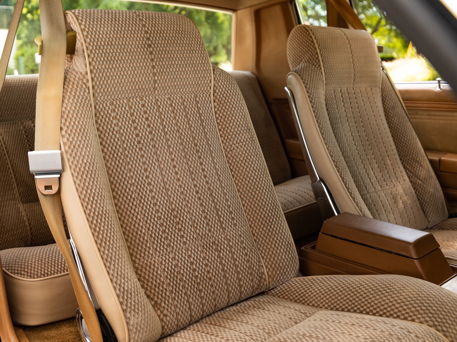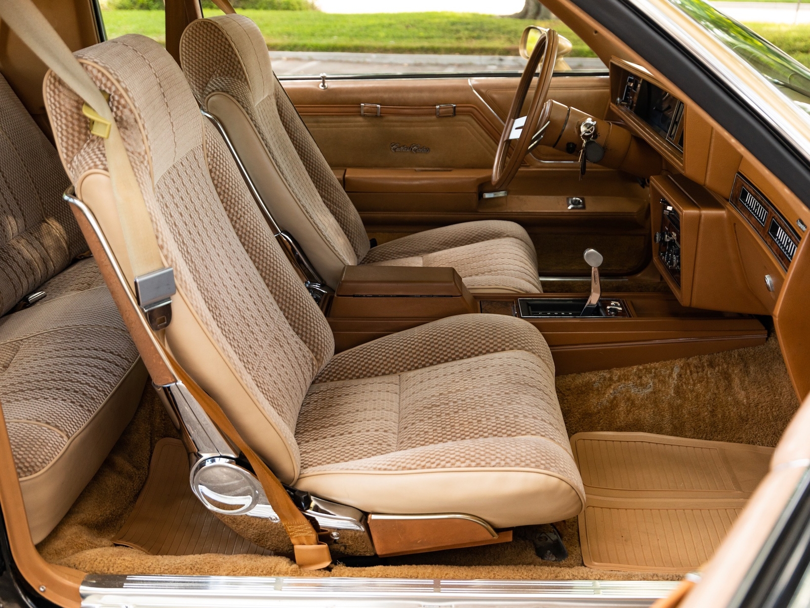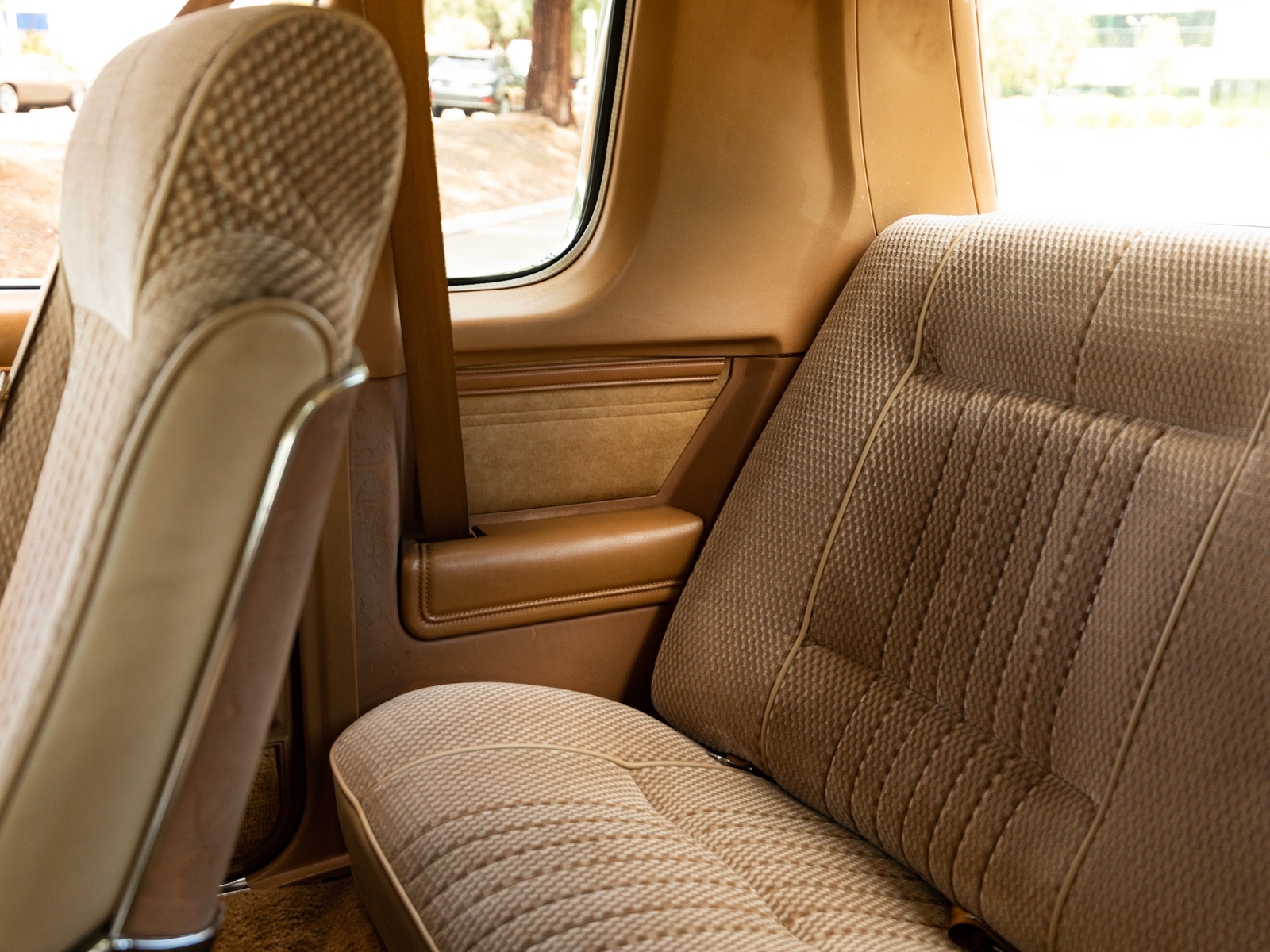 The car was repainted in its original factory two-tone color combination (with a much better finish than any of the original cars sold off the line!) with the original interior trimmed in 'Camel Tan Lochland Velour' with matching carpets, door panels, and plastics. Amenities include crank windows, air conditioning, a later Alpine cassette stereo, and a Hurst dual-gate console shifter. The air conditioning system has been converted to R134a refrigerant and the 350ci L34 V8 features a blue block, matching metric-bolt cylinder heads, and a plain black air cleaner from the factory for 1979. Power is sent to the rear wheels though a three-speed TH-350 automatic transmission and a 7.5 10-bolt rear axle with 2.56:1 gearing. The car brand new BF Goodrich steel belted radial tires mounted on the original wheels, new Bilstein shocks, and every option in the car is working as it should including the fully rebuilt AC system.