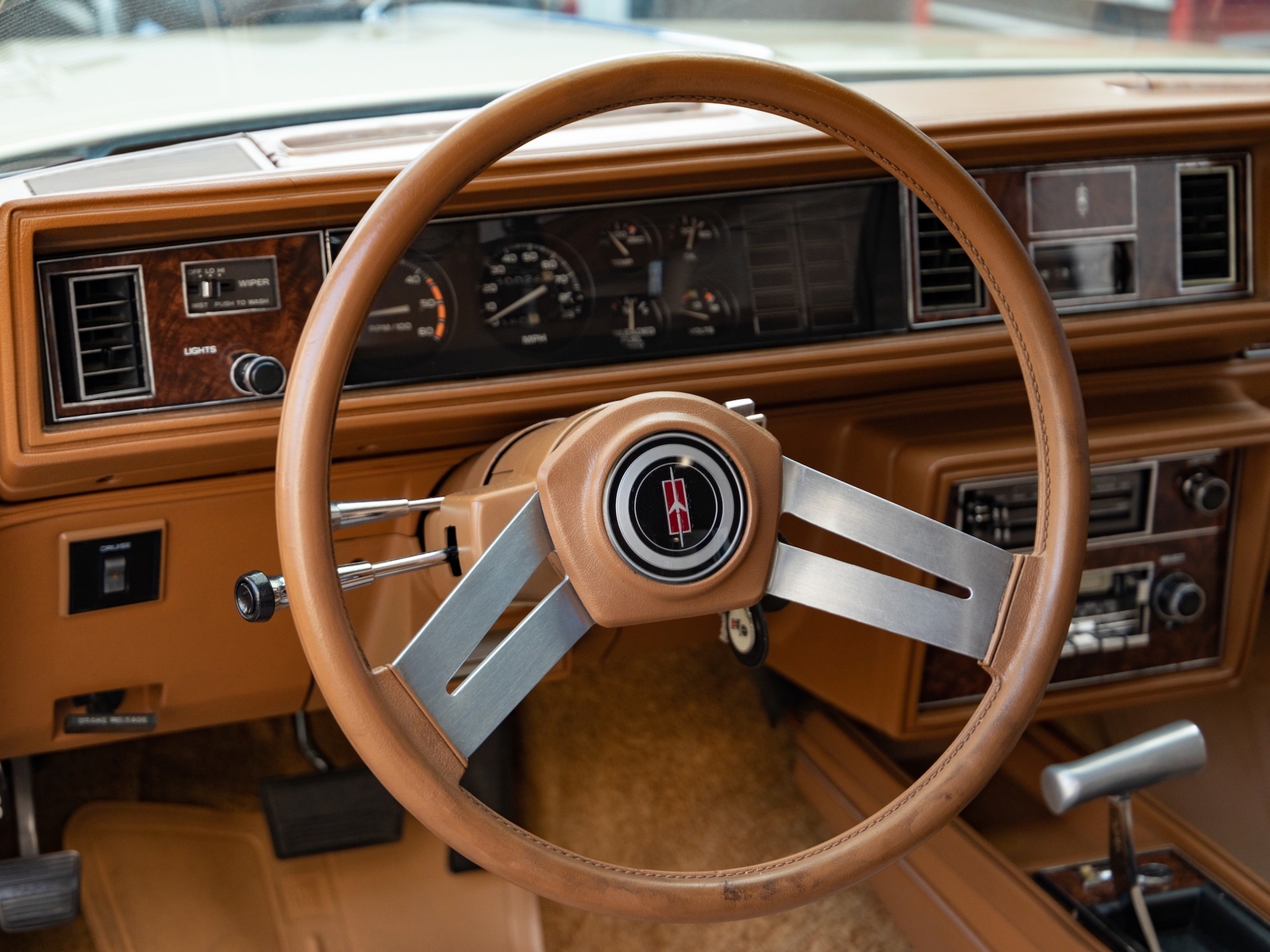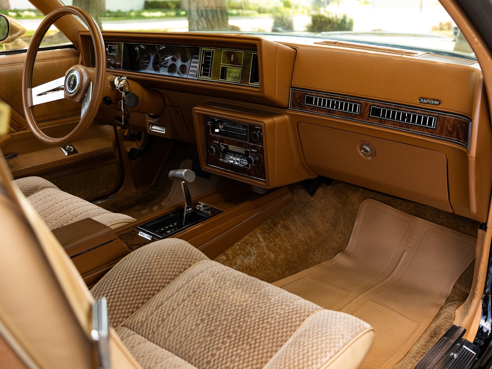 This particular example is an early production '79 H/O due to the large radiator core support bars that were a hold over from 1978 and which were installed on the early production '79 H/O until Olds started using the more skinny radiator core support rod. This Hurst/Olds is one of only 2,499 examples produced for the 1979 model year and was sold new at 'Miller Buick-Oldsmobile' in Chico, California reportedly to a Chico, CA doctor. The car still boasts its original Californian 'Blue' license plate.