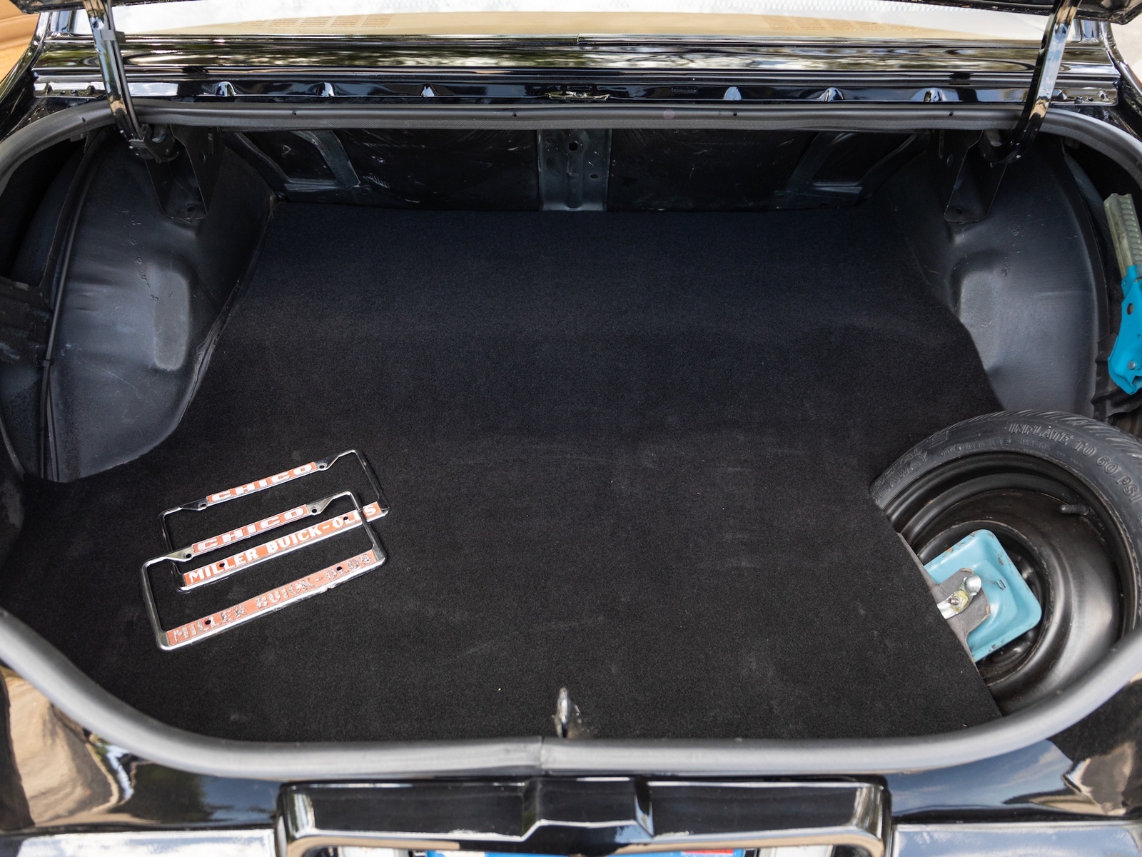 Power is from a 350ci V8 paired with a three-speed automatic transmission, and the car is finished in the striking Black and Gold color combination over a lovely Tan cloth interior. Equipment includes gold 14" wheels, a Hurst dual-gate shifter, and a later Alpine stereo as well as air conditioning and power-assisted front disc brakes.