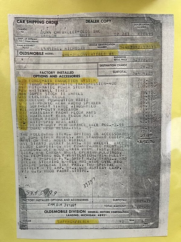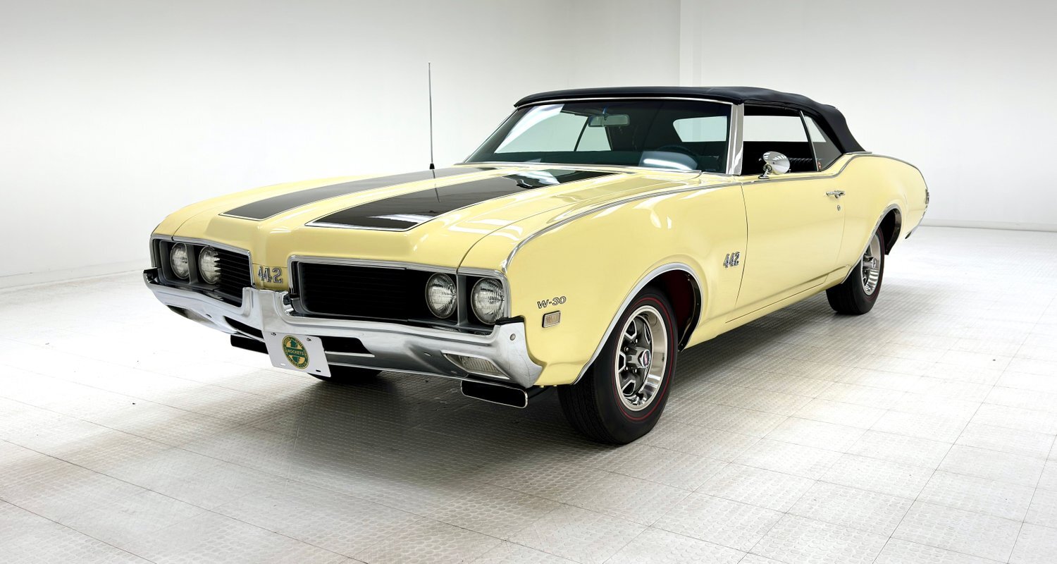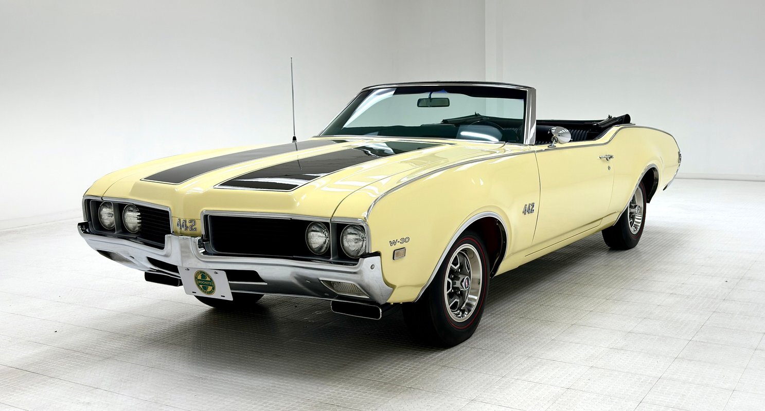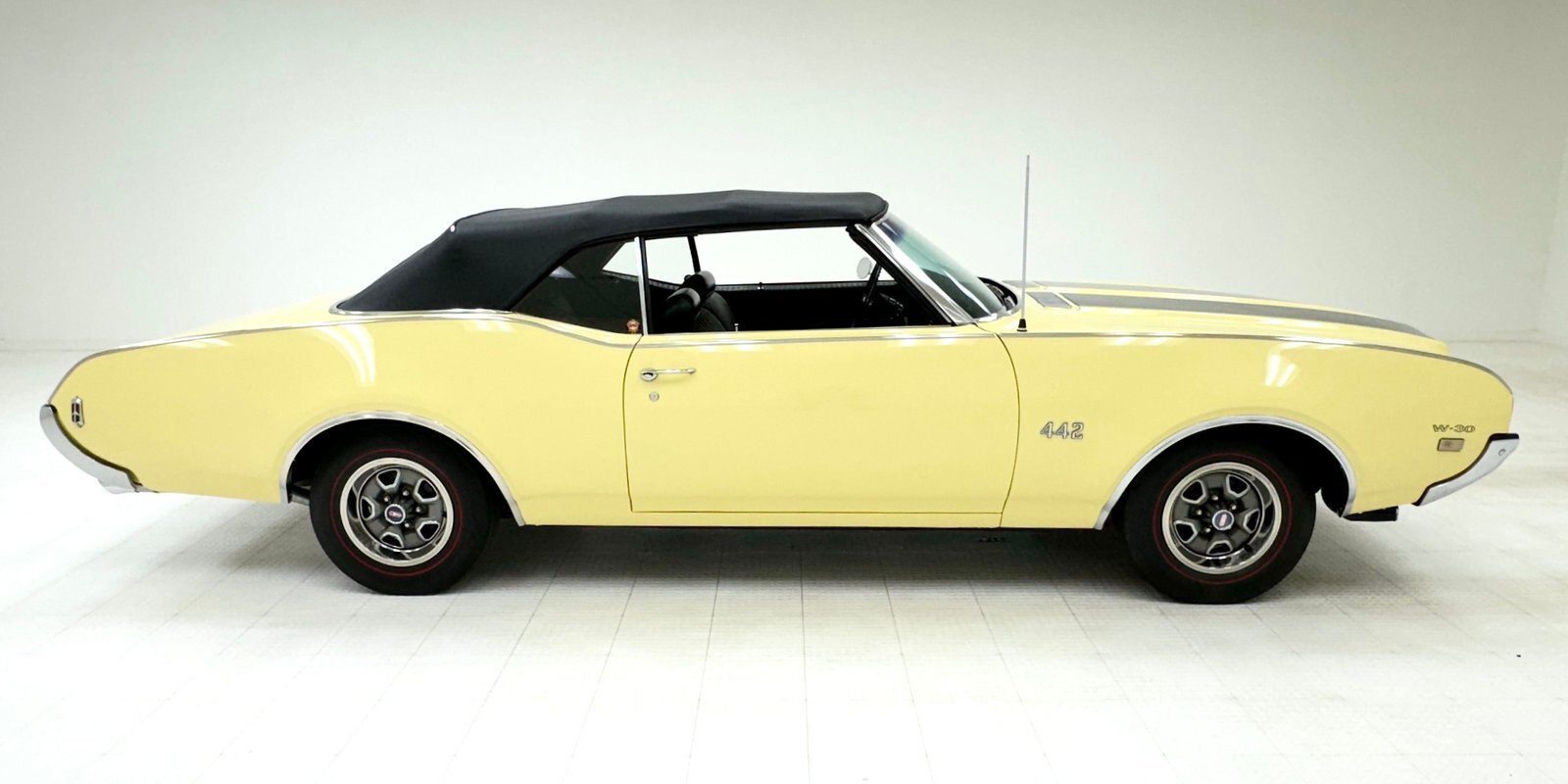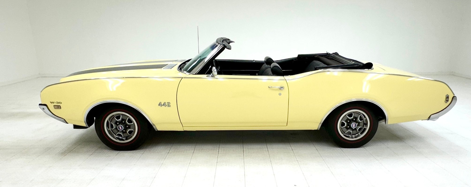 Fresh on consignment is this Oldsmobile 442 right from the doctor's lab in 1969 as it is a 442 equipped with the high performance W-30 package on the car's shipping order. This car is 1 of 121 convertible W-30 cars built, but that's not all. It is 1 of 30 built with an automatic transmission and is 1 of 6 of those automatic cars known to exist and the only one with a papertrail to back up its pedigree. To sweeten the pot this car is presumed to be the only car with a bench seat and column shift, how's that for a dose of rarity in a monster? This Oldsmobile is equipped with all the right performance options along with its Protect-O-Plate, Certificate Of Authenticity, broadcast card and a forthcoming Rocket Report. Our example has been expertly restored, has a recently rebuilt service replacement engine, the numbers matching transmission and the correct TO coded rear axle. So let's delve into this underrated gentleman's muscle car that won a top award at the Year One Experience in Atlanta, GA in 2007.